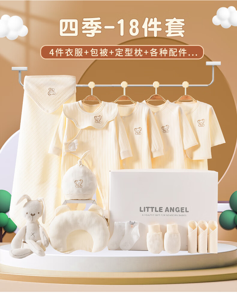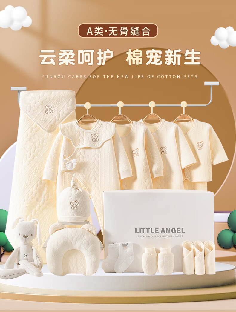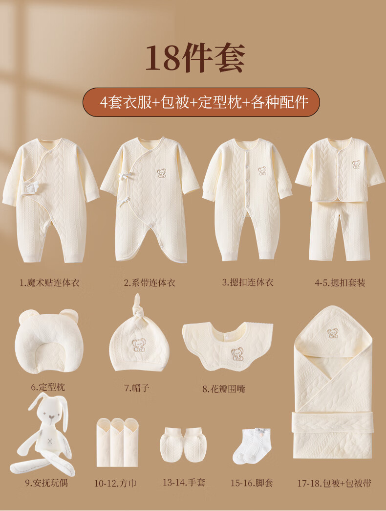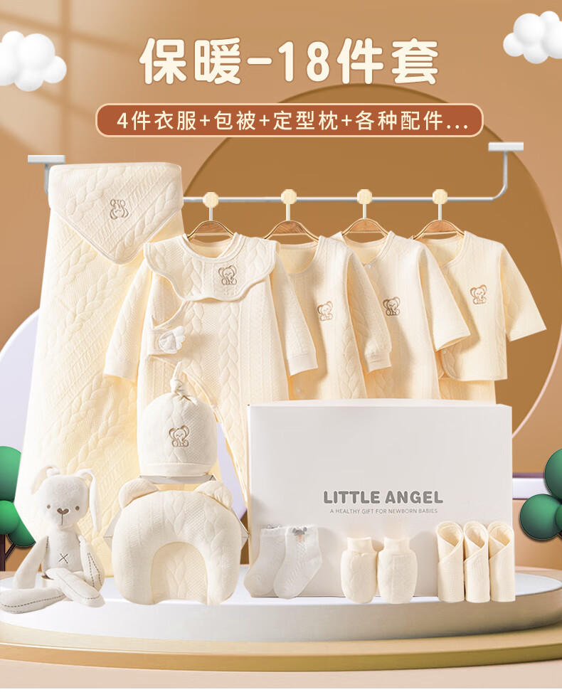 JOYNCLEON Baby Clothes Newborn Gift Box Autumn and Winter Suit Pure Cotton Newborn Full Moon Baby Meet Gift Collection Embroidered Baby Elephant 14 Pieces Warm Gift Box Newborn (0-6 Months)