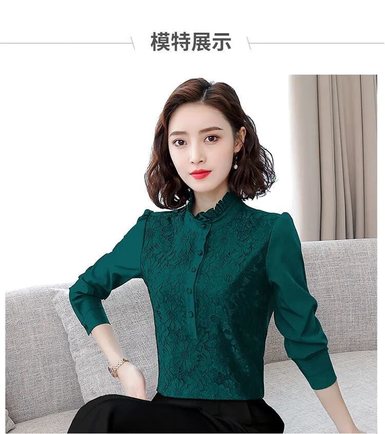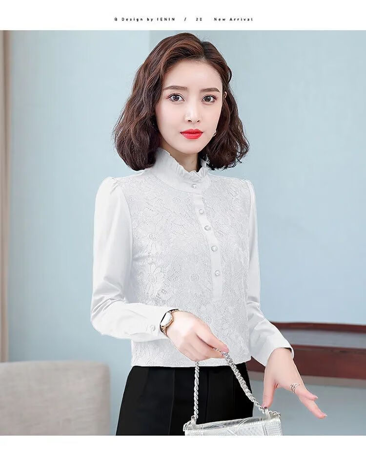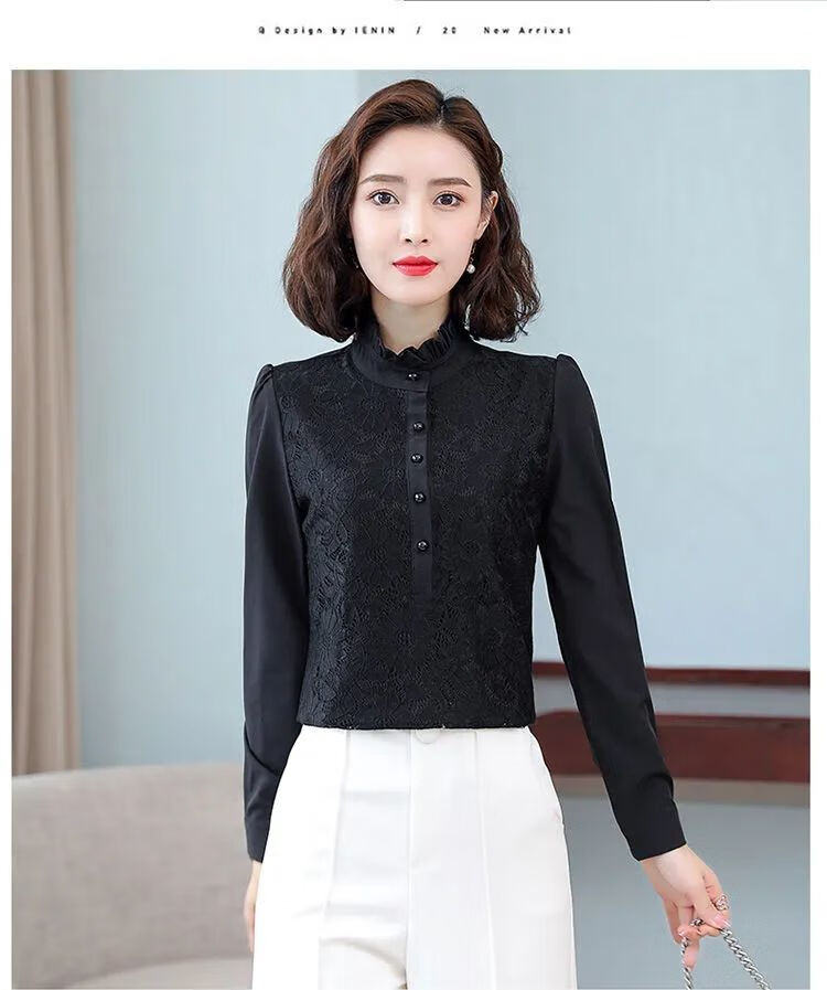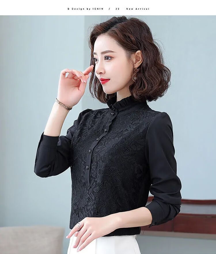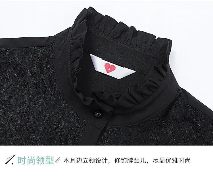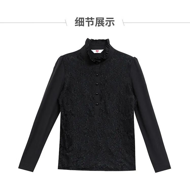 Woodpecker (TUCANO) Lace Chiffon Shirt Women's Long Sleeve 2025 Autumn and Winter New Style Bottoming Shirt Temperament Small Shirt Top with Inner Shirt Black Velvet Thickening L 105-115Jin Jin is equal to 0.5 kg