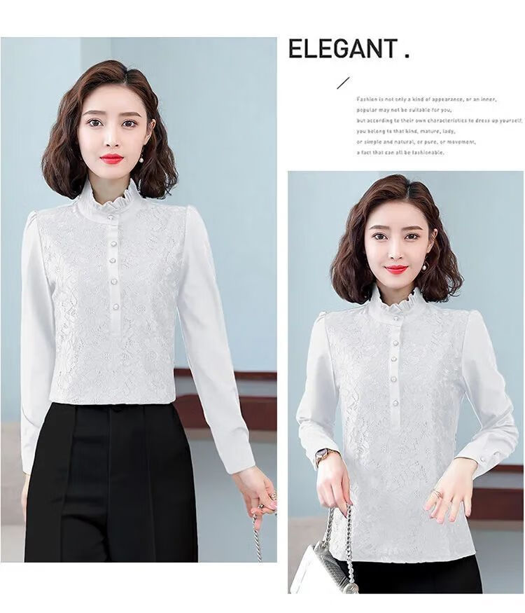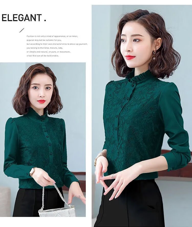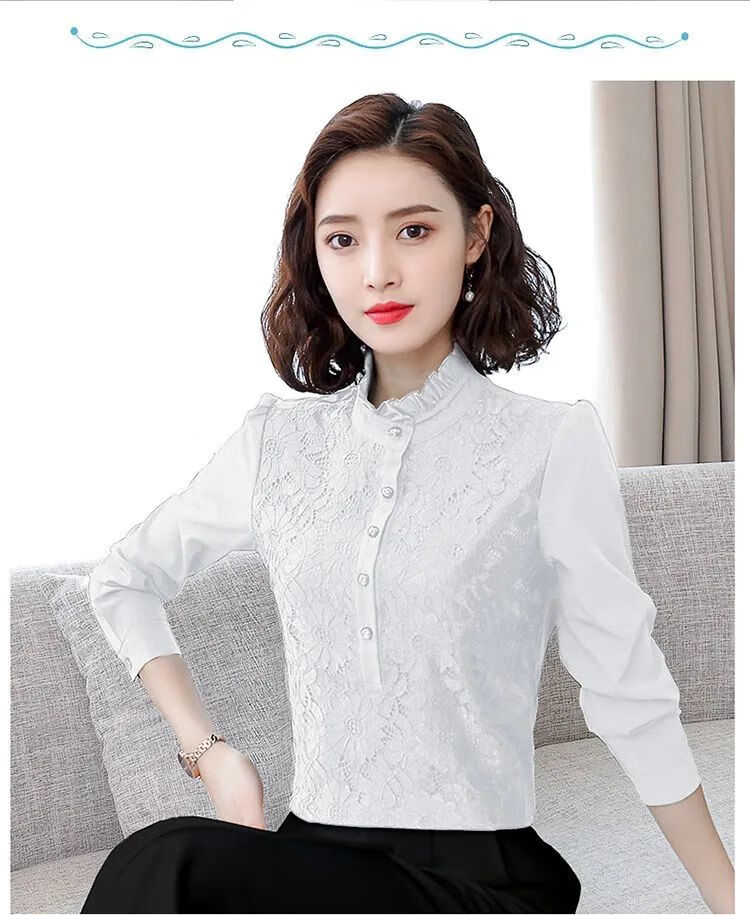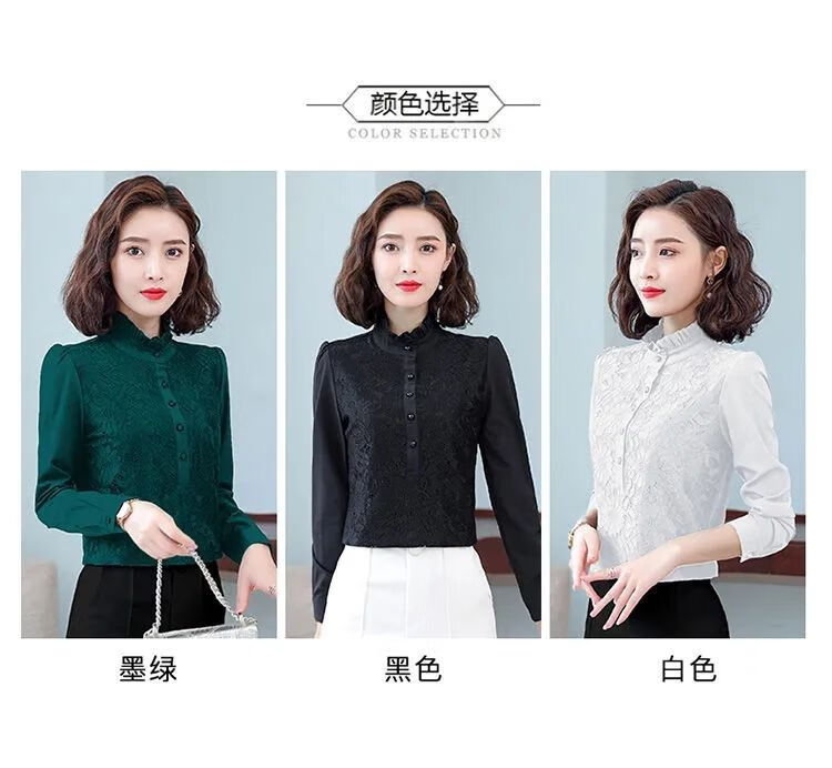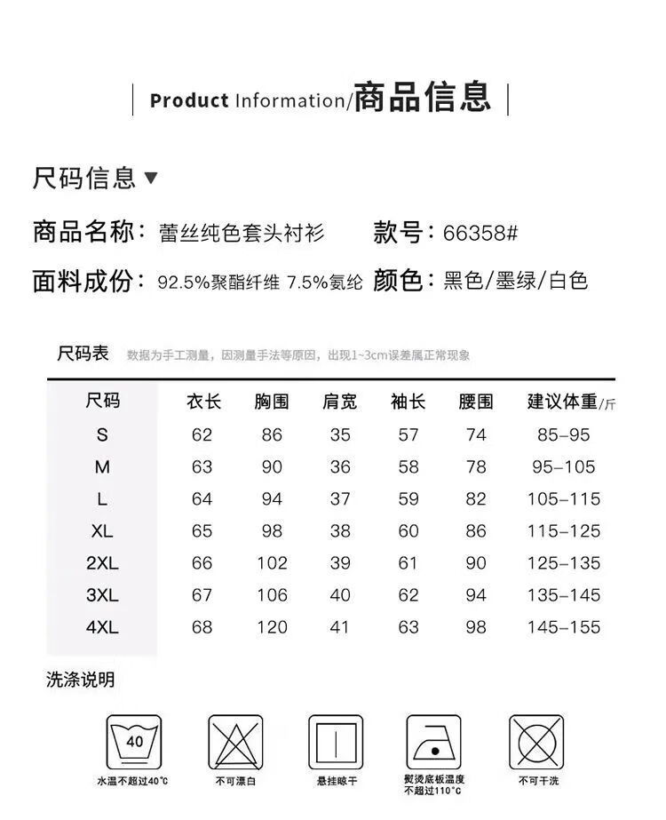 Woodpecker (TUCANO) Lace Chiffon Shirt Women's Long Sleeve 2025 Autumn and Winter New Style Bottoming Shirt Temperament Small Shirt Top with Inner Shirt Black Velvet Thickening L 105-115Jin Jin is equal to 0.5 kg
