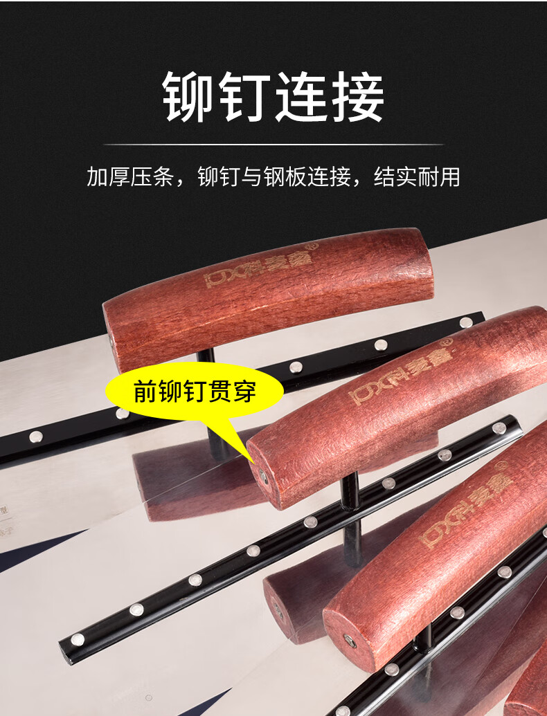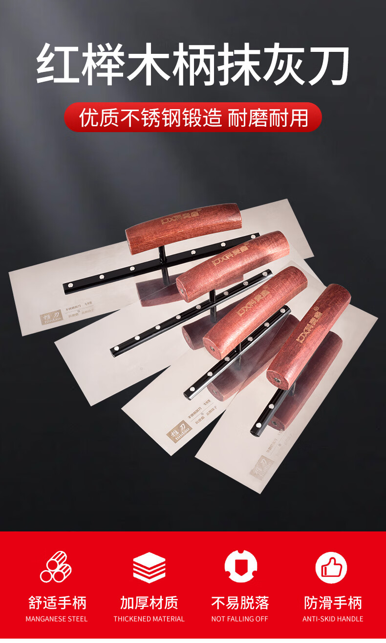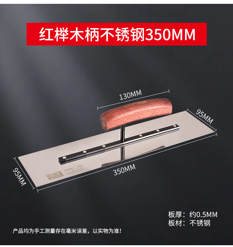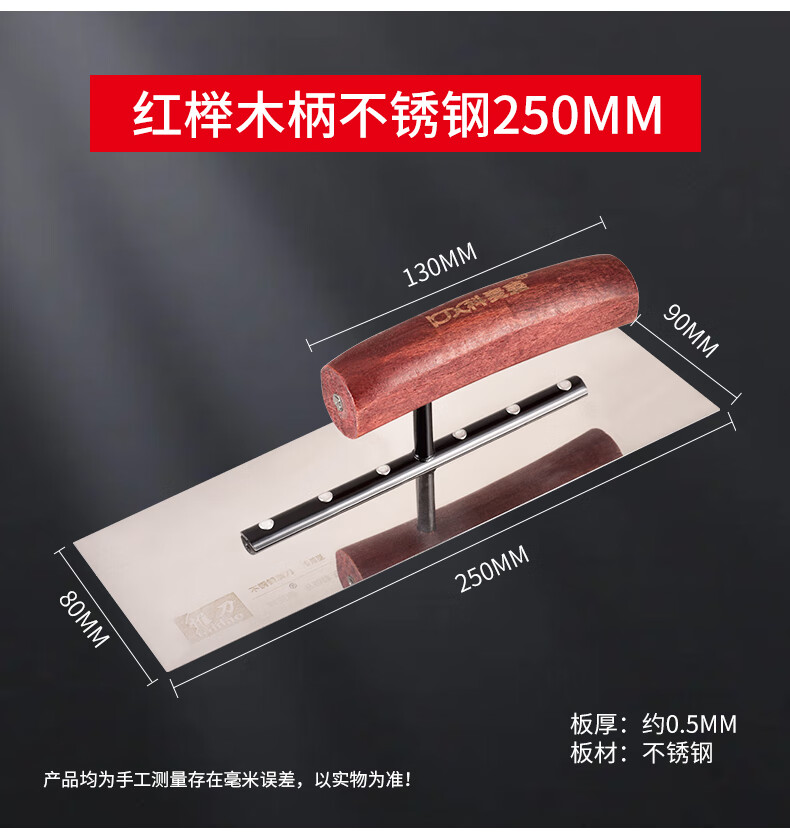 Kemaixin putty trowel wooden handle stainless steel plastering knife push knife iron plate oiler's tool thickening batch wall trowel trowel 80*90*250mm stainless steel beech wood handle
