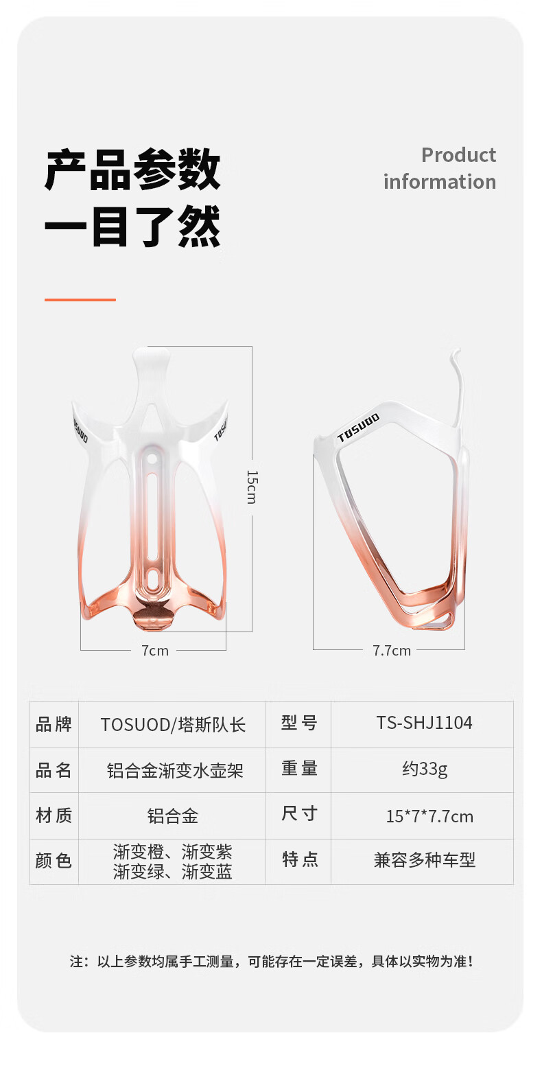 Captain Tas Water Bottle Rack Bicycle Water Cup Rack Mountain Road Bike Universal Alloy Gradient Water Cup Bracket Equipment White Purple Gradient