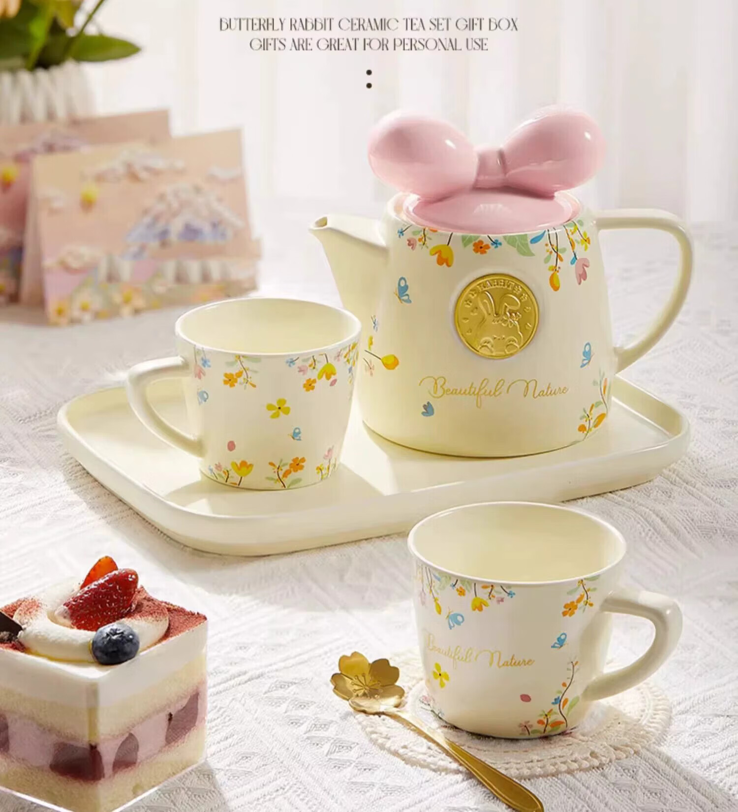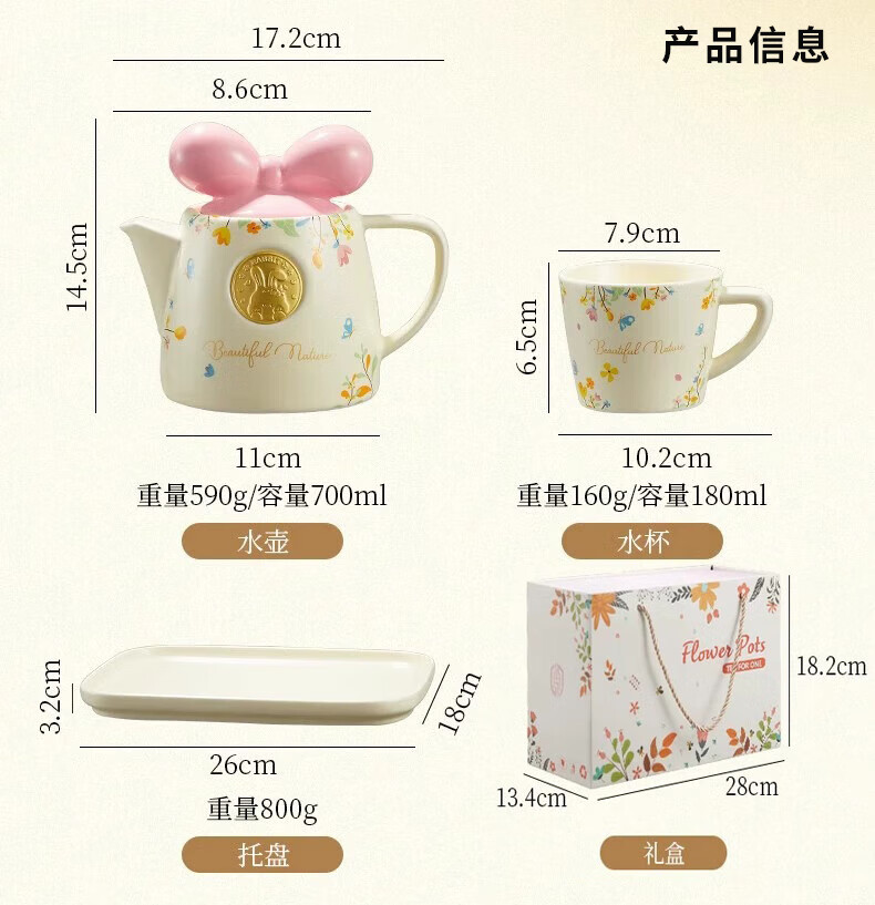Meidu Christmas birthday gift tea set Valentine's Day gift for newlyweds teapot best friend souvenir wedding new wedding bow tea set pink gift box