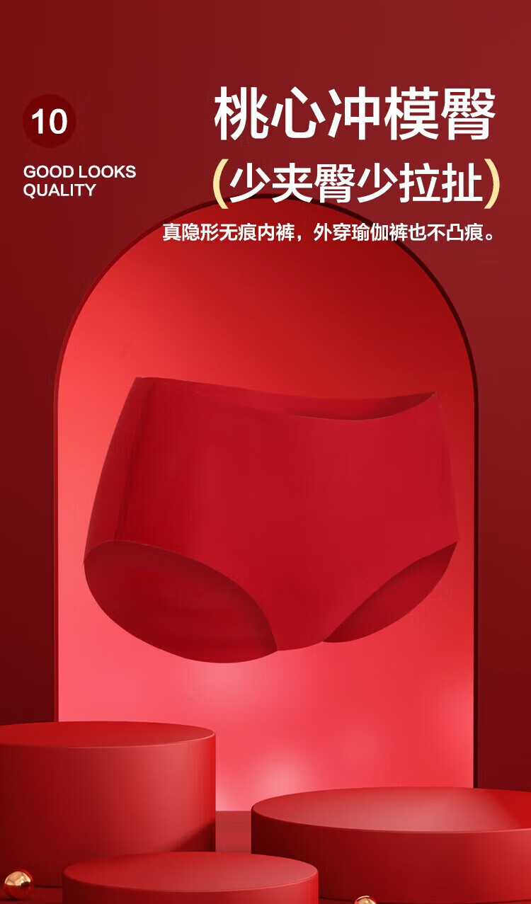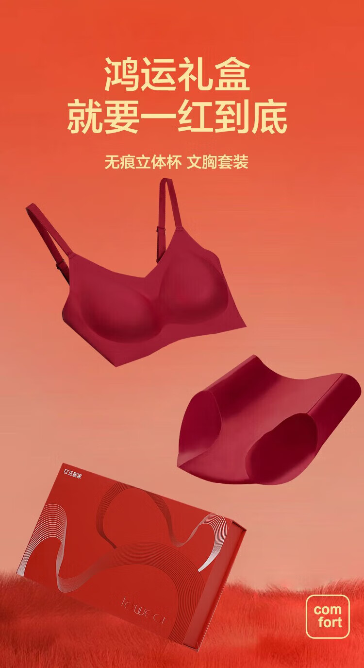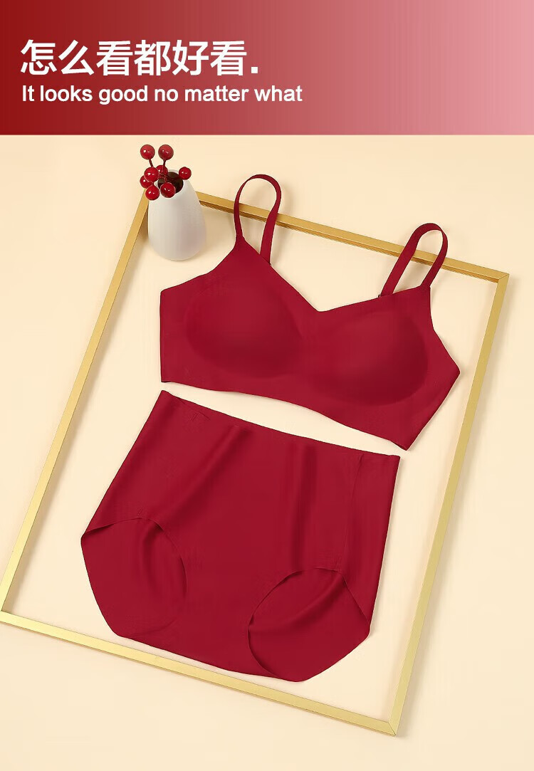 Hongdou Home Big Red Women's Seamless Underwear No Wires Wedding Gift Bridal Underwear Bra Set Red One Size 75B