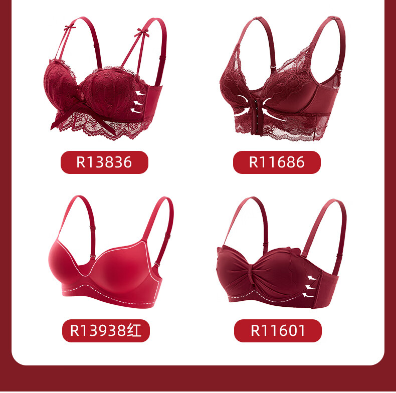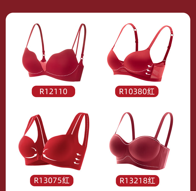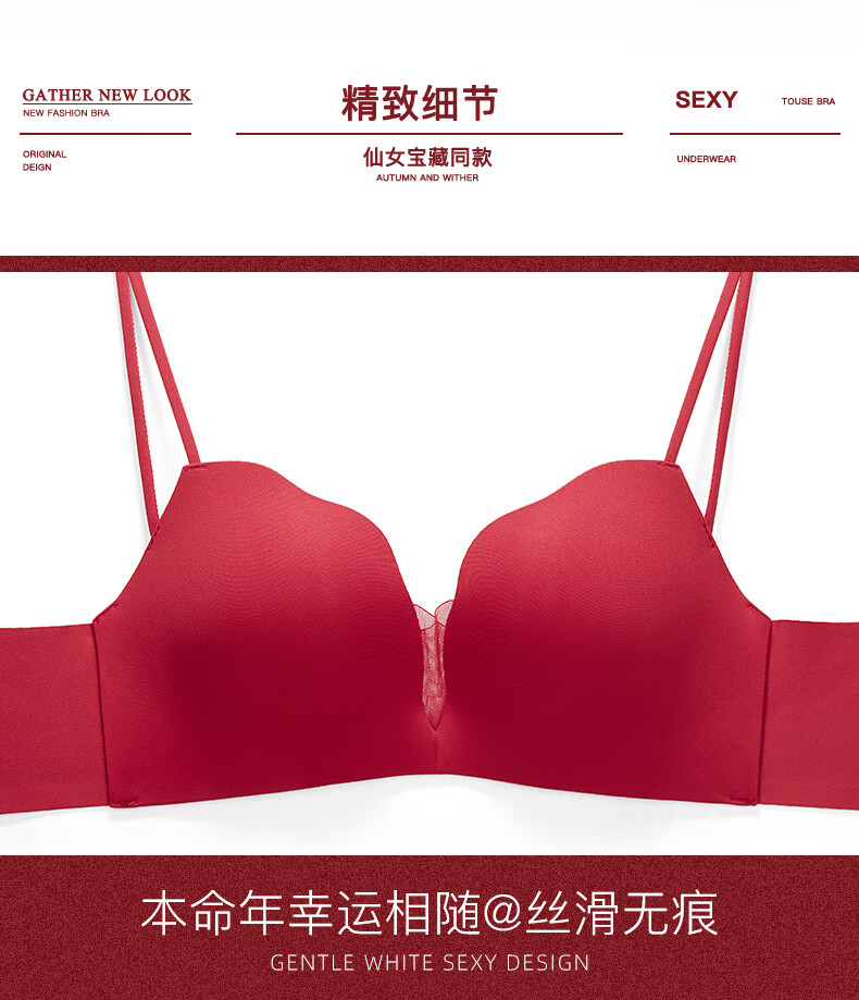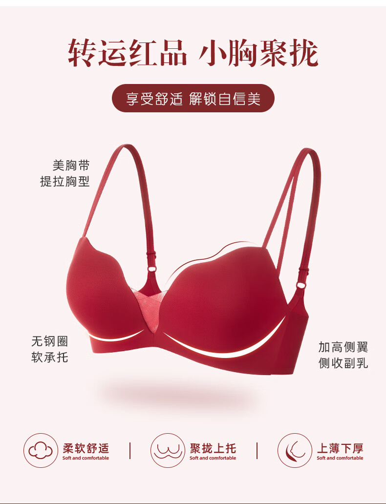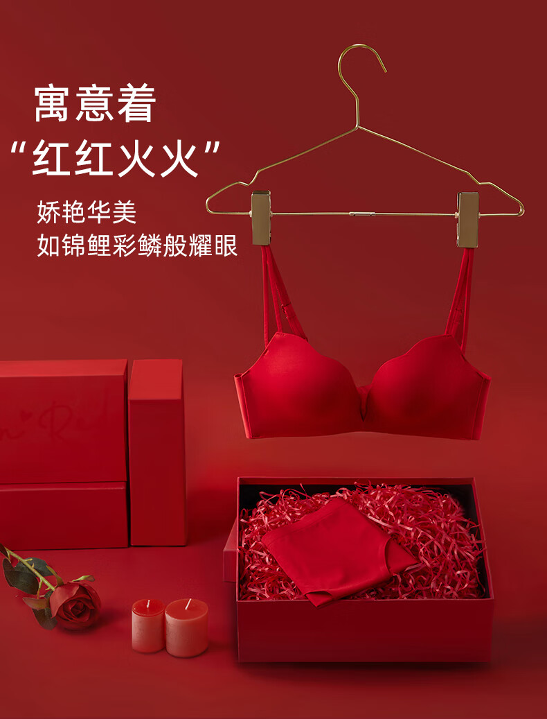 Adore Autumn and Summer Red Underwear Women's Small Breasts Push Up to Show Bigger Thickening Sexy Year of the Dragon Bra Zodiac Year Underwear Set Red-Set-Enhance Curves 32/70A (Push-up Style in the Popular Year)