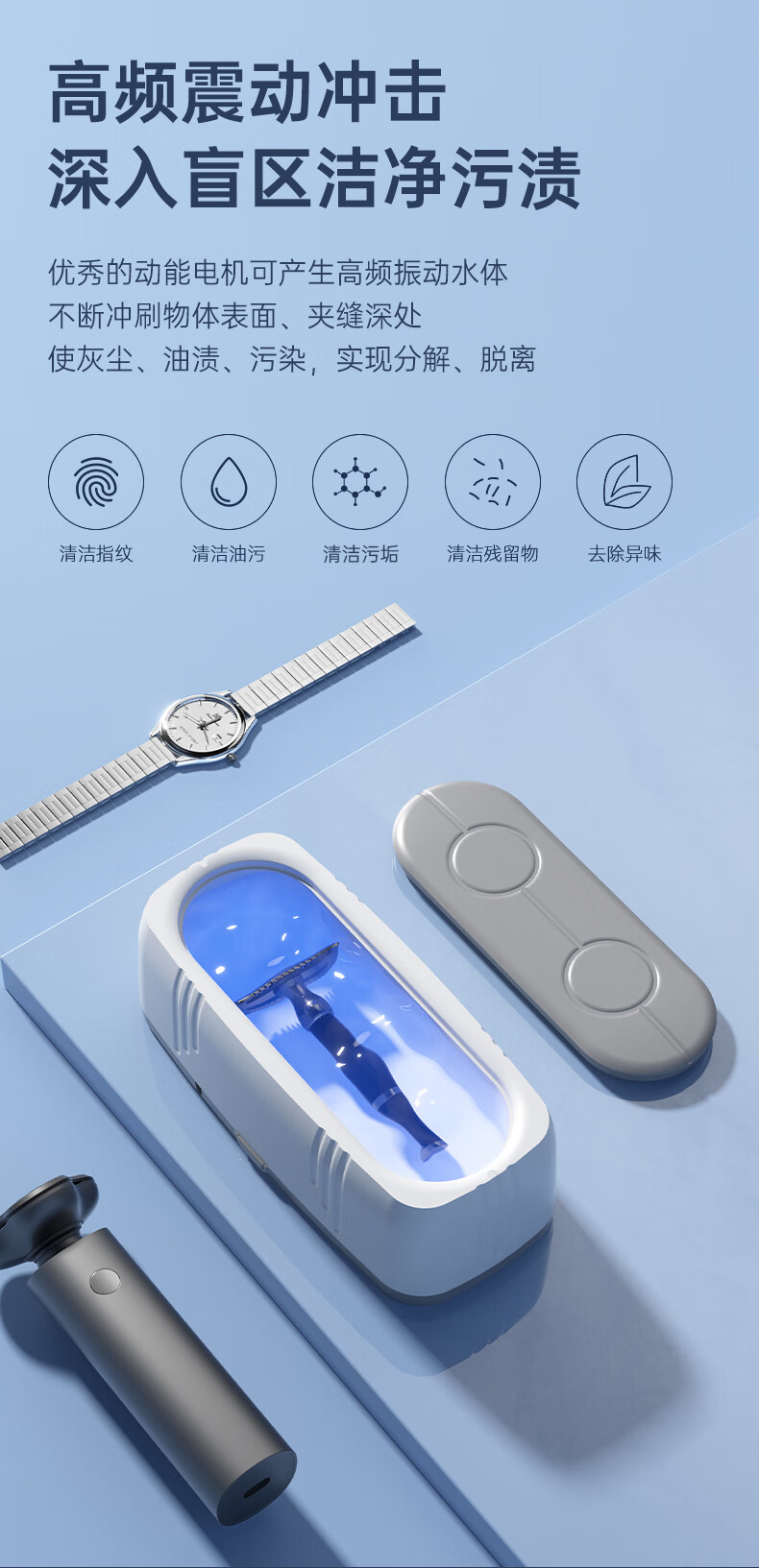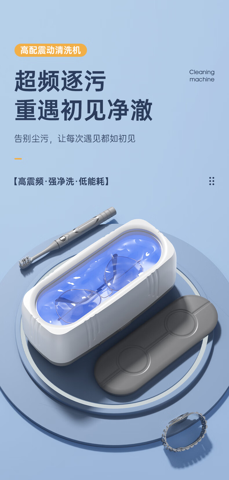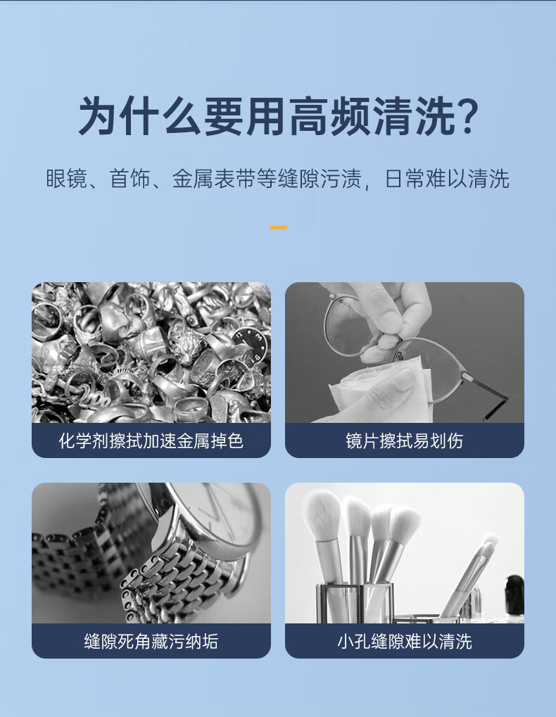 WOOSENHWO ultra high frequency cleaning machine household glasses cleaner jewelry braces watch contact lens case automatic cleaner rechargeable blue light sterilization preferred