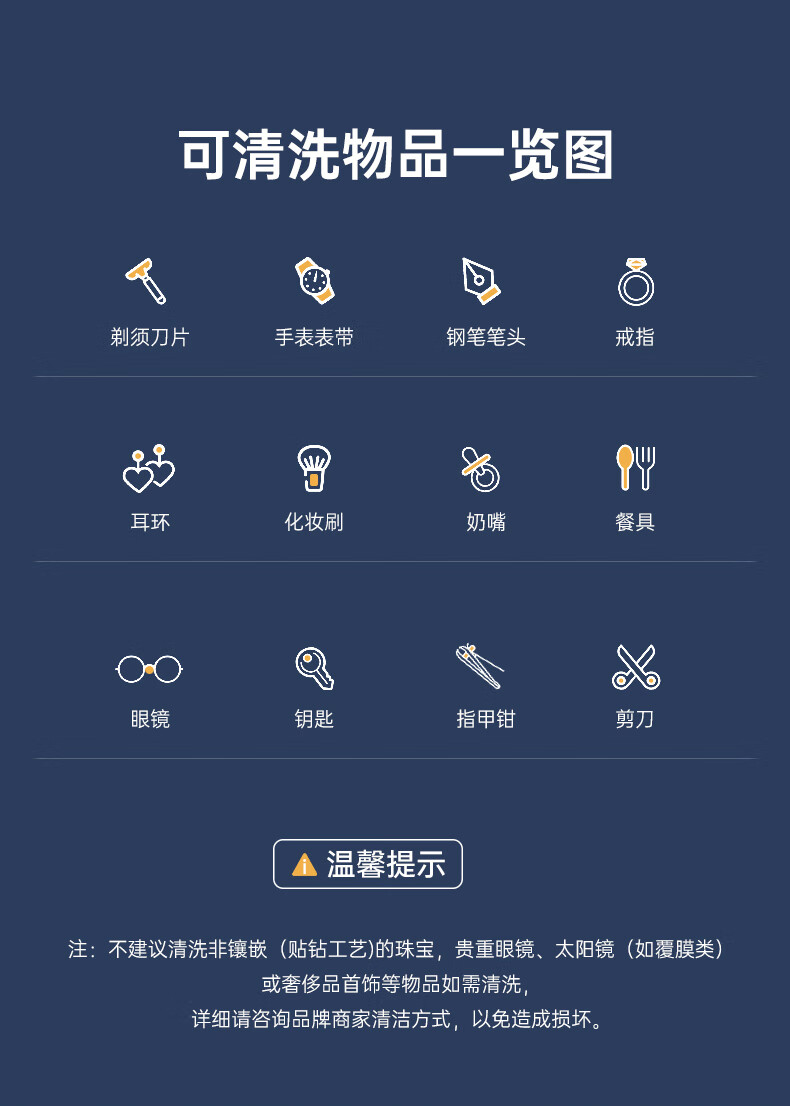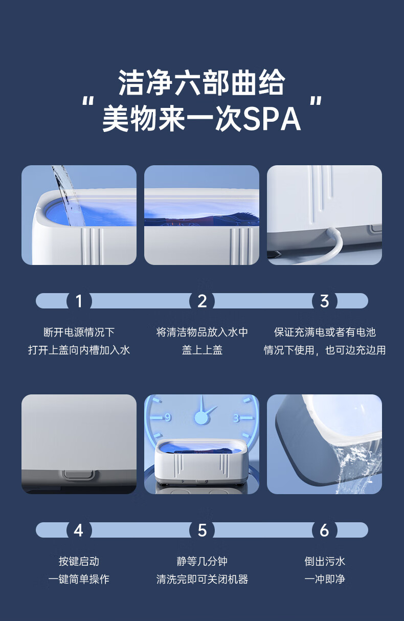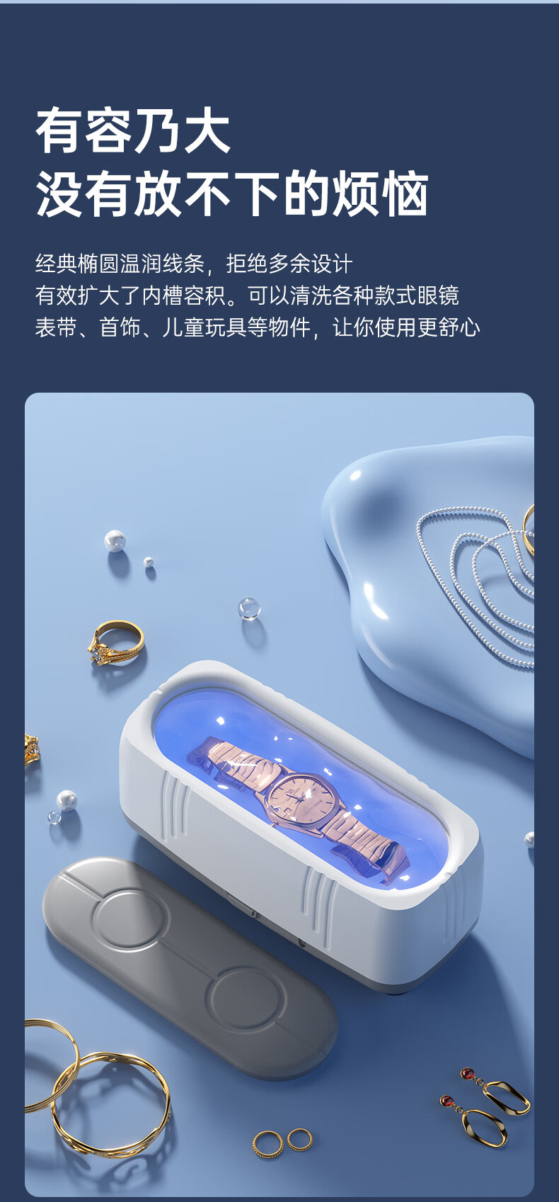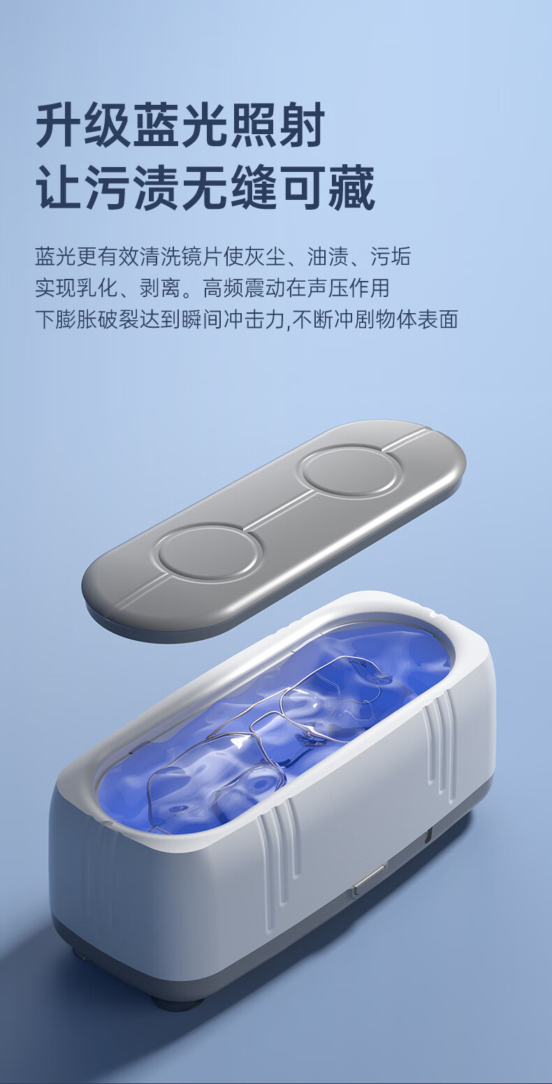 WOOSENHWO ultra high frequency cleaning machine household glasses cleaner jewelry braces watch contact lens case automatic cleaner rechargeable blue light sterilization preferred