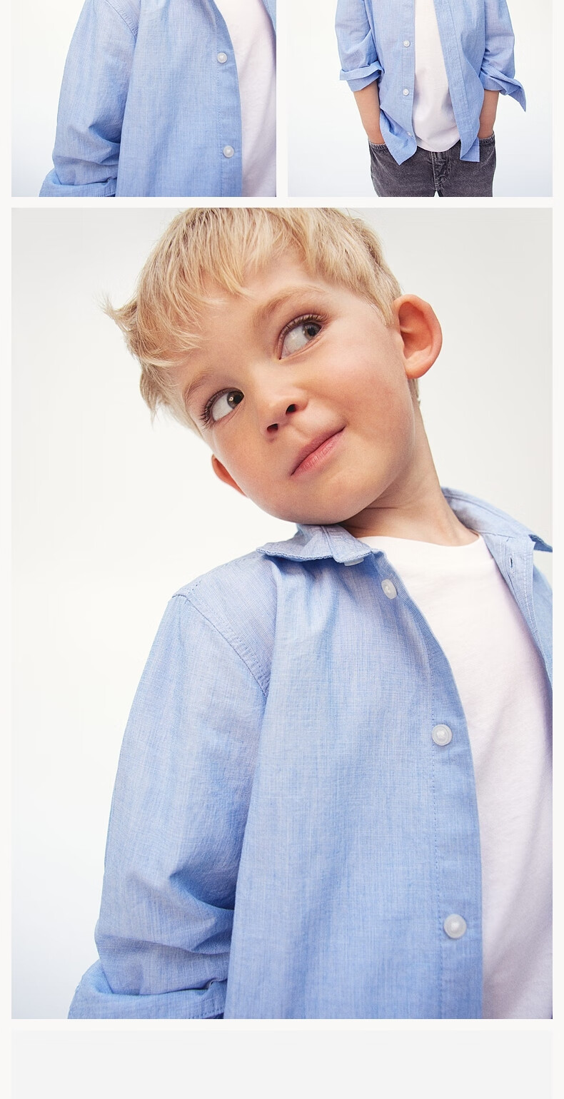 H&M children's boys' shirt autumn long-sleeved cotton shirt top 1209140 light blue 140 140/68