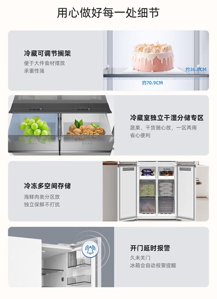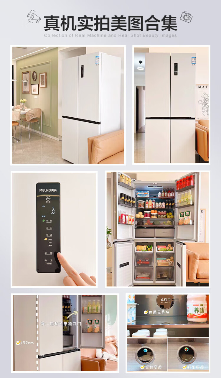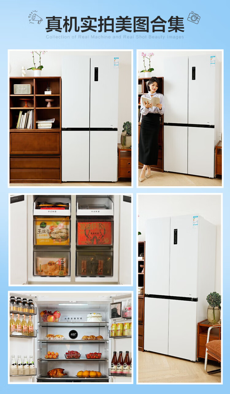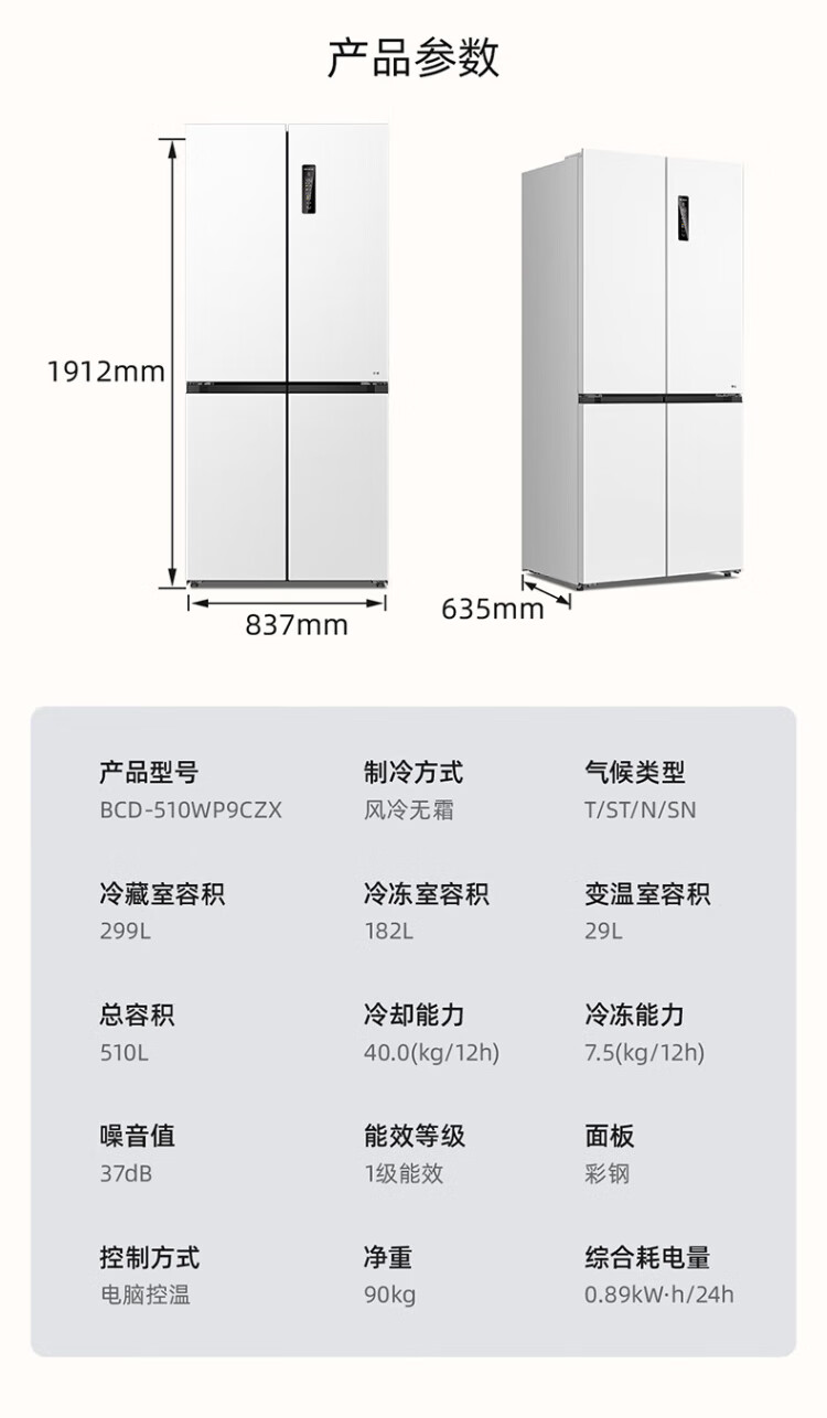 MeiLing refrigerator ultra-thin zero embedded cross-shaped four-open double-door refrigerator household odor-free first-class energy efficiency dual-frequency large-capacity intelligent embedded air-cooled frost-free refrigerator BCD-510WP9CZX dual system mysterious gray