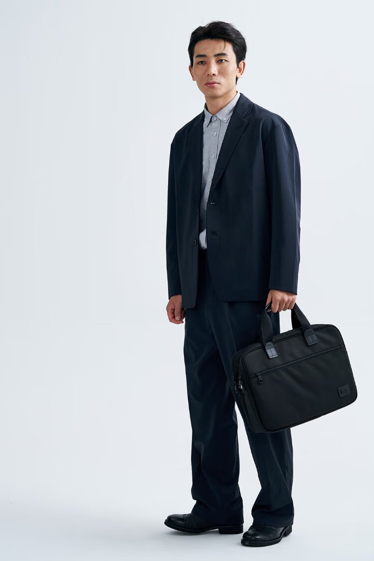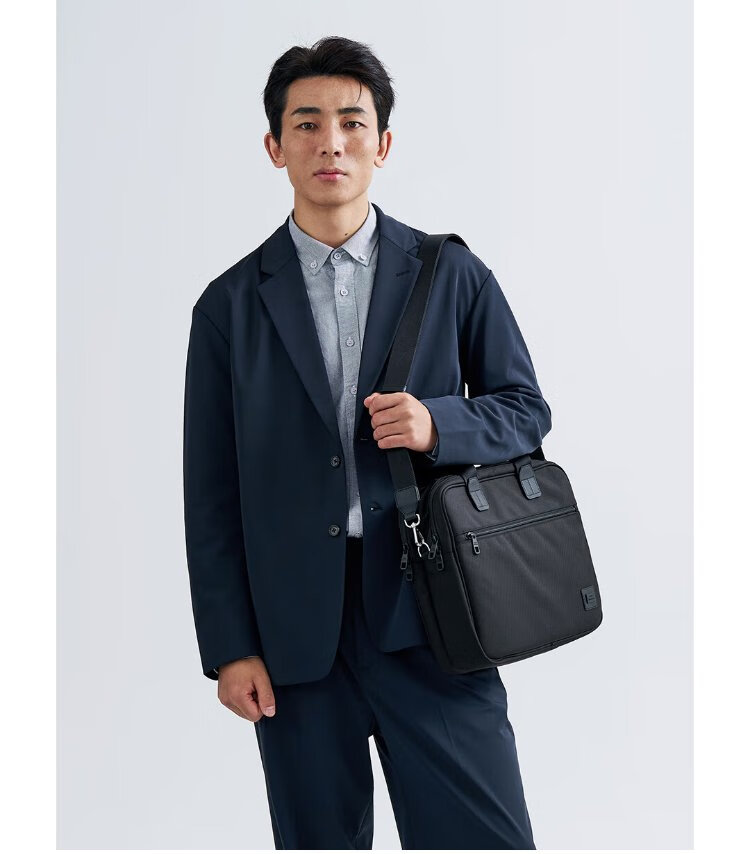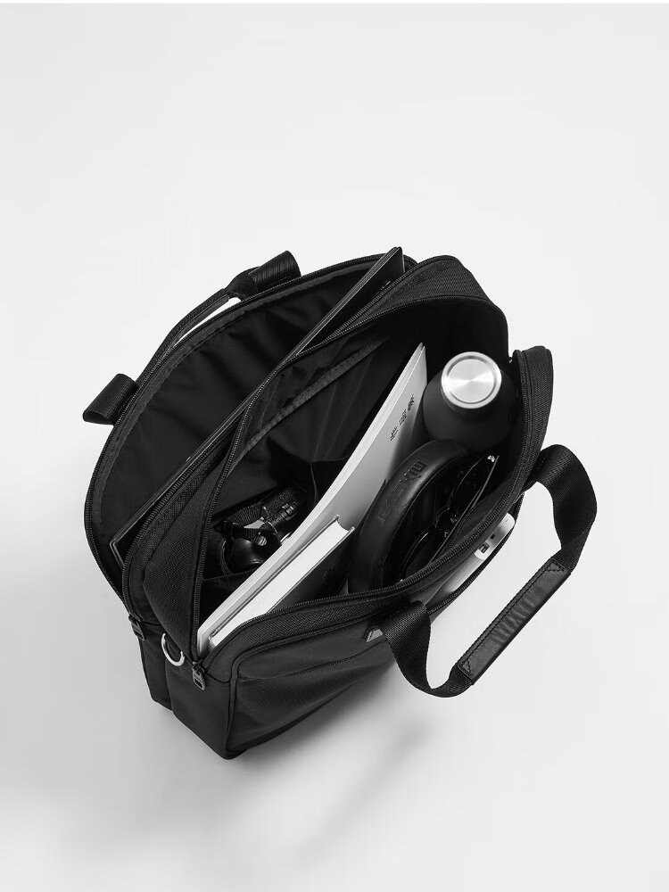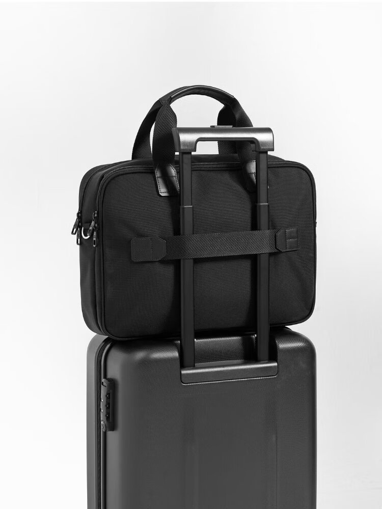 Liangshan briefcase men's double-layer handbag large capacity business commuting travel ballistic nylon computer bag black without shoulder strap 16 inches