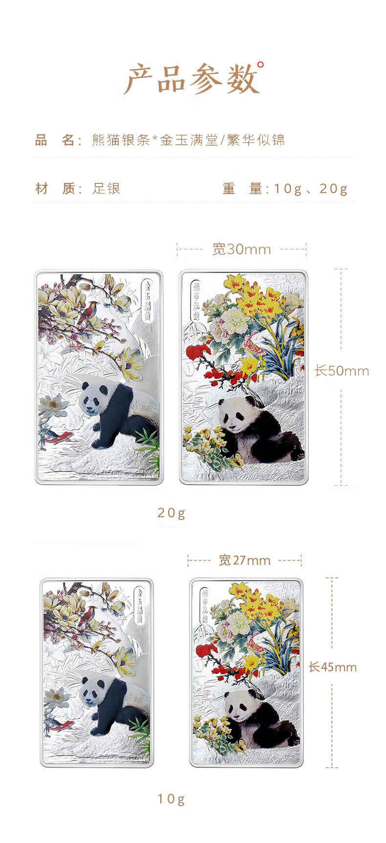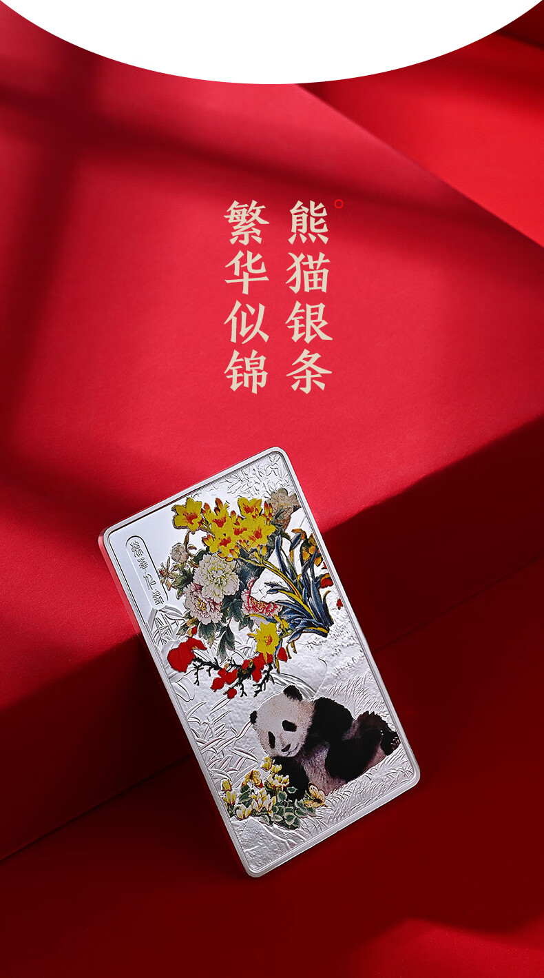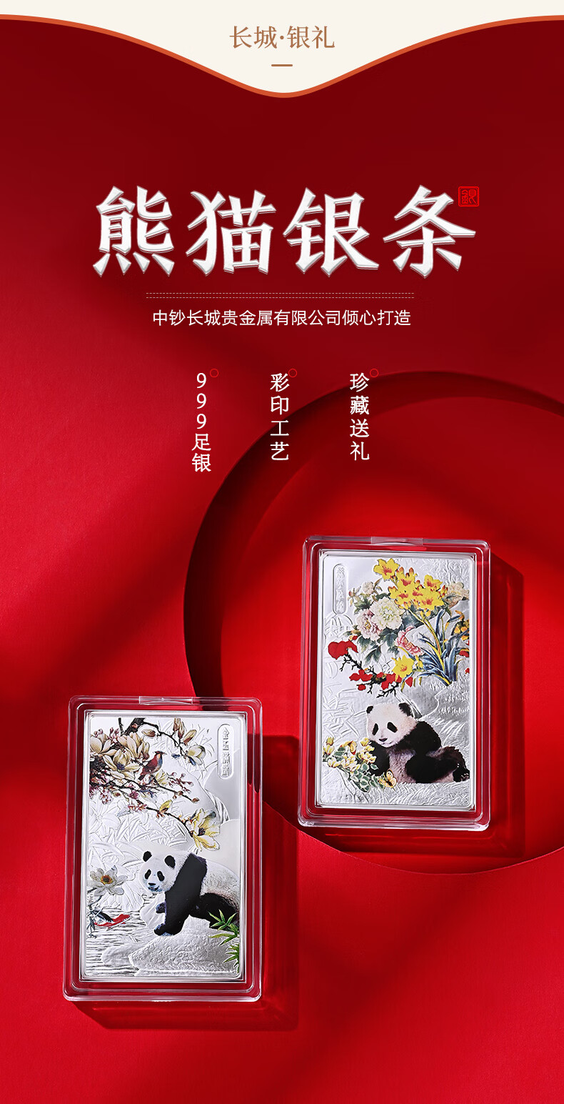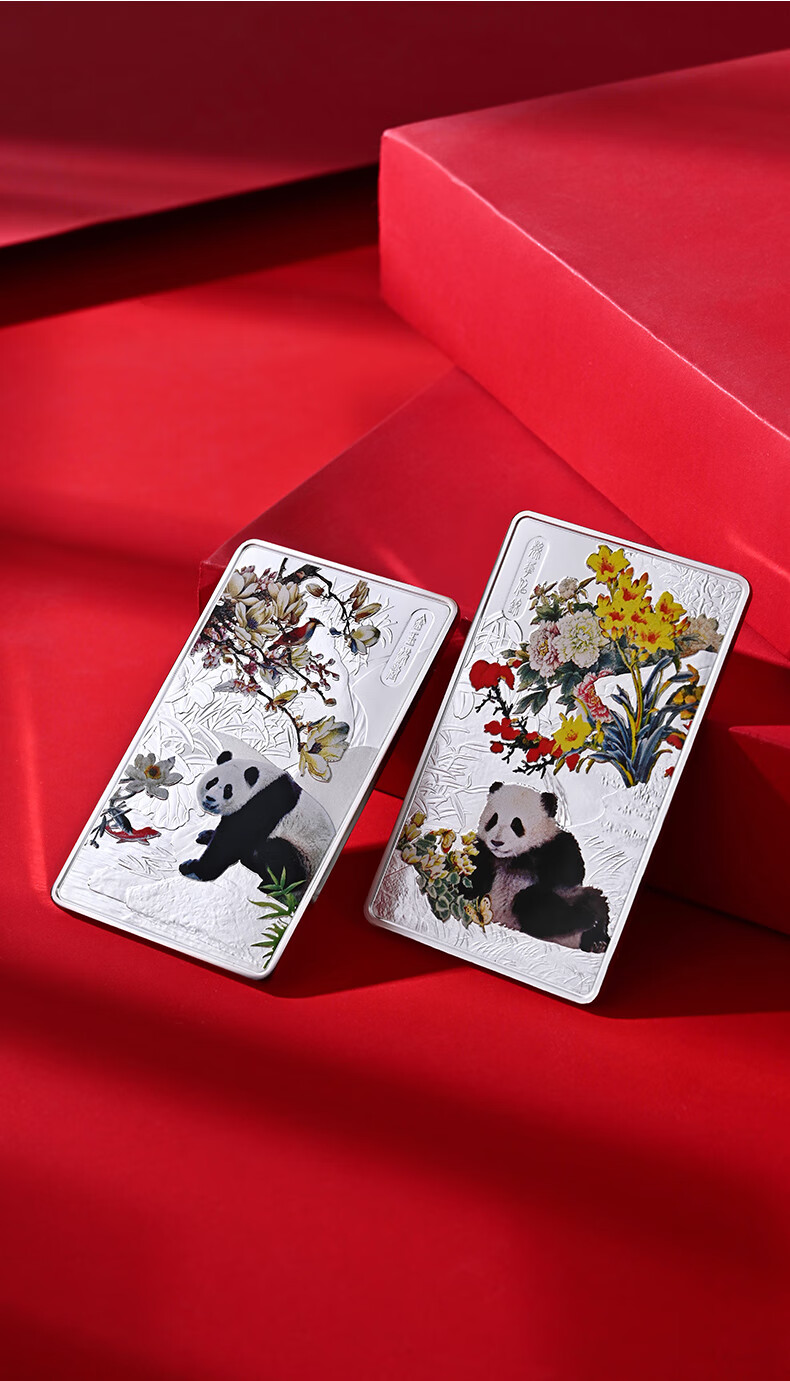 Great Wall Panda Colored Silver Bar 999 Pure Silver Silver Nugget Investment Collection Gifts for Father's Day Teachers Elders New Year Gifts Blossoms 20g