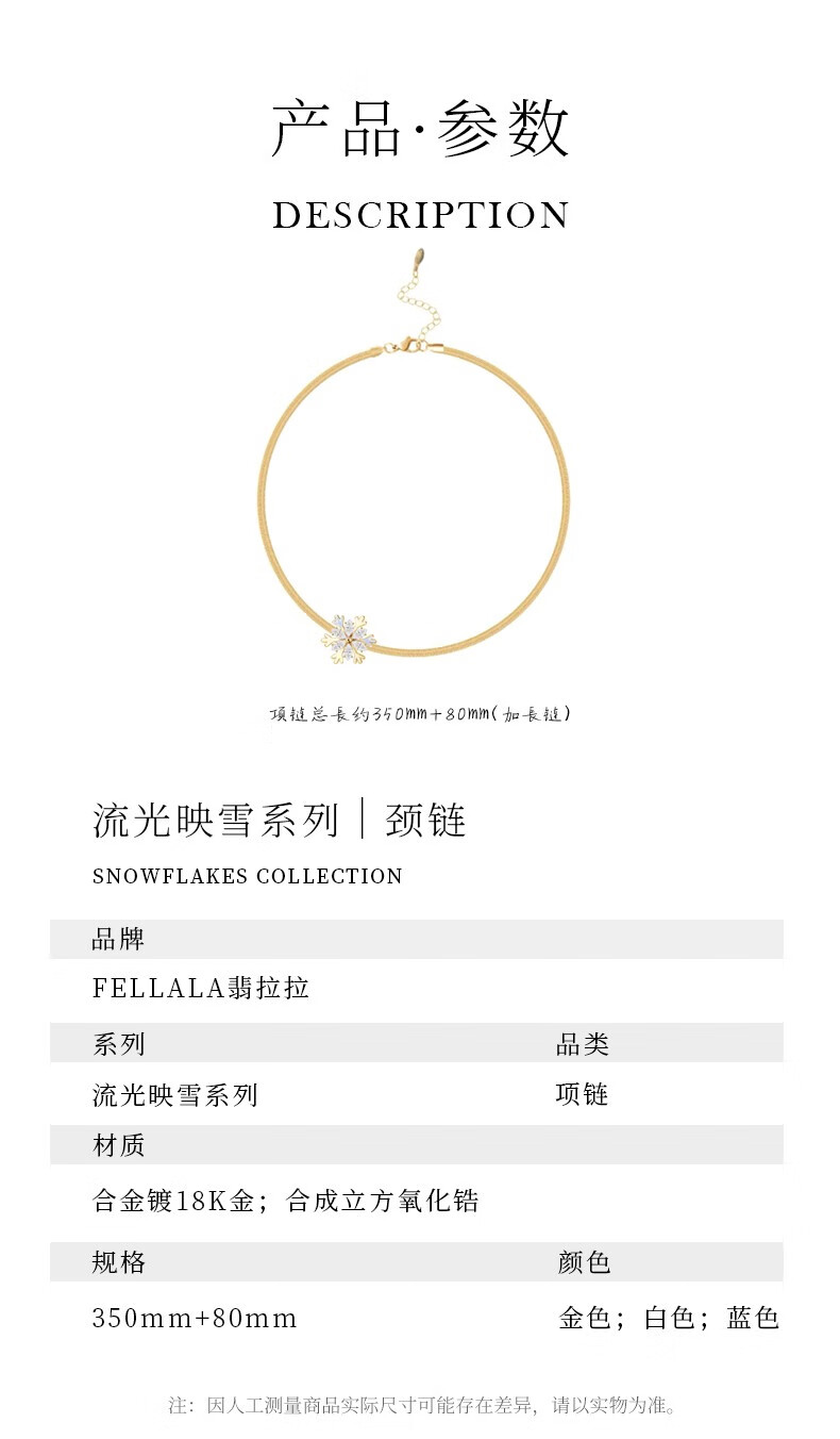 Fellala original design Liuguang Yingxue series simple and atmospheric fashion trend high-end necklace gift necklace