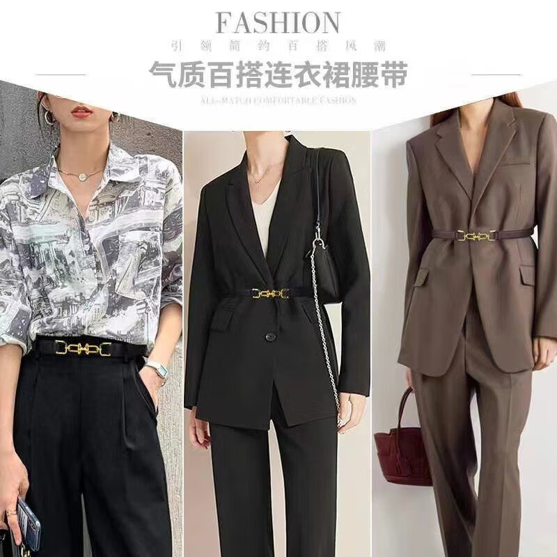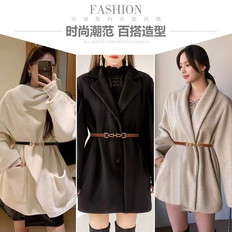 Nine-inch sunshine Korean style belt belt for women decorated coat with skirt blazer outer versatile buckle adjustable thin belt for women black (brown inside and black outside)
