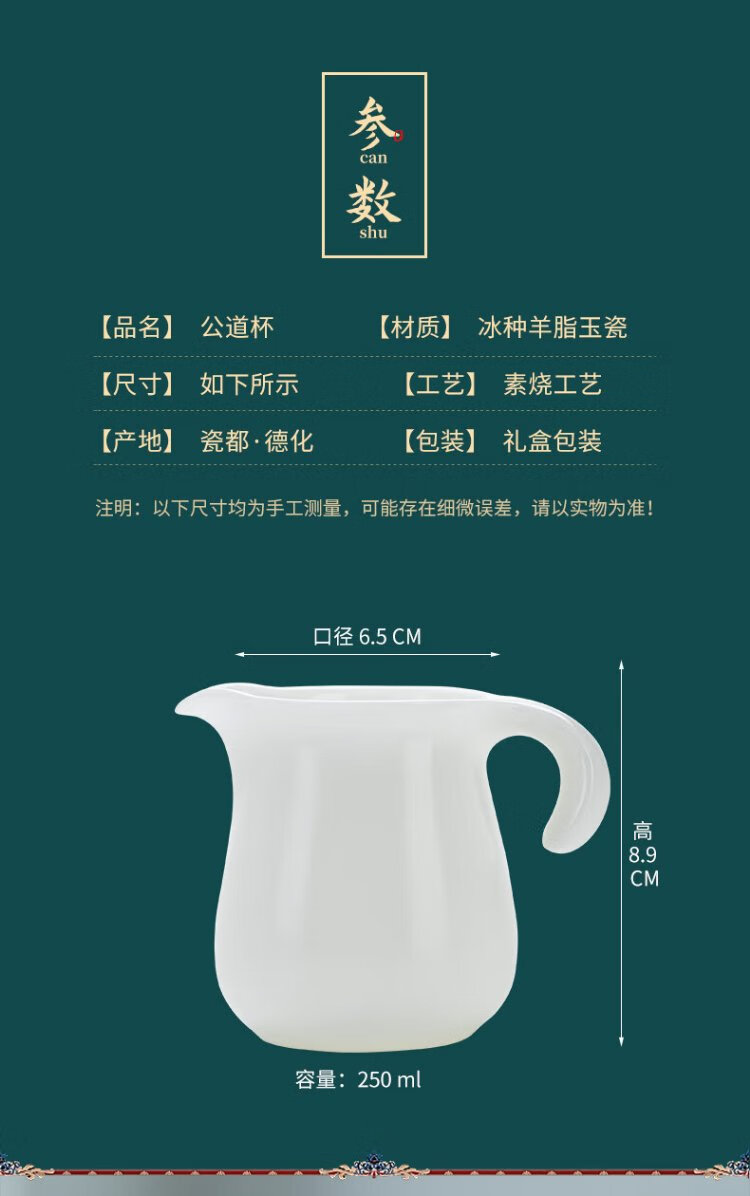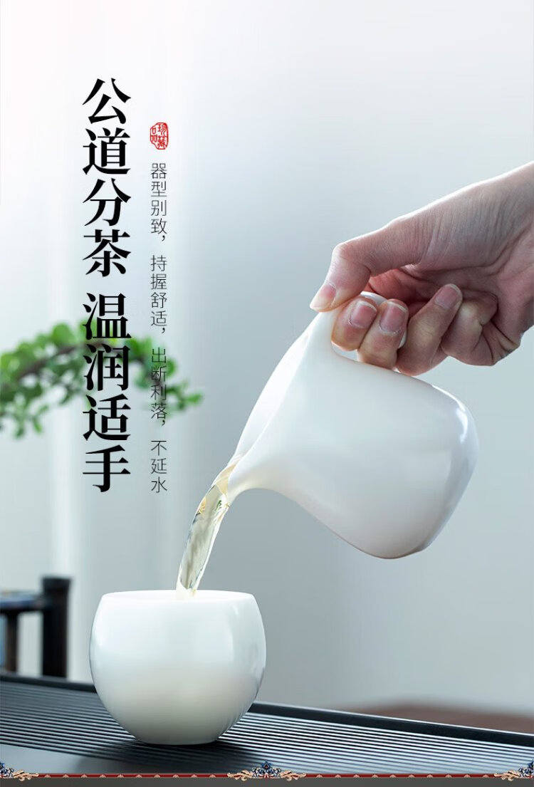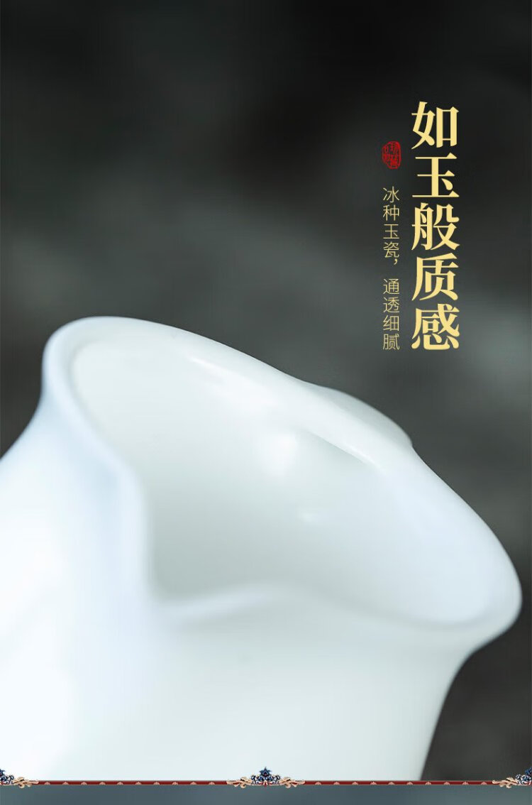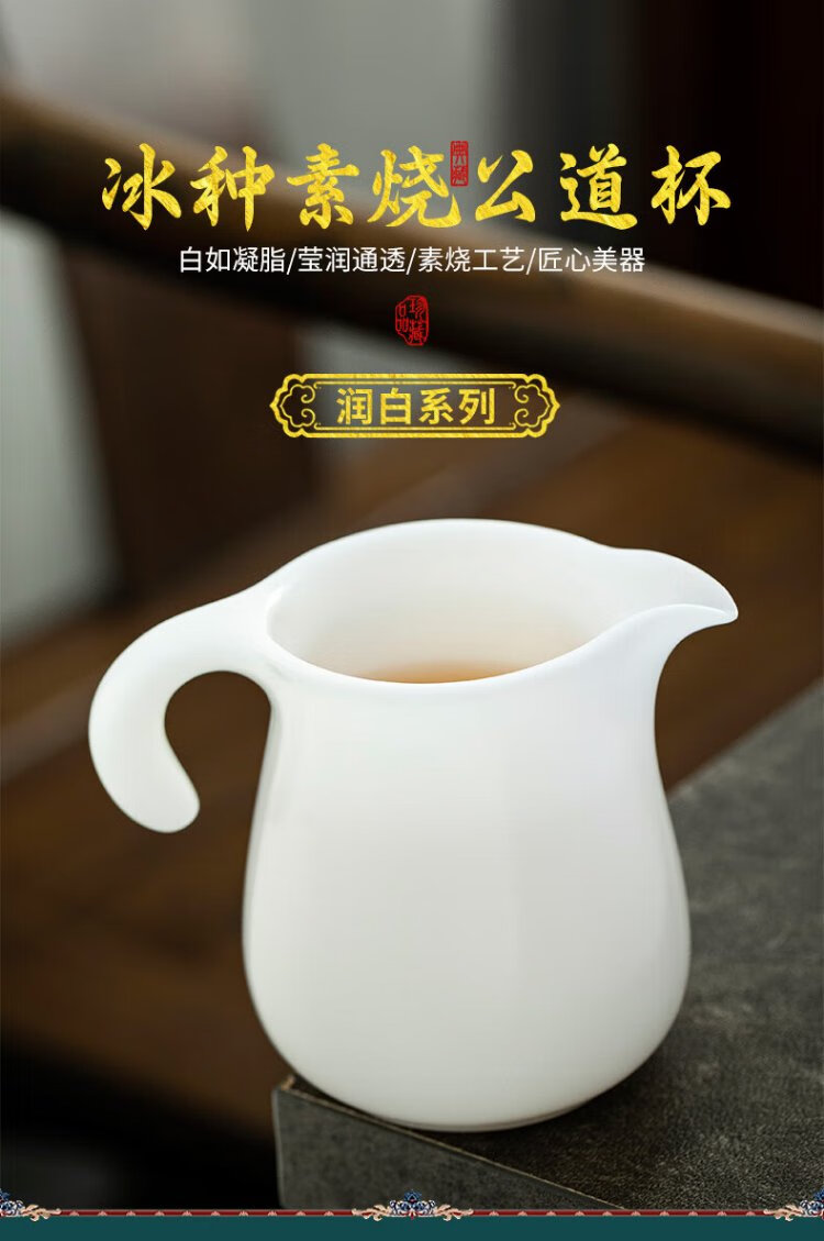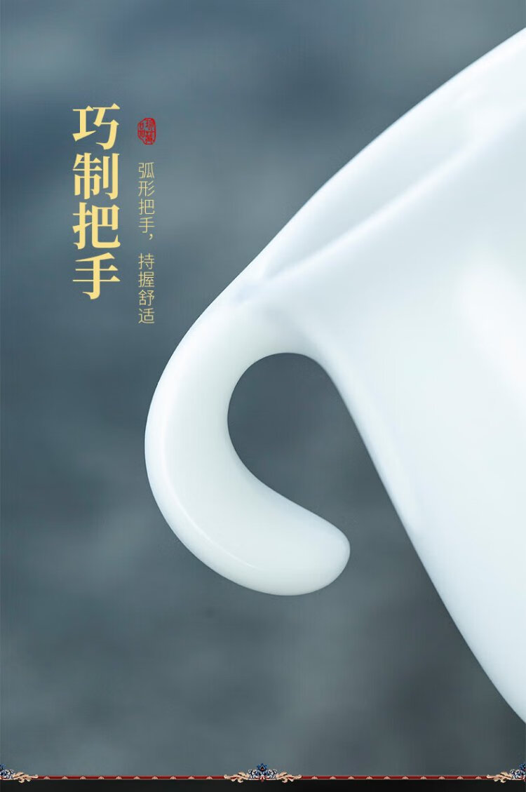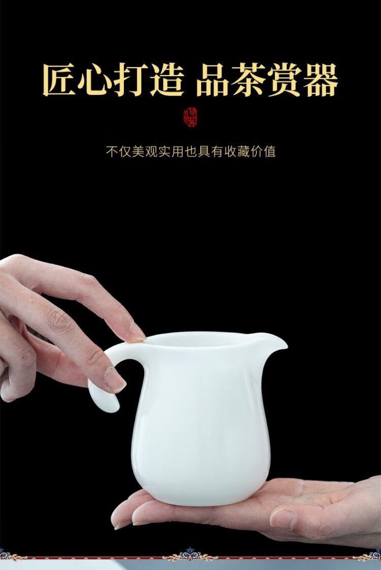 Yuquan Longmen Bingzhong Jade Porcelain Bisque-fired White Porcelain Fair Cup White Porcelain Tea Seaweed Handle Anti-scalding Kung Fu Tea Set Ceramic Tea Distributor Bingzhong Jade Porcelain Bisque-fired Handle Fair Cup (about 250ml)