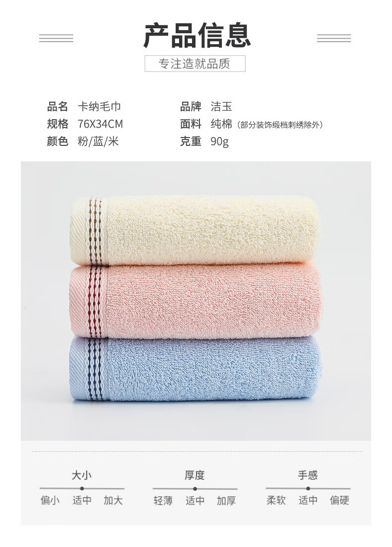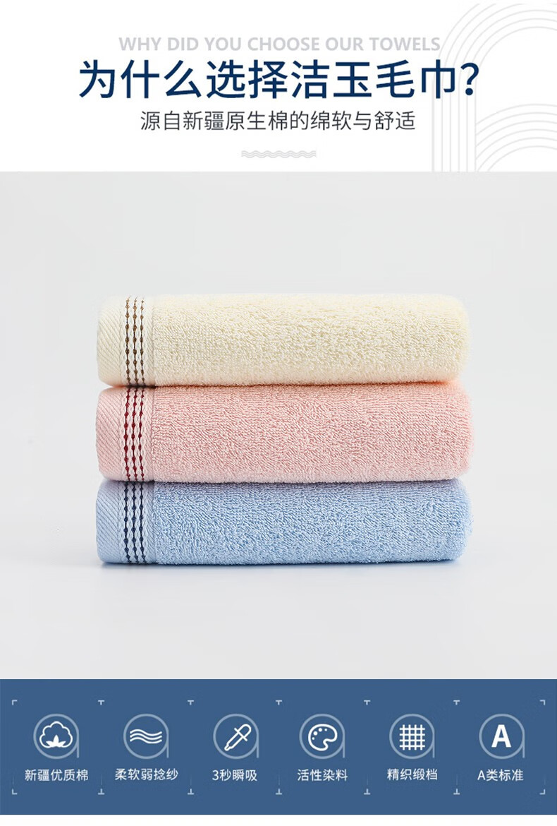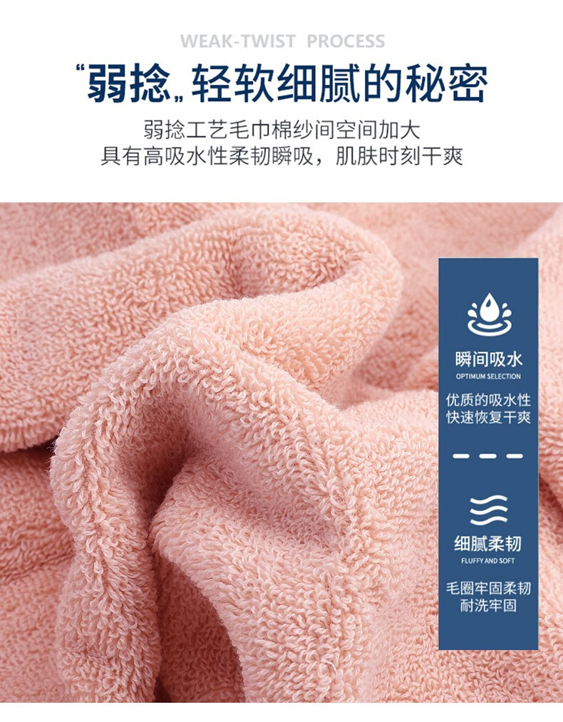Jieyu 2 pieces pure cotton face towel household soft absorbent cotton bath towel skin large face towel pure cotton face towel (pink + blue