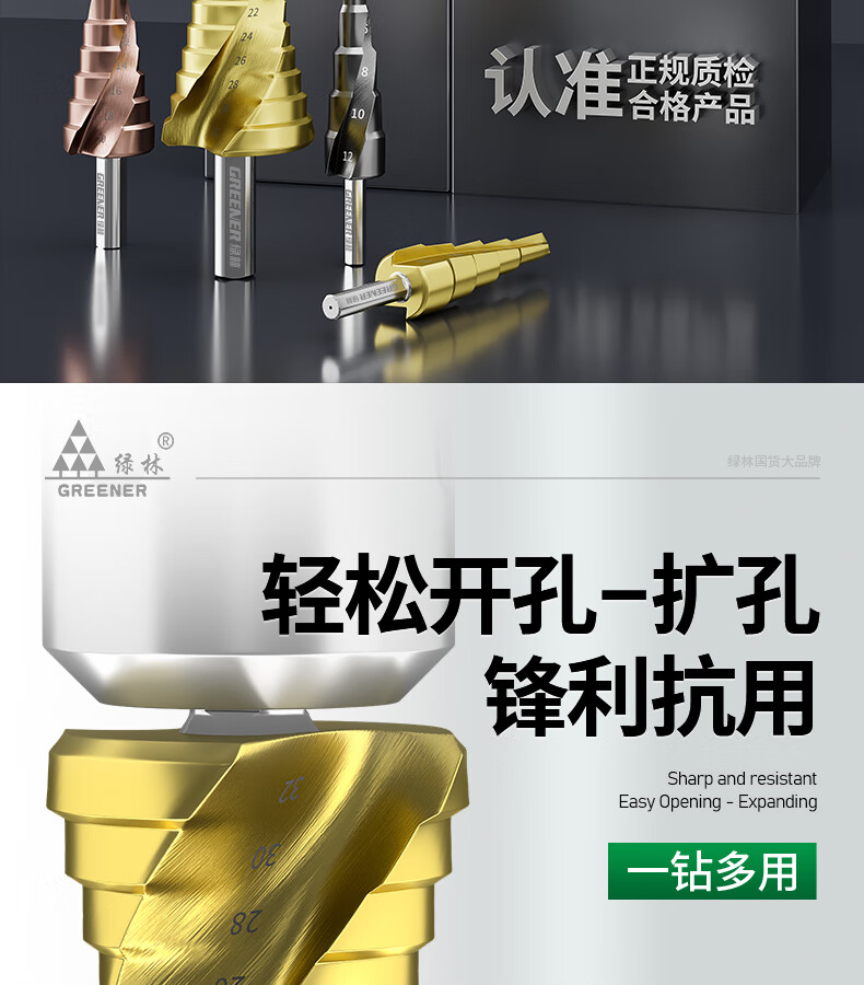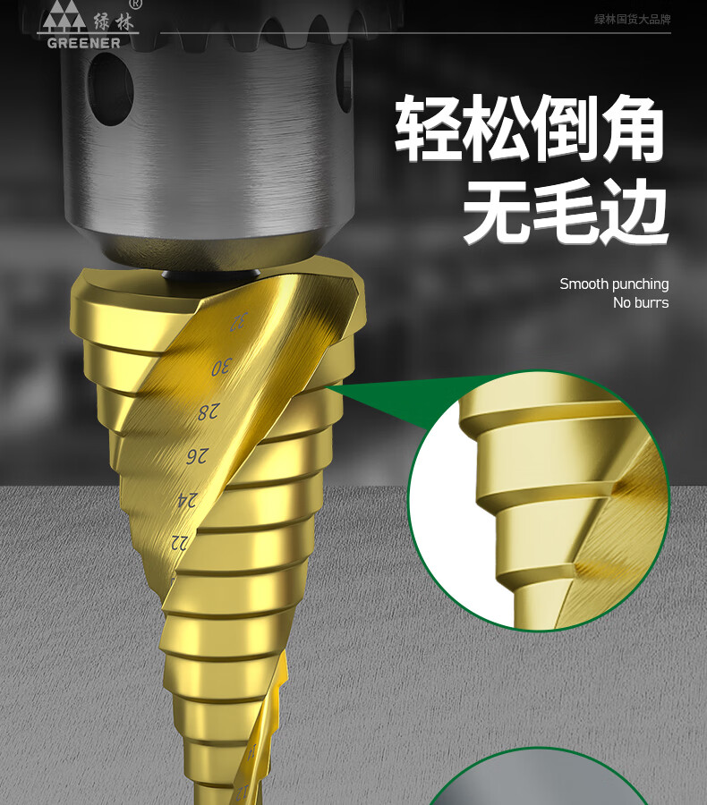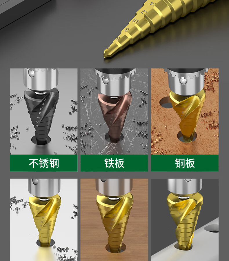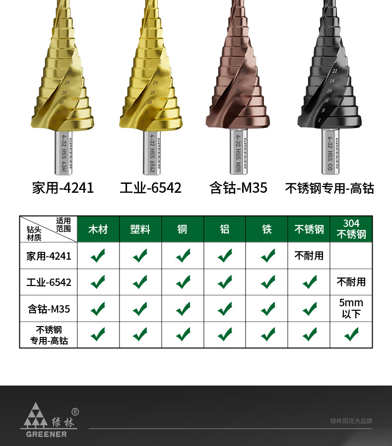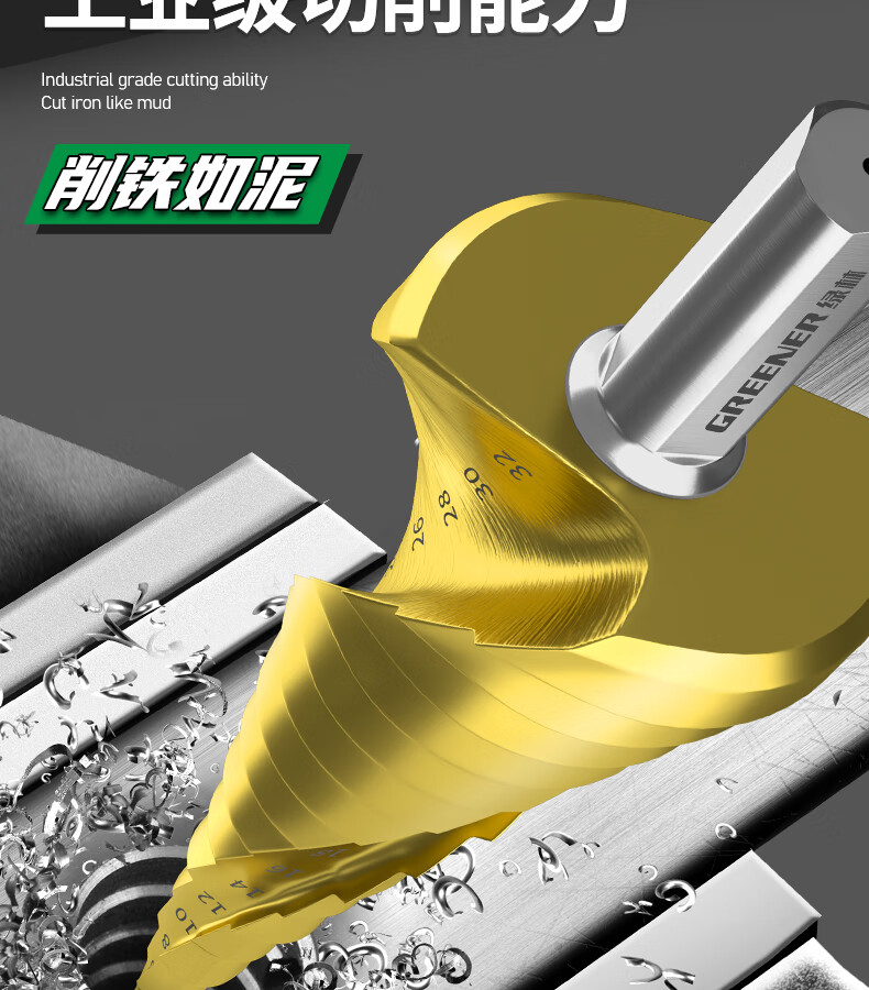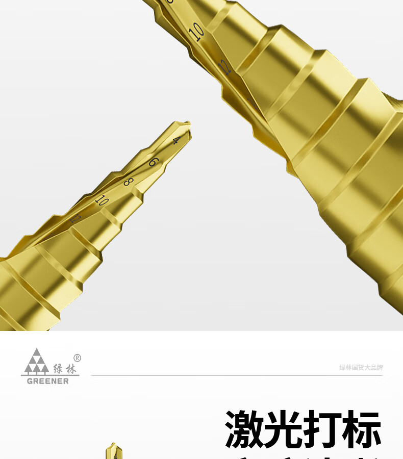 GREENER Pagoda drill spiral cobalt-containing multi-functional metal drilling opening stainless steel tapered cobalt drill bit reaming tool 6542 spiral groove 4-20mm 9 steps