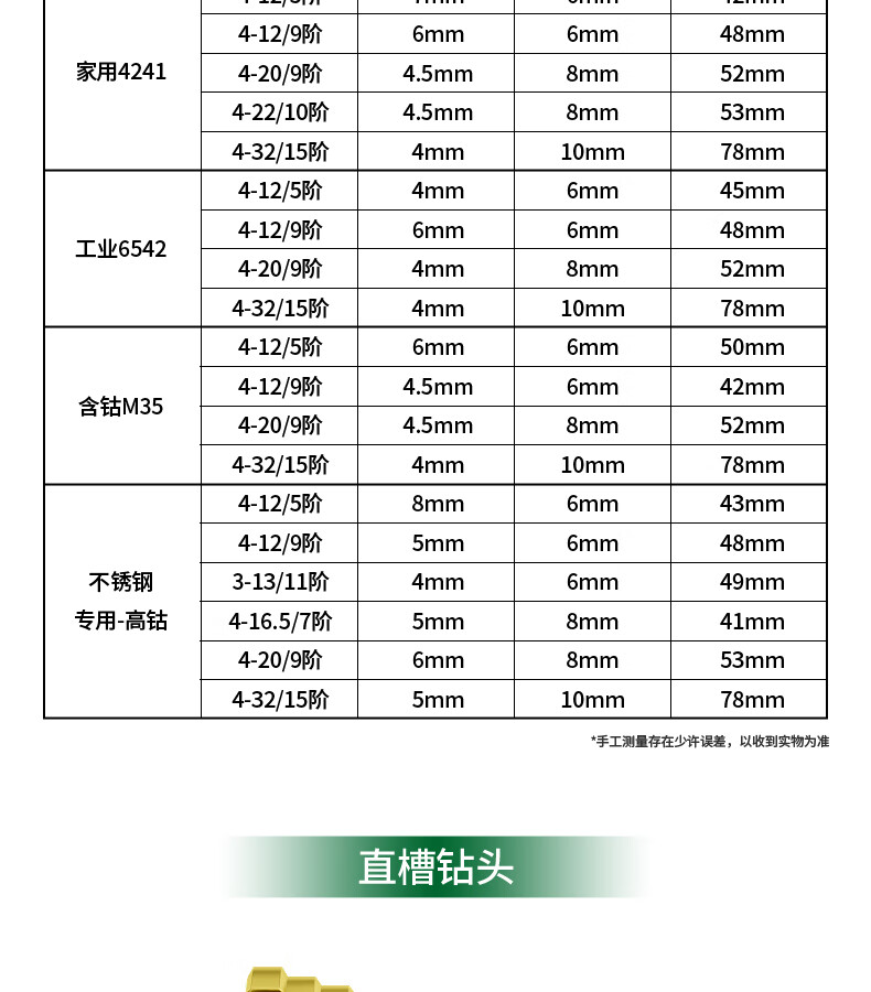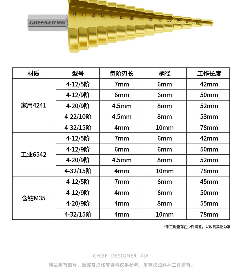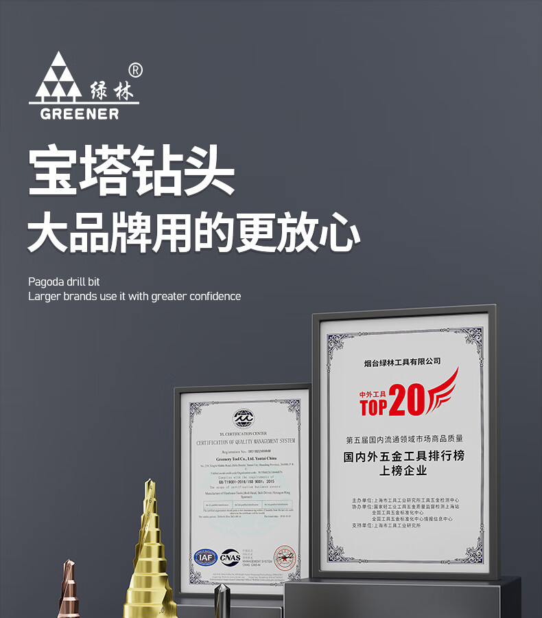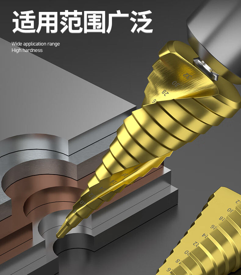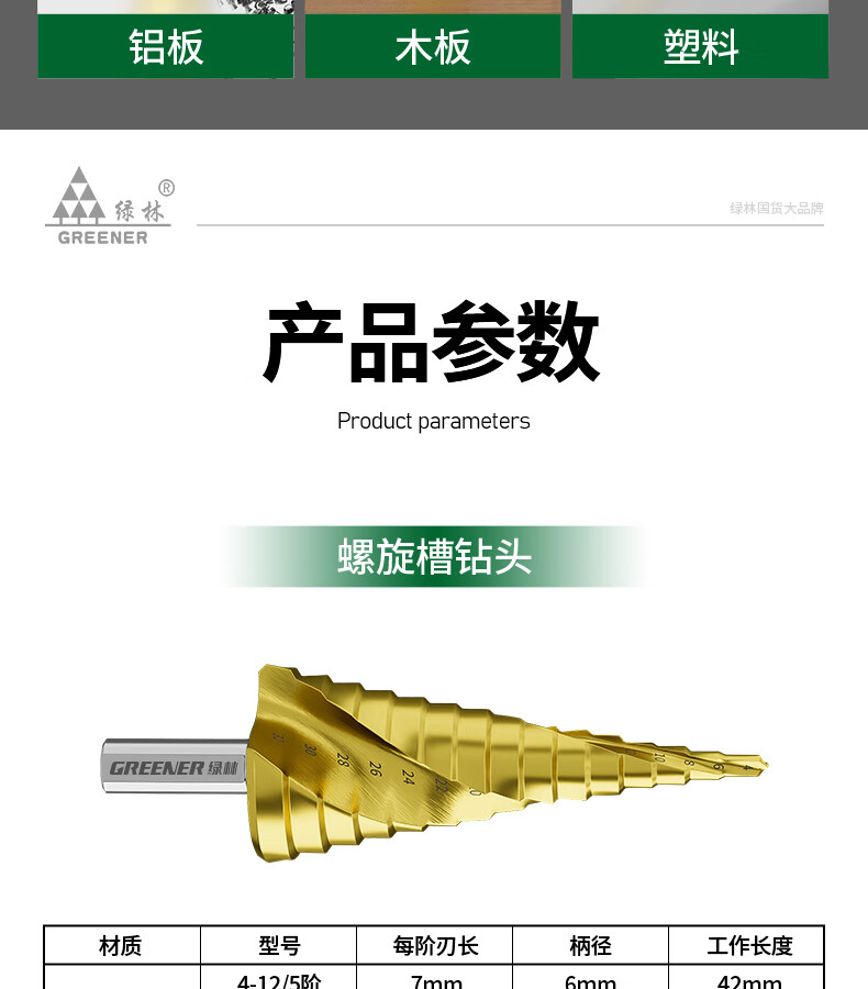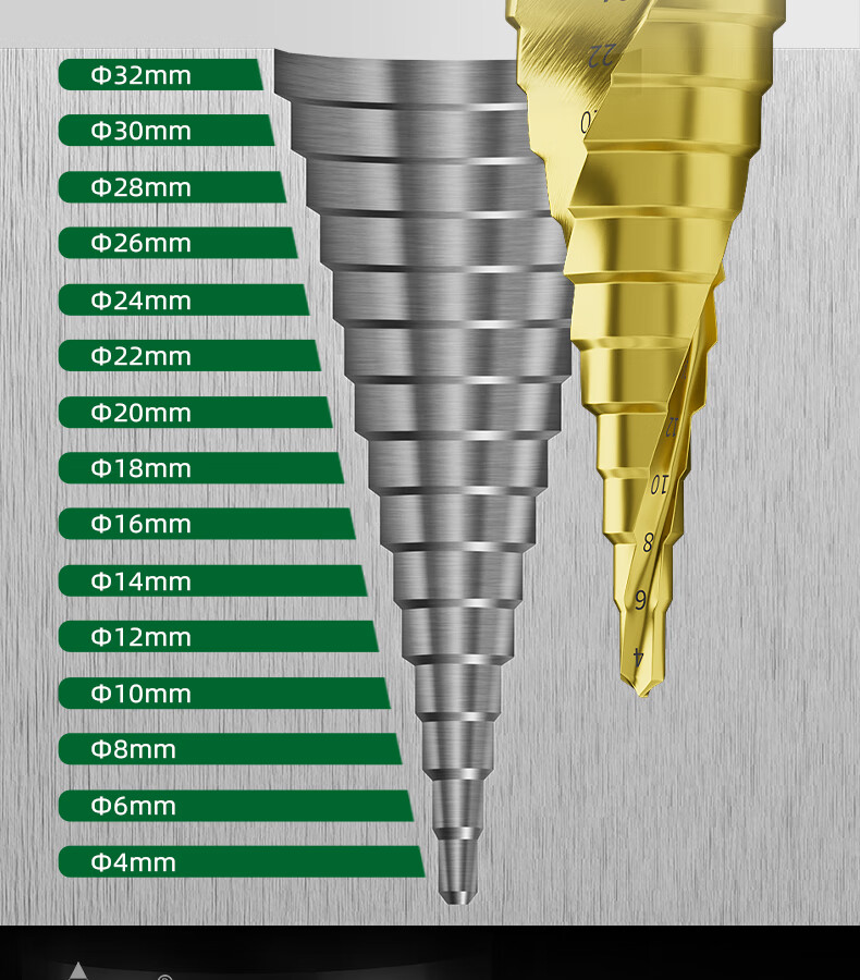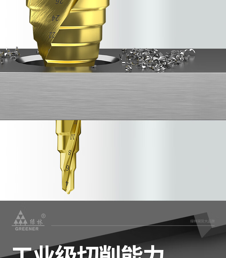 GREENER Pagoda drill spiral cobalt-containing multi-functional metal drilling opening stainless steel tapered cobalt drill bit reaming tool 6542 spiral groove 4-20mm 9 steps