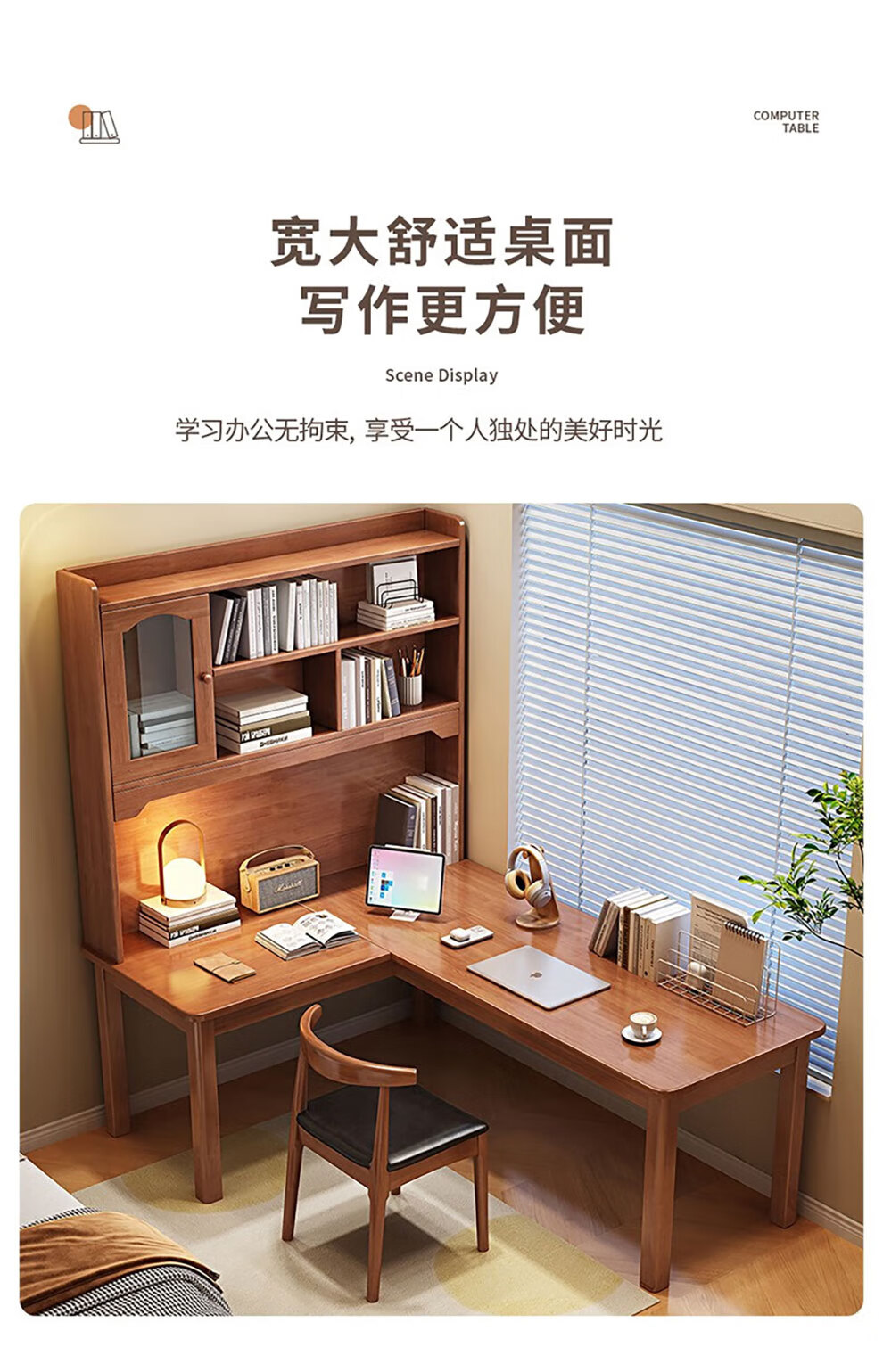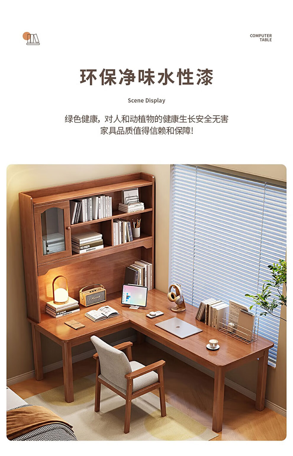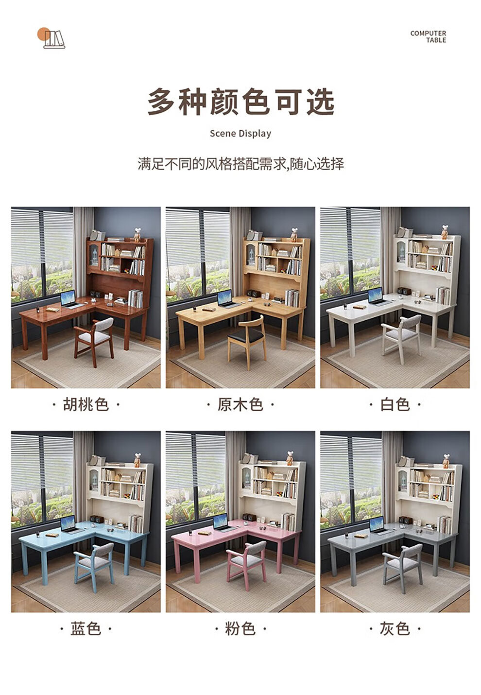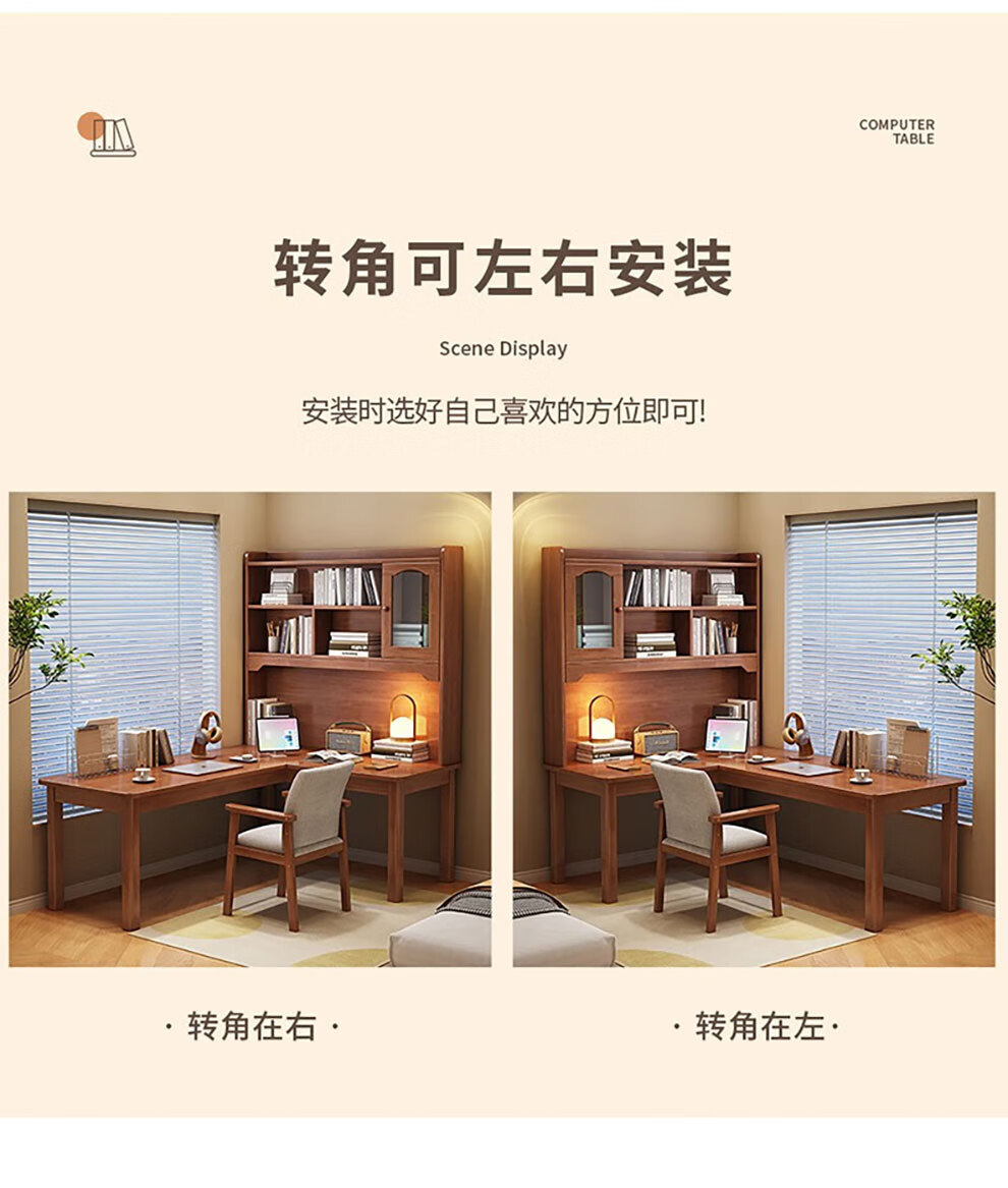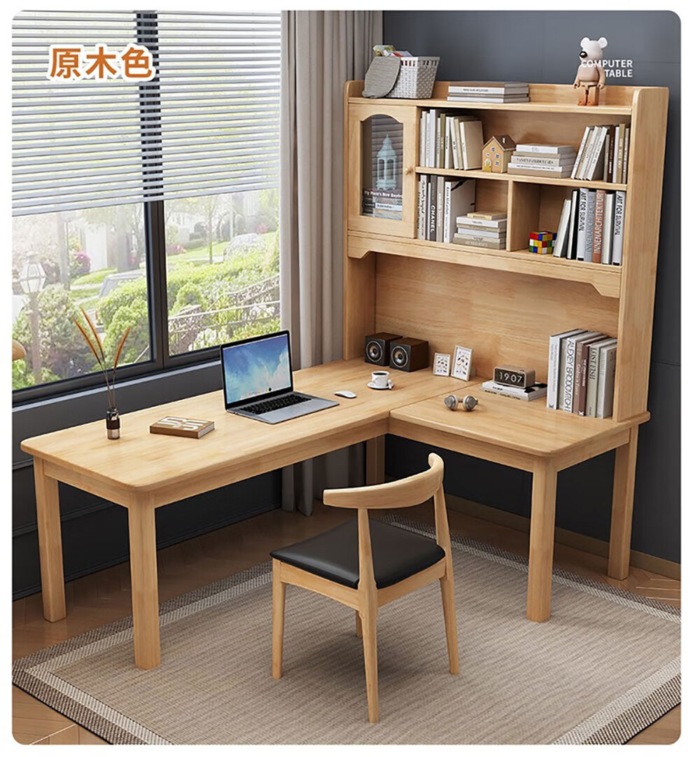 Fengyeqingqing Nordic solid wood corner desk computer desk bookshelf combination bedroom corner study table L-shaped office writing desk solid wood single table (walnut color) 1.6 meters