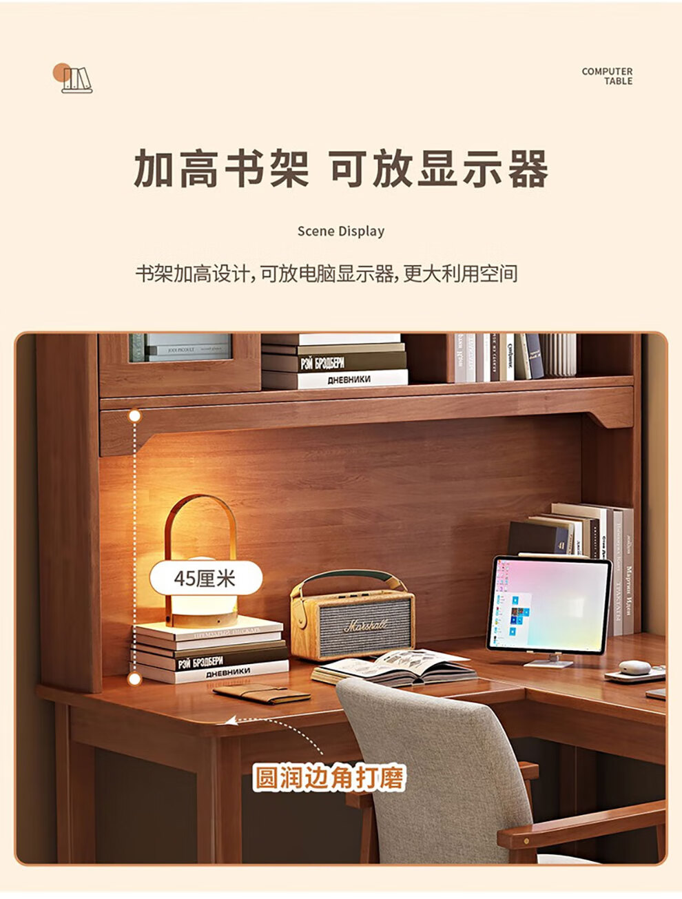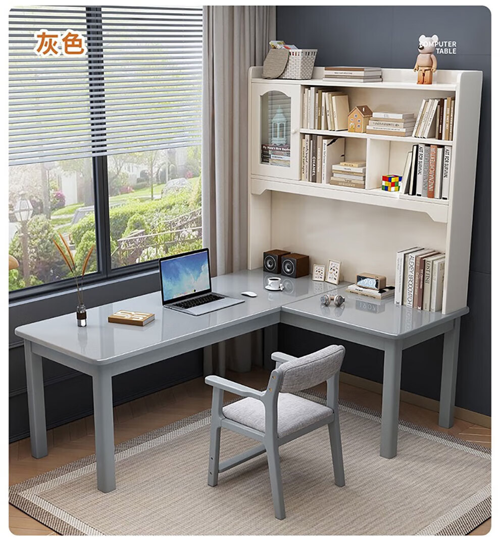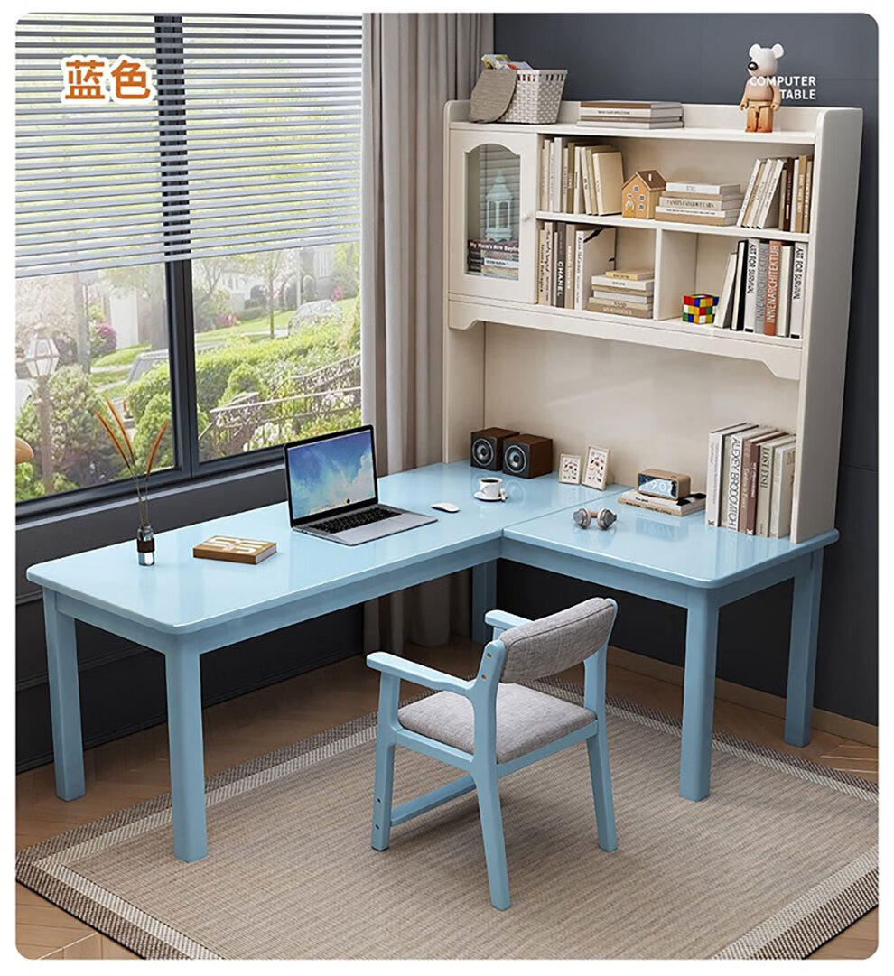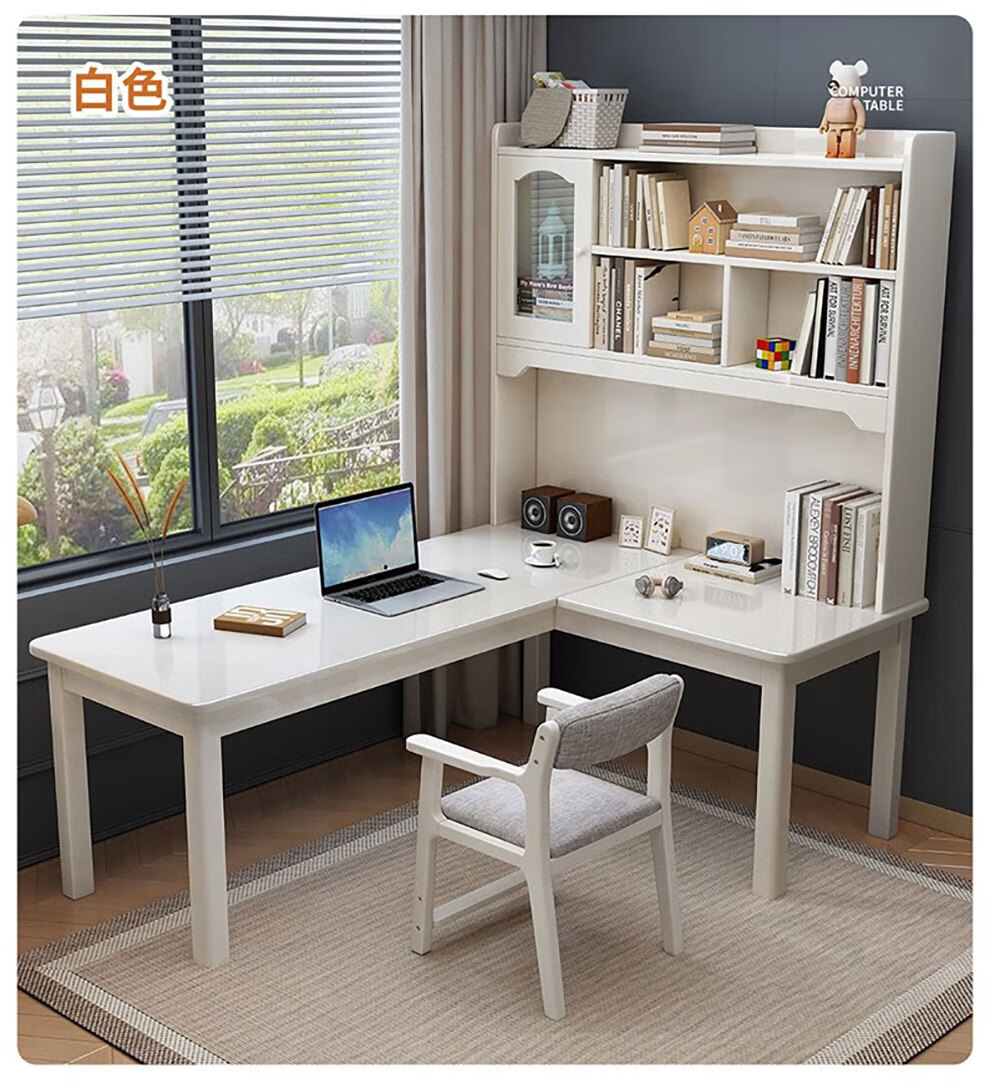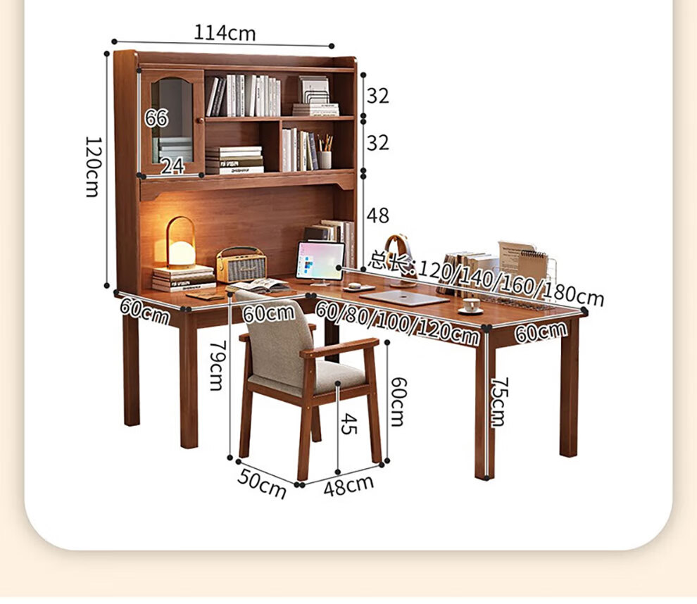 Fengyeqingqing Nordic solid wood corner desk computer desk bookshelf combination bedroom corner study table L-shaped office writing desk solid wood single table (walnut color) 1.6 meters