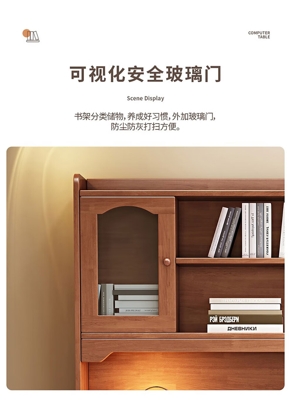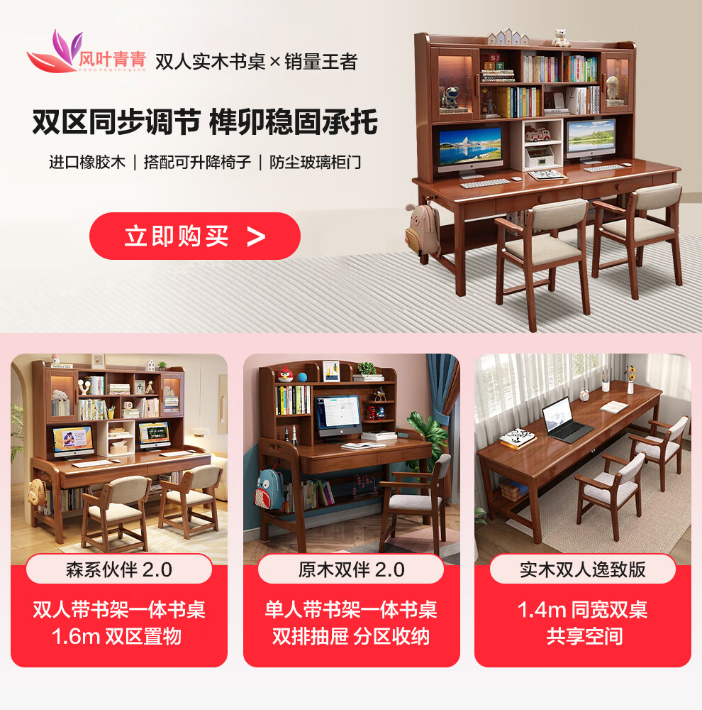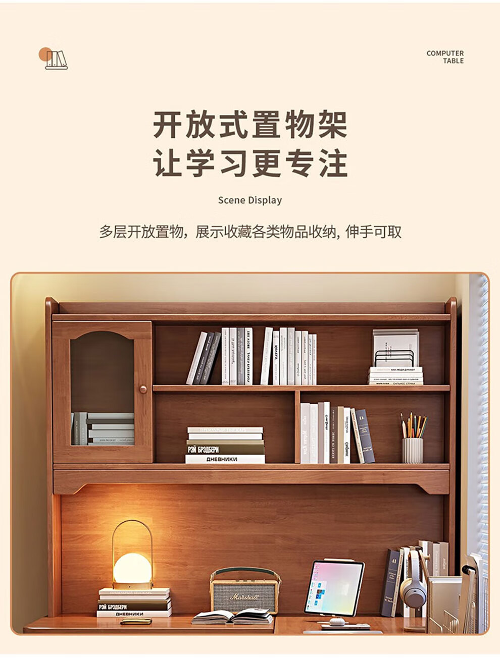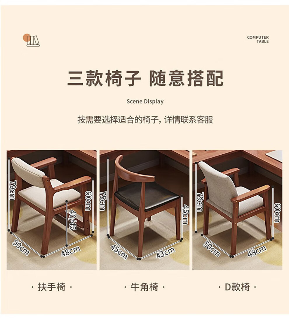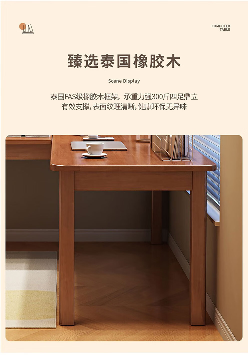Fengyeqingqing Nordic solid wood corner desk computer desk bookshelf combination bedroom corner study table L-shaped office writing desk solid wood single table (walnut color) 1.6 meters