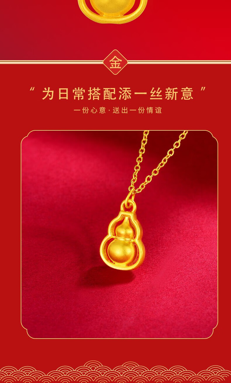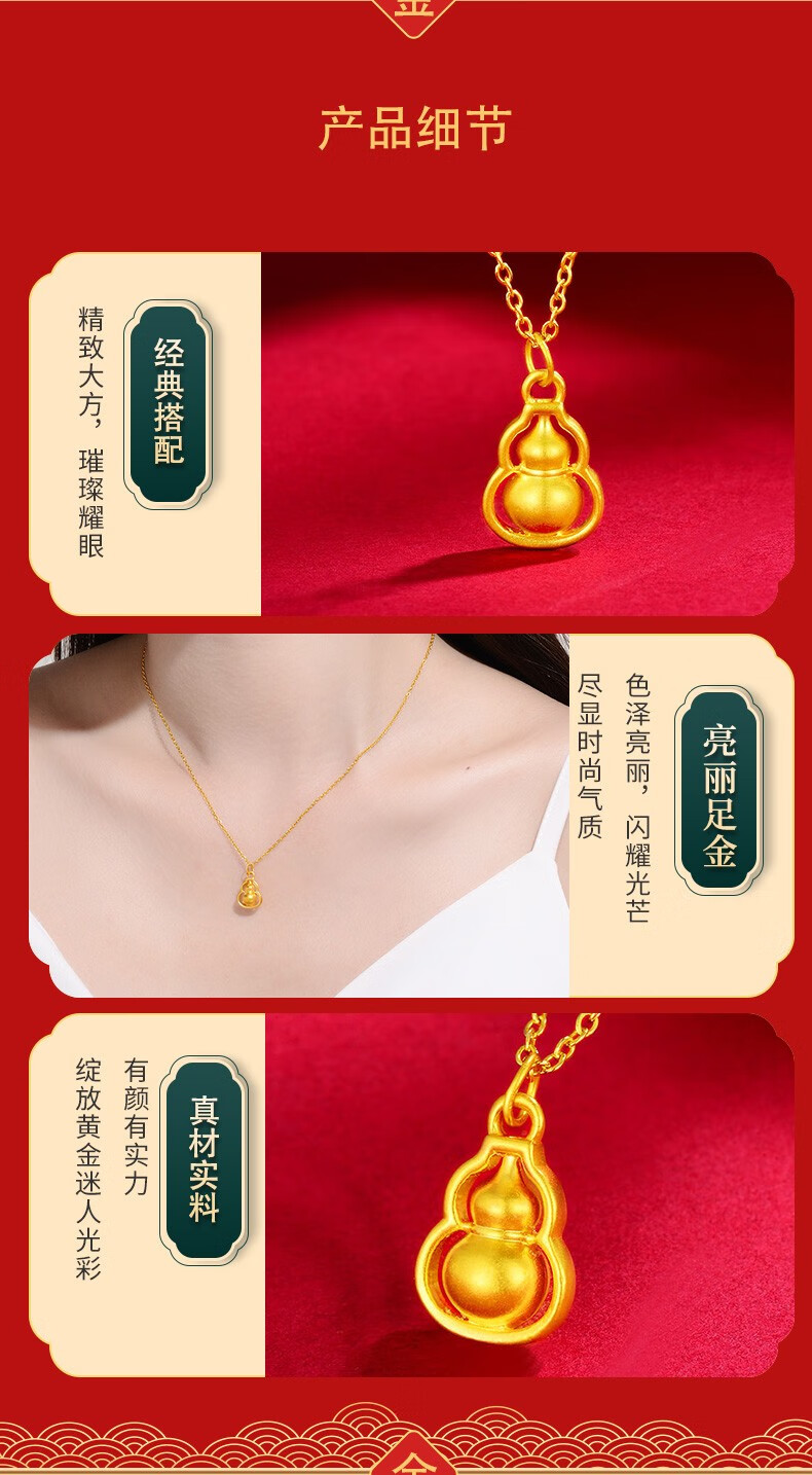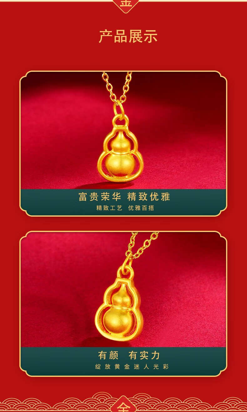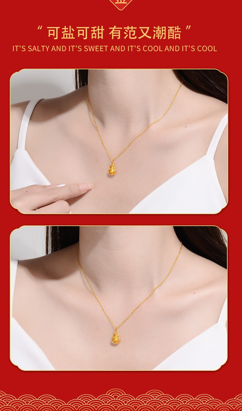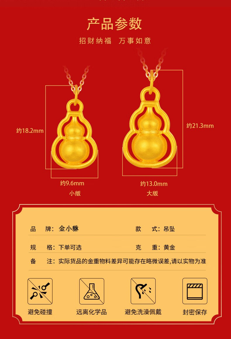 Jin Xiaoxiu Pure Gold 999 Gourd Necklace for Women Gold Fulu Pendant 5d Gold Pendant Fashion Gift for Mom and Best Friend 0.8g. Large Gourd Pendant-With Gold Chain