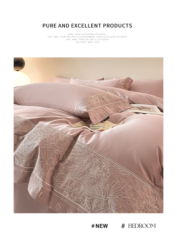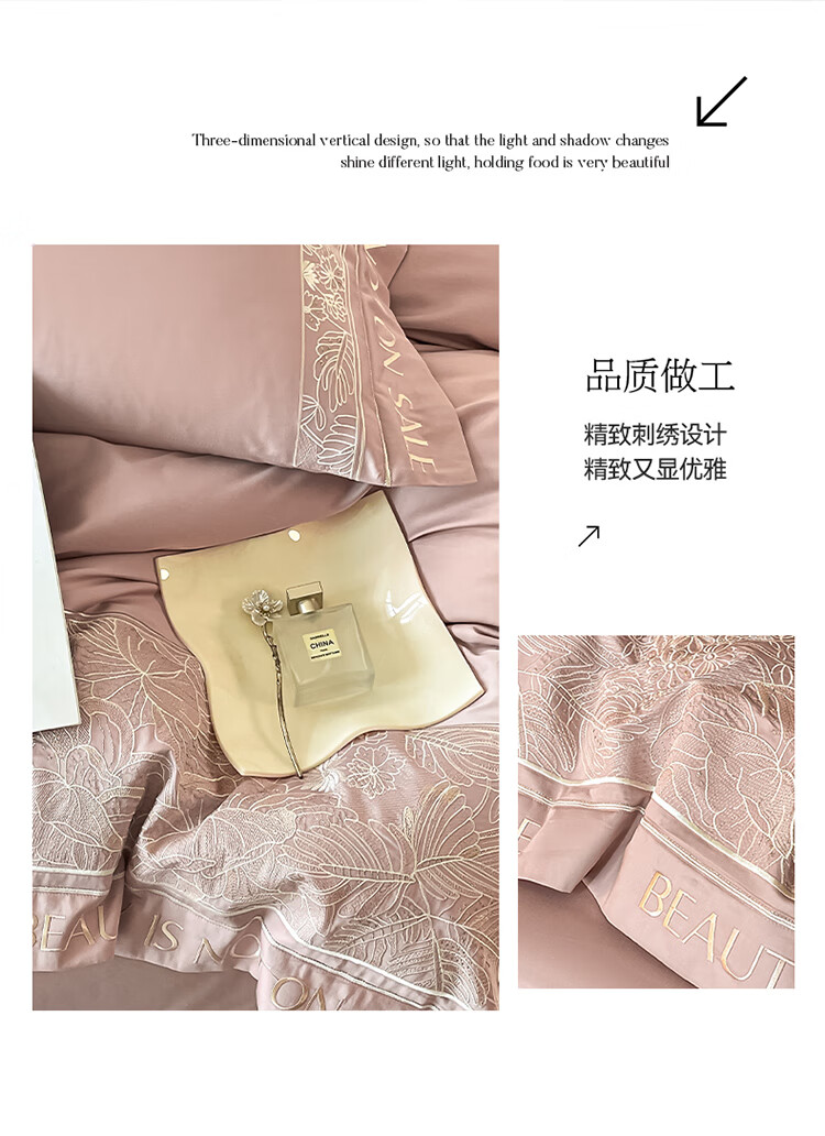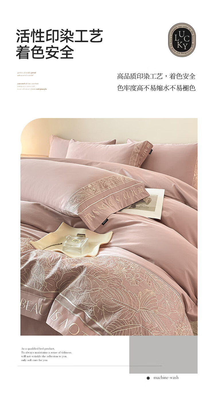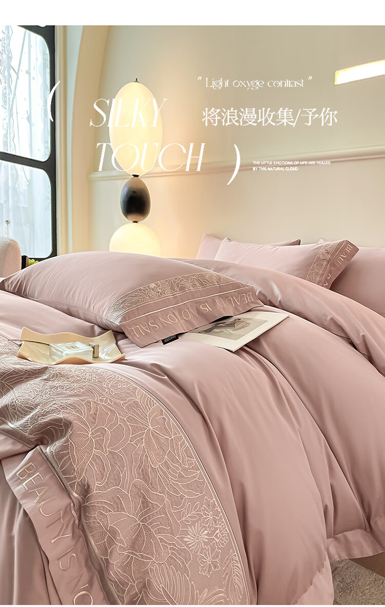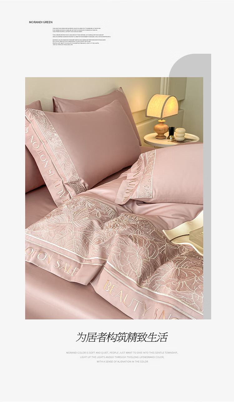 Mercury Series Home Textiles Light Luxury Style A Class 100 Count Long Staple Cotton Autumn and Winter New Four-piece Set Pure Cotton Heavy Embroidery Bedding 4 Admiration-Hongtao 1.8 Bed Sheet Four-piece Set 200*230 Quilt Cover