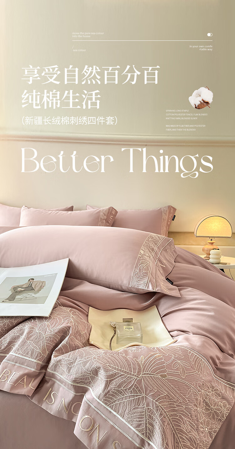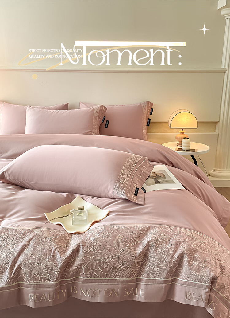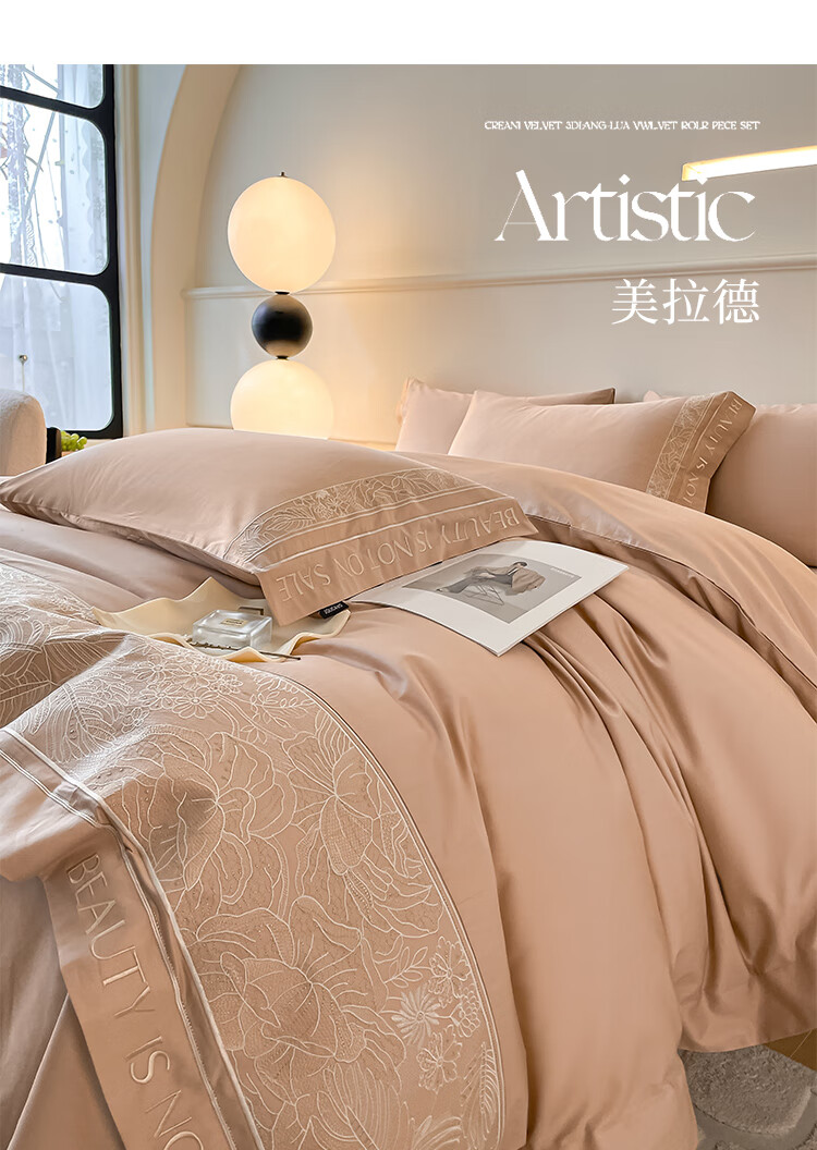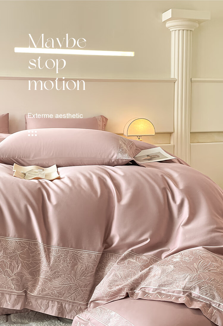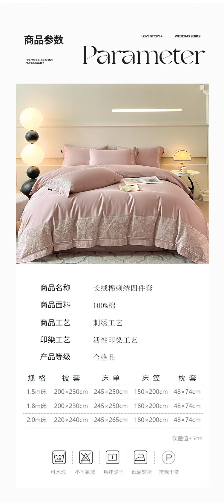 Mercury Series Home Textiles Light Luxury Style A Class 100 Count Long Staple Cotton Autumn and Winter New Four-piece Set Pure Cotton Heavy Embroidery Bedding 4 Admiration-Hongtao 1.8 Bed Sheet Four-piece Set 200*230 Quilt Cover