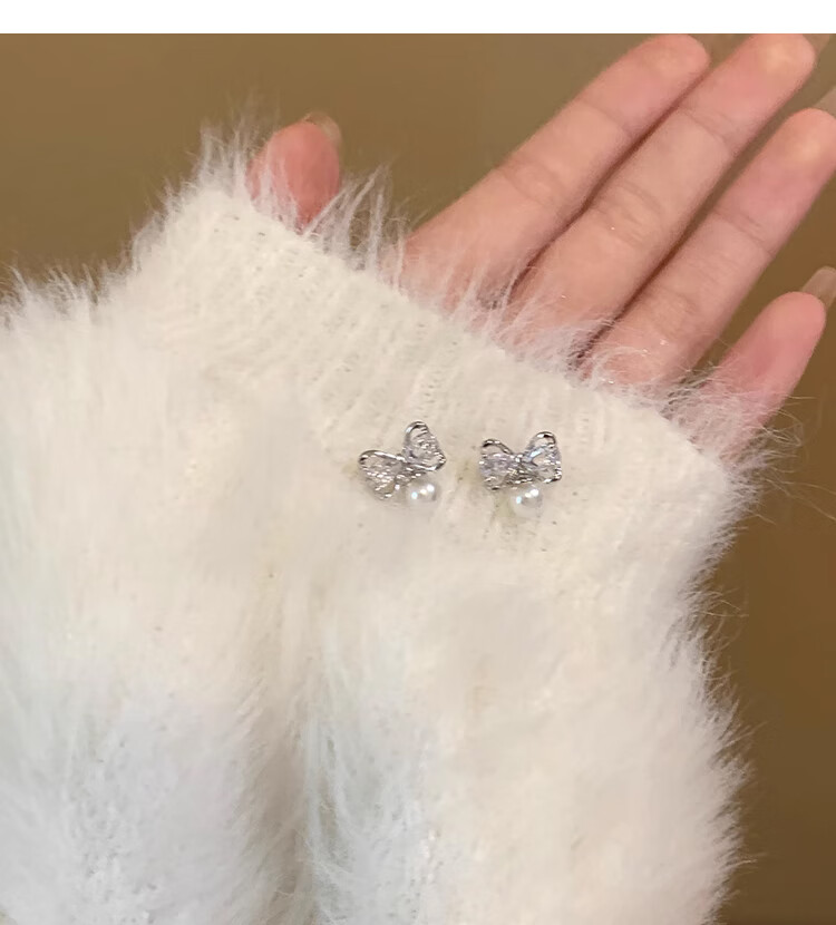 Lnieer999 Pure Silver Bow Pearl Earrings for Women Exquisite and High-end Niche Design Silver Earrings Temperament Silver Earrings Bow Earrings 999 Pure Silver