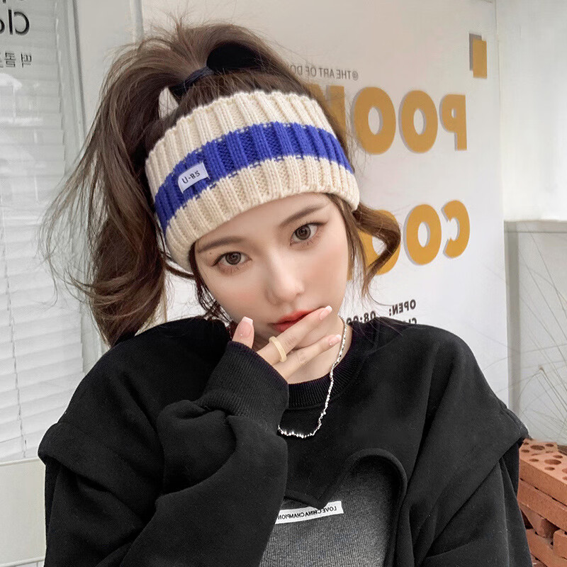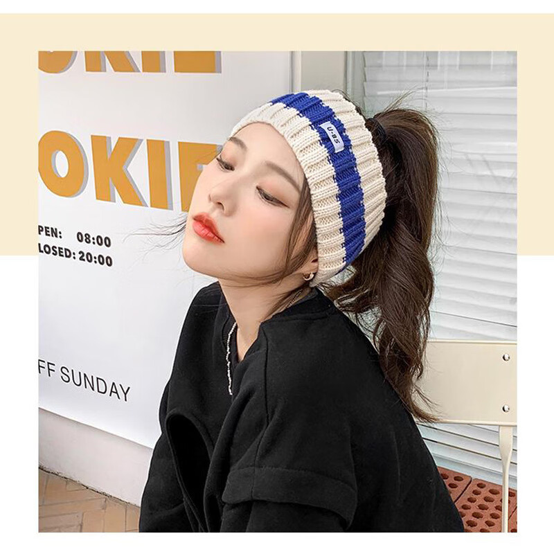 Jincheng Wool Knitted Letter Headband New Sports Bandana Baotou Fashion Simple Versatile Hair Accessories Women H490 White Blue