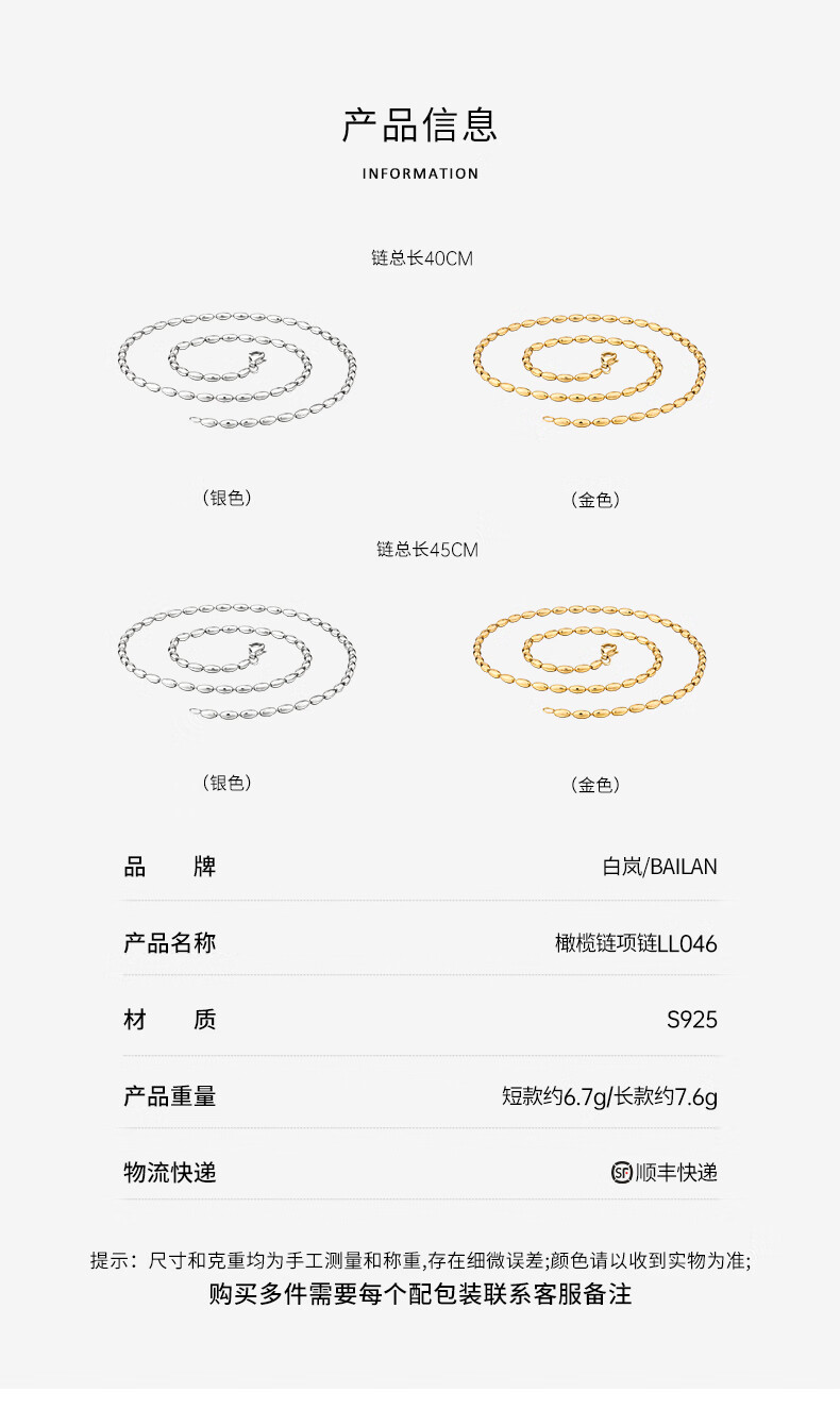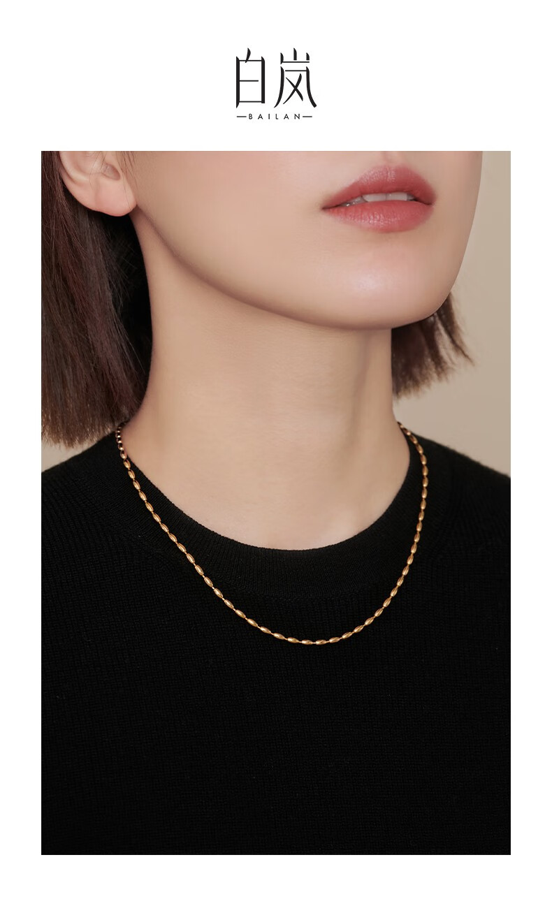 Bai Lan Olive Chain Necklace Women's Nude Chain Clavicle Chain Simple Fashion Trend Elegant Temperament Accessory Birthday Gift for Wife Gold (40cm)