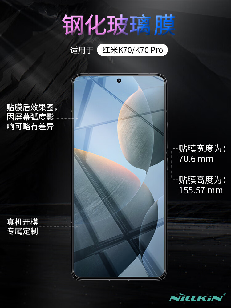 Nelkin Xiaomi Redmi K70/K70Pro tempered film without black edges HD anti-fall anti-fingerprint anti-scratch tempered glass film mobile phone protective film H+pro