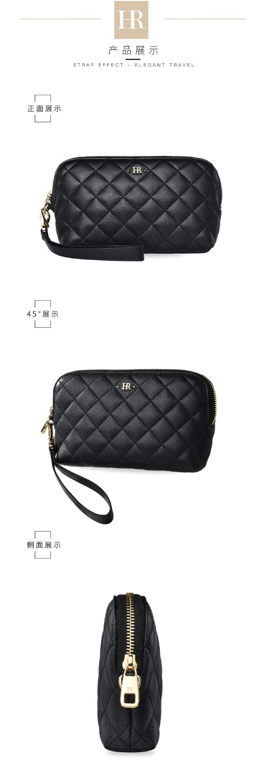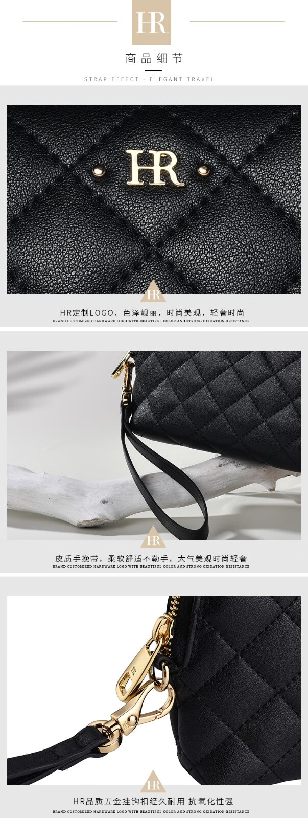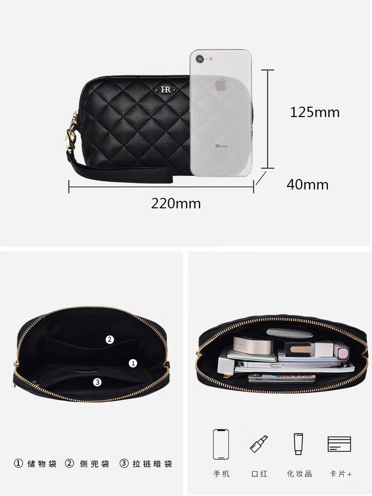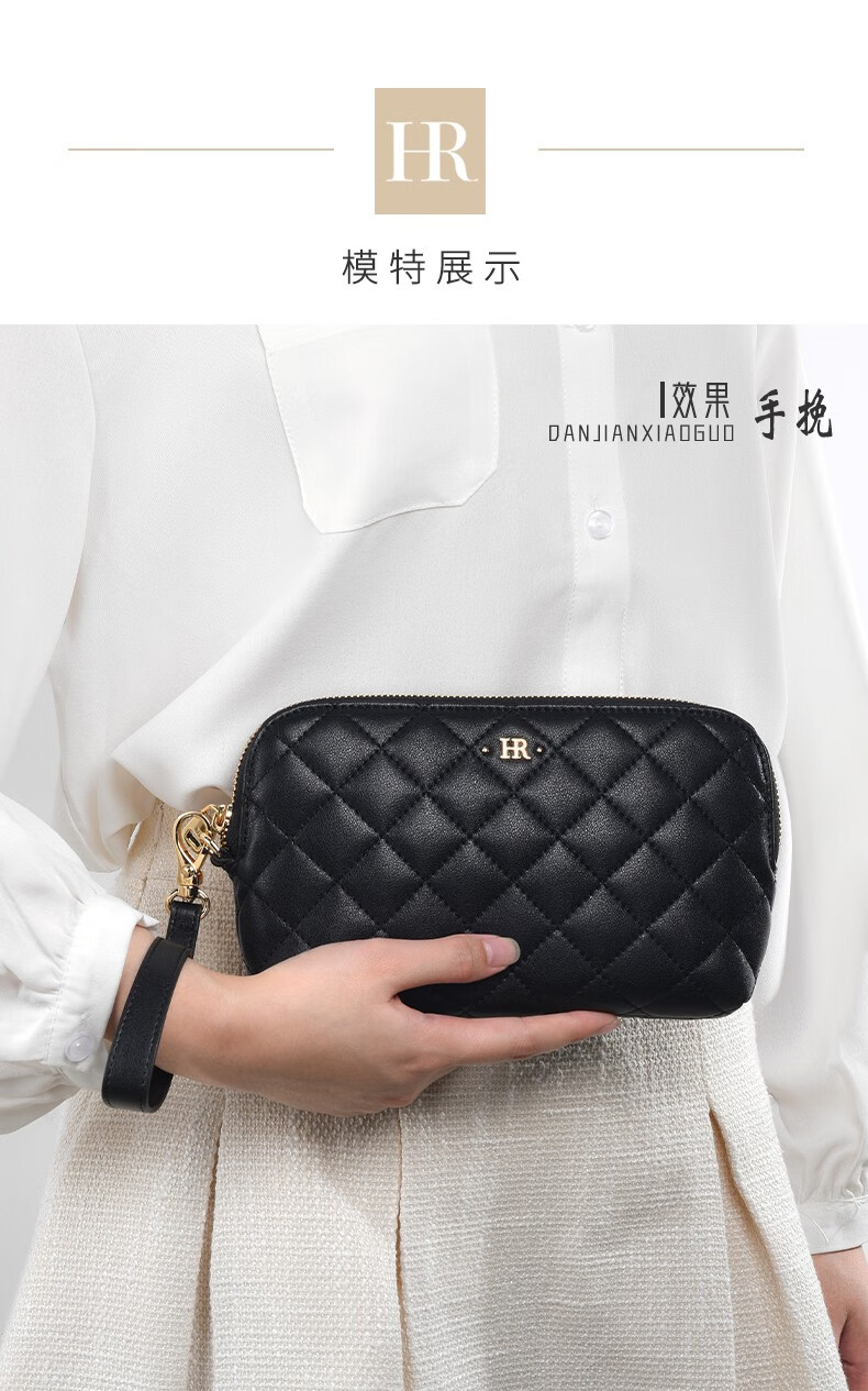 HR Helena bag women's clutch bag mobile phone bag first layer cowhide rhombus hand bag clutch bag birthday gift black