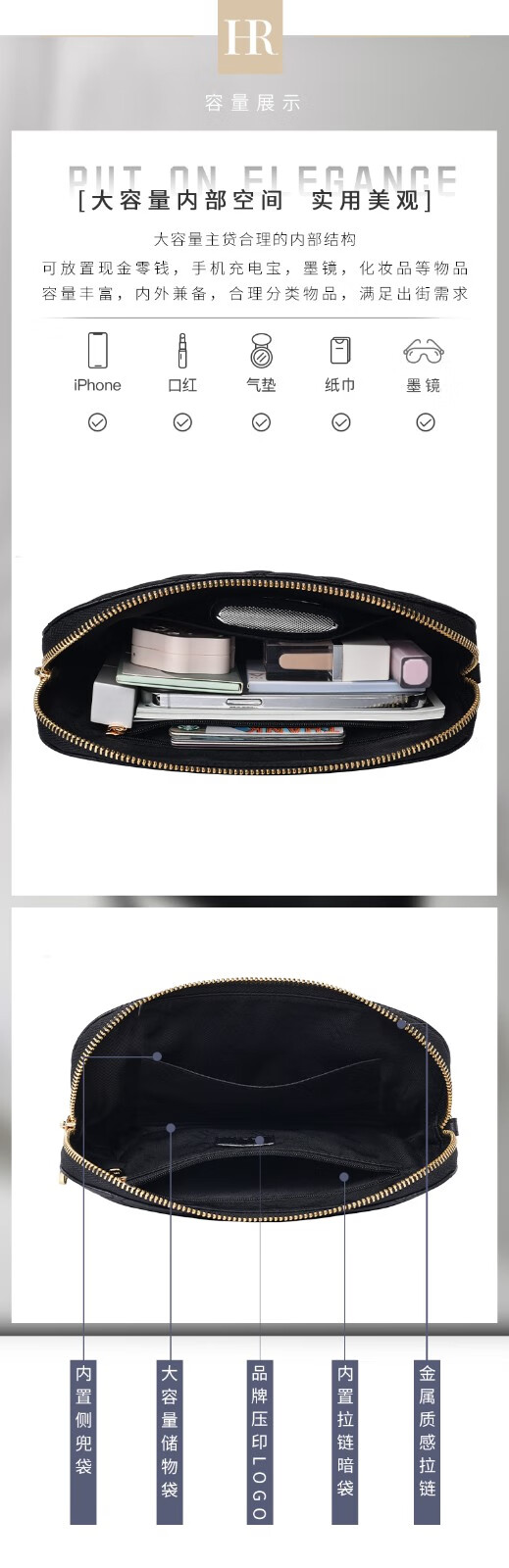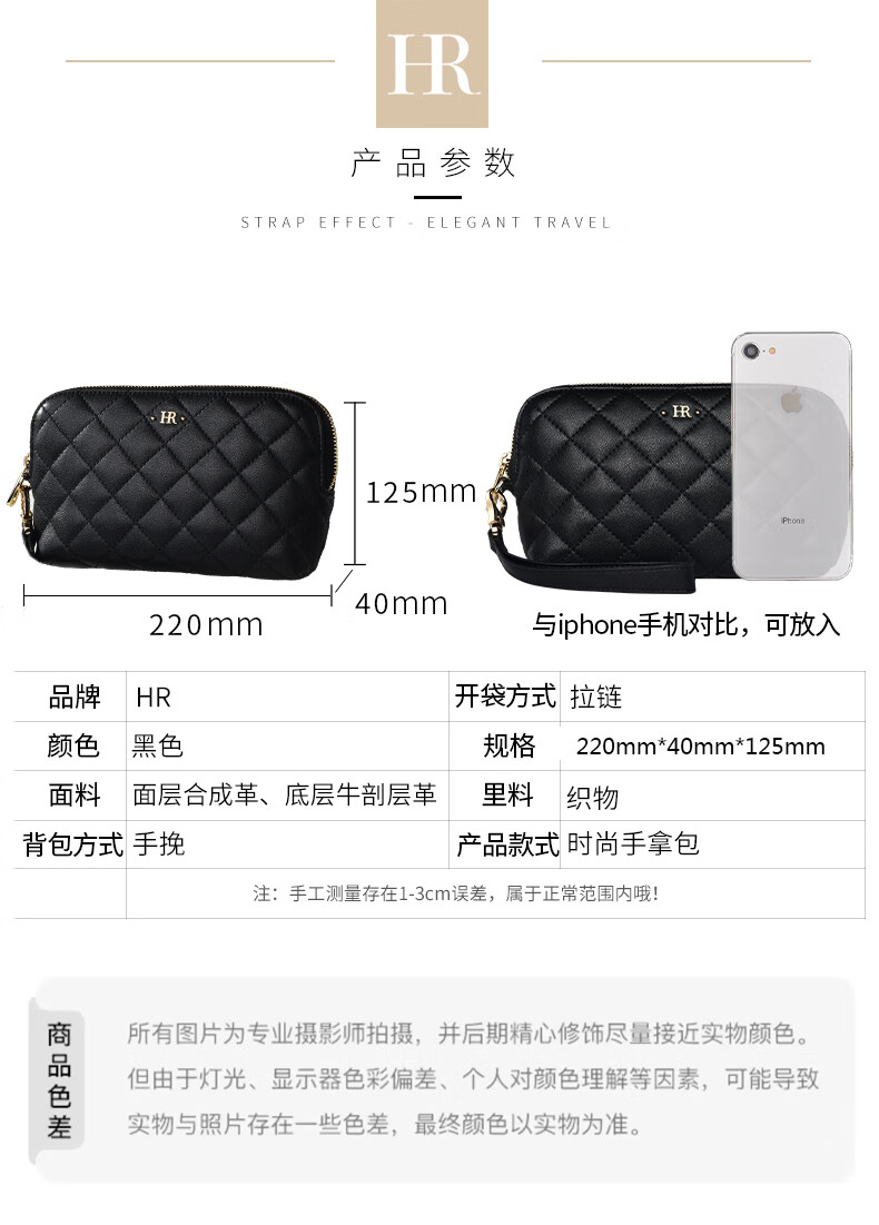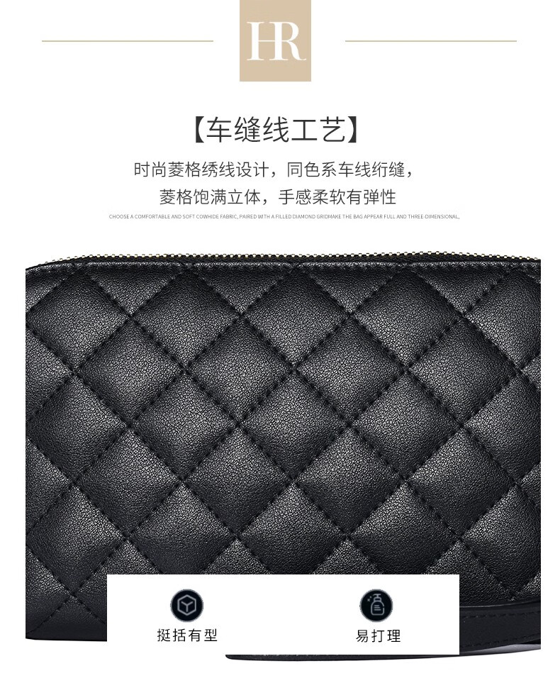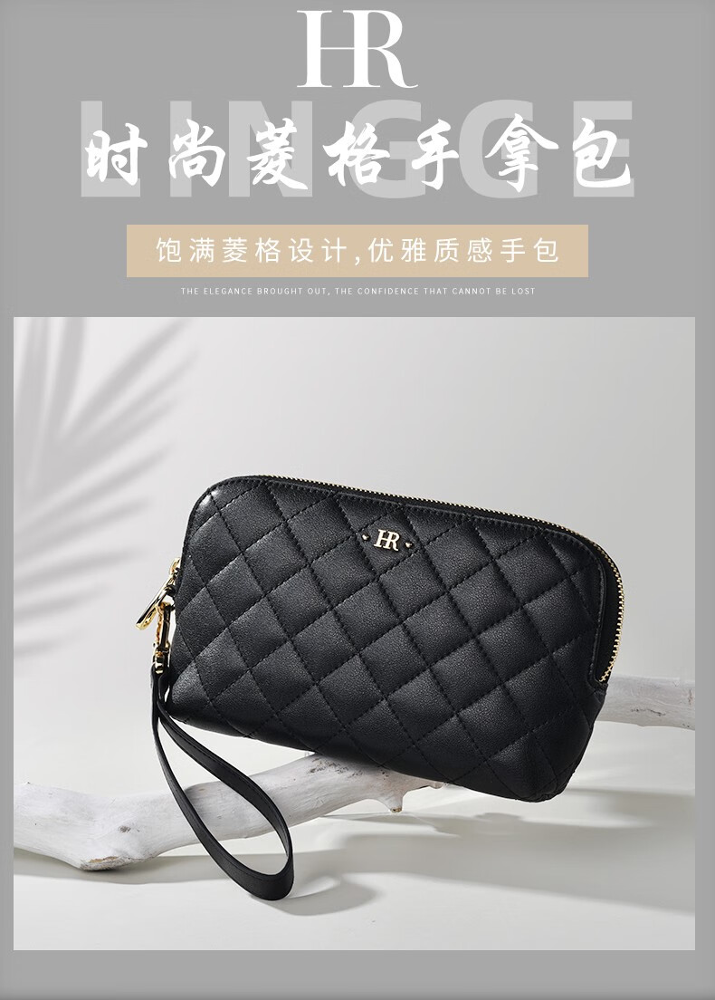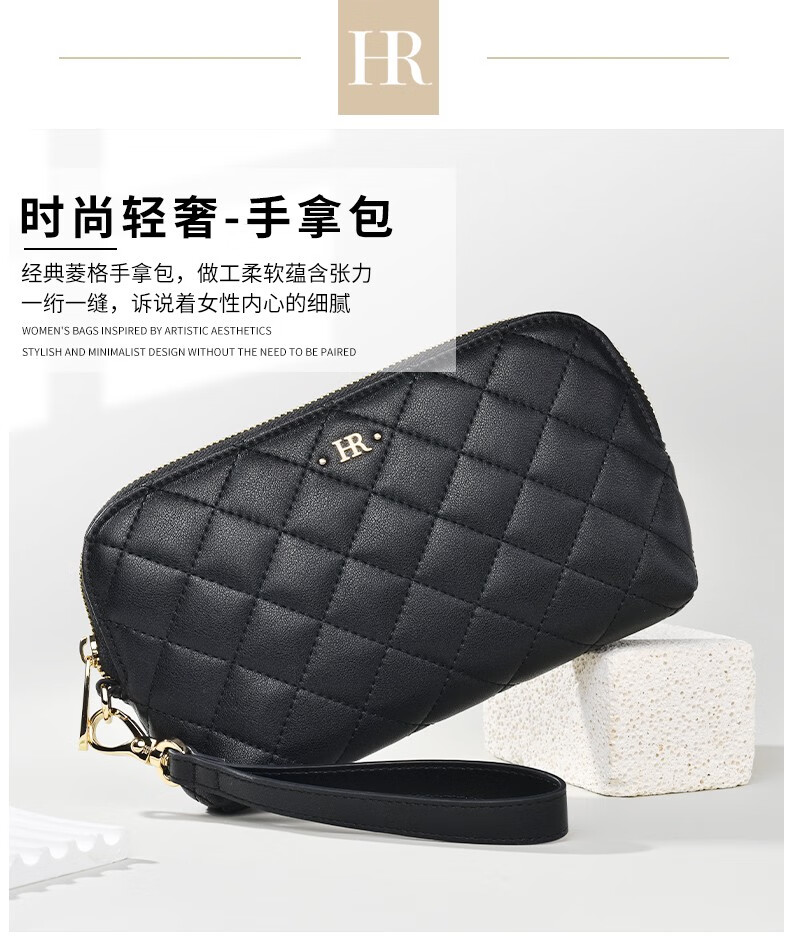 HR Helena bag women's clutch bag mobile phone bag first layer cowhide rhombus hand bag clutch bag birthday gift black