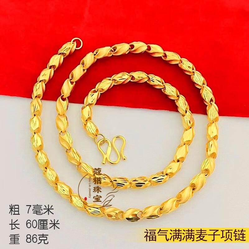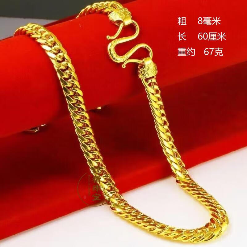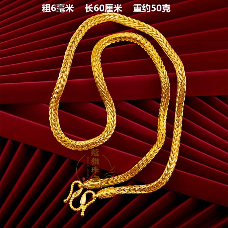 Fat Donglai's same Vietnamese sand l gold necklace men's 999 yellow l gold long-lasting luster boss chain jewelry gold cloth pattern dragon chain 9mm