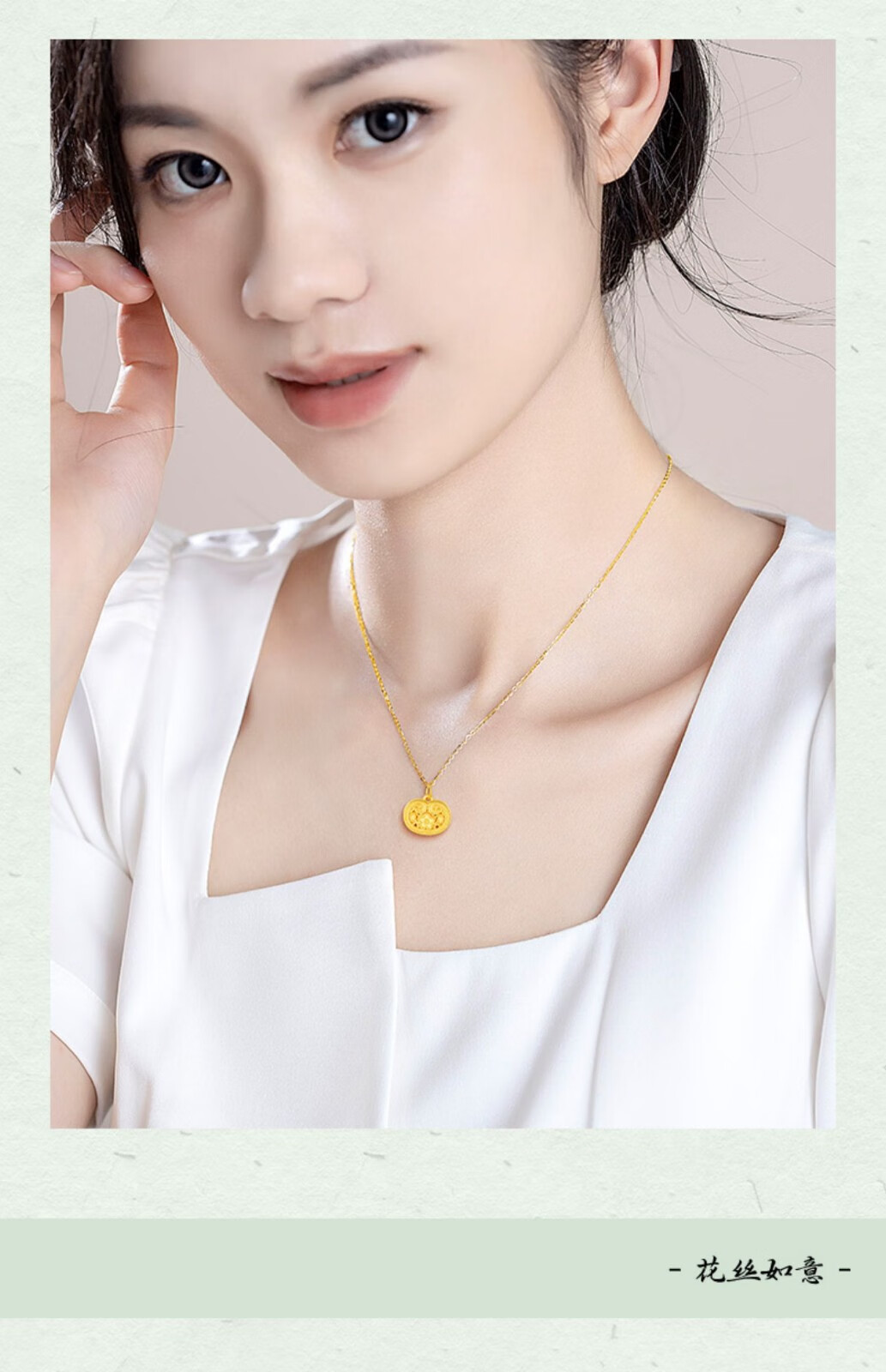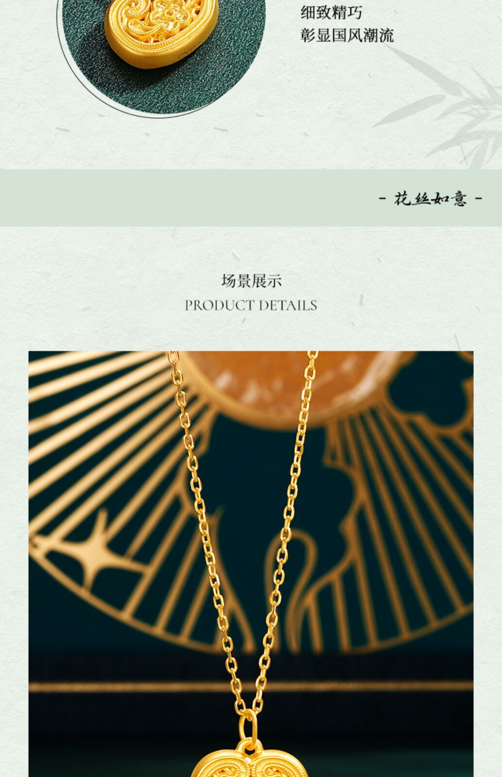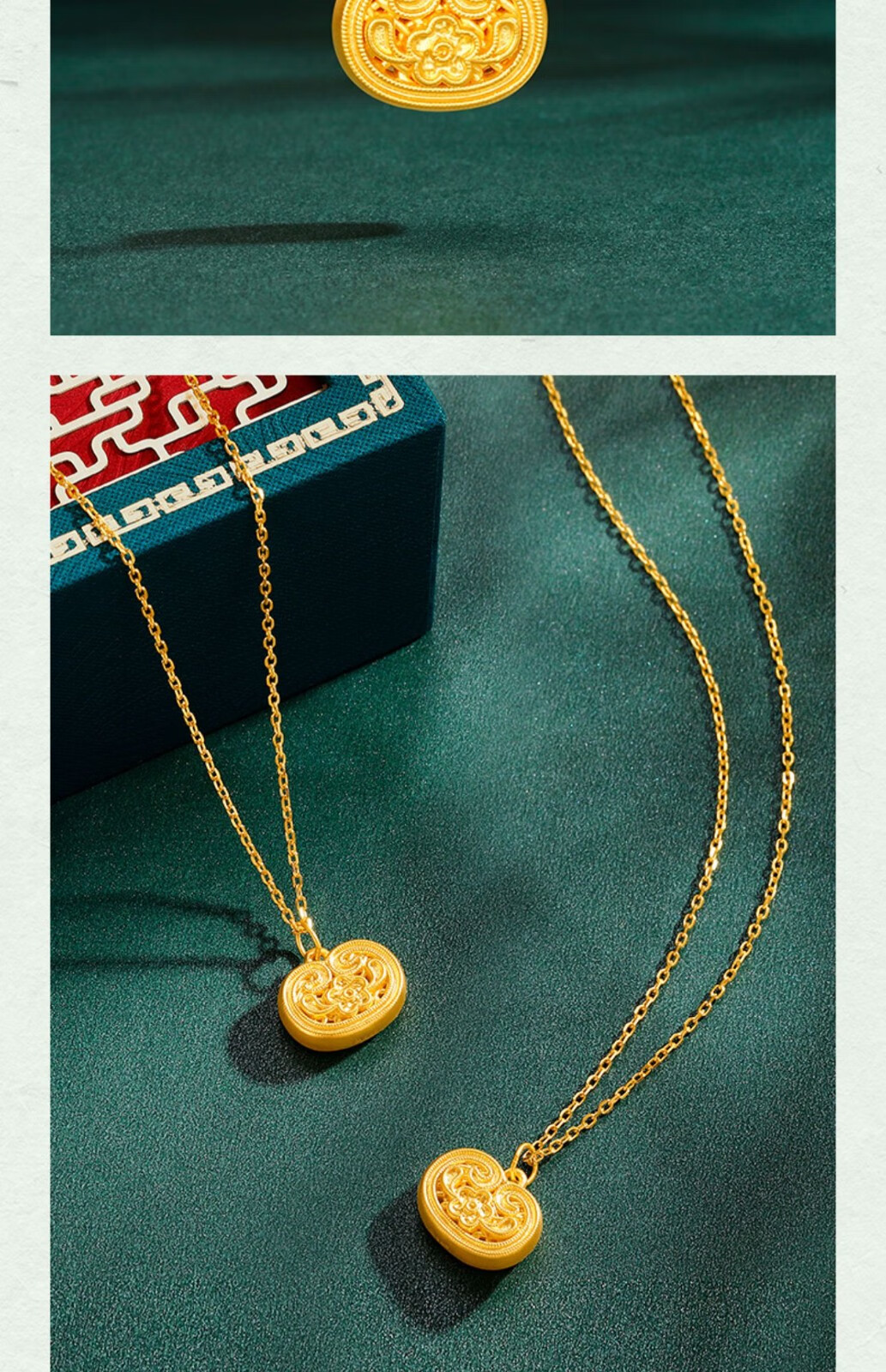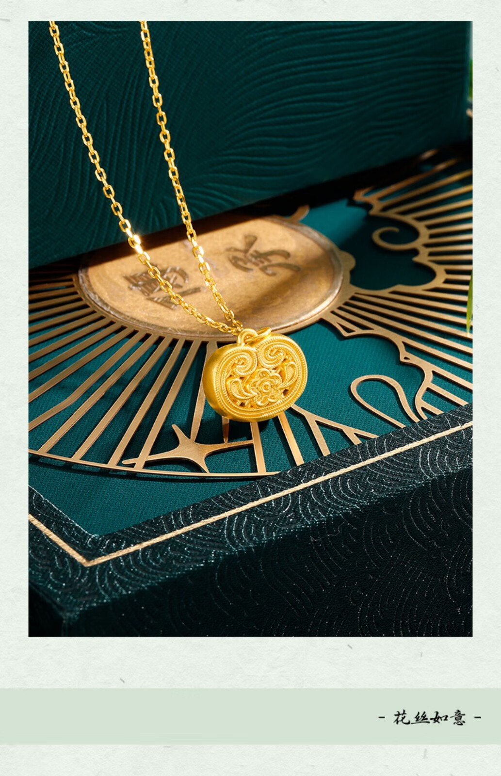 Jin Xiaoxiu Money Flower Pendant Gold 999 Ancient Filigree Pendant 5D Pure Gold Ruyi Blessing Lock Necklace Gift Small Lock Bag 0.5g, Money Flower Pendant + Alloy Chain