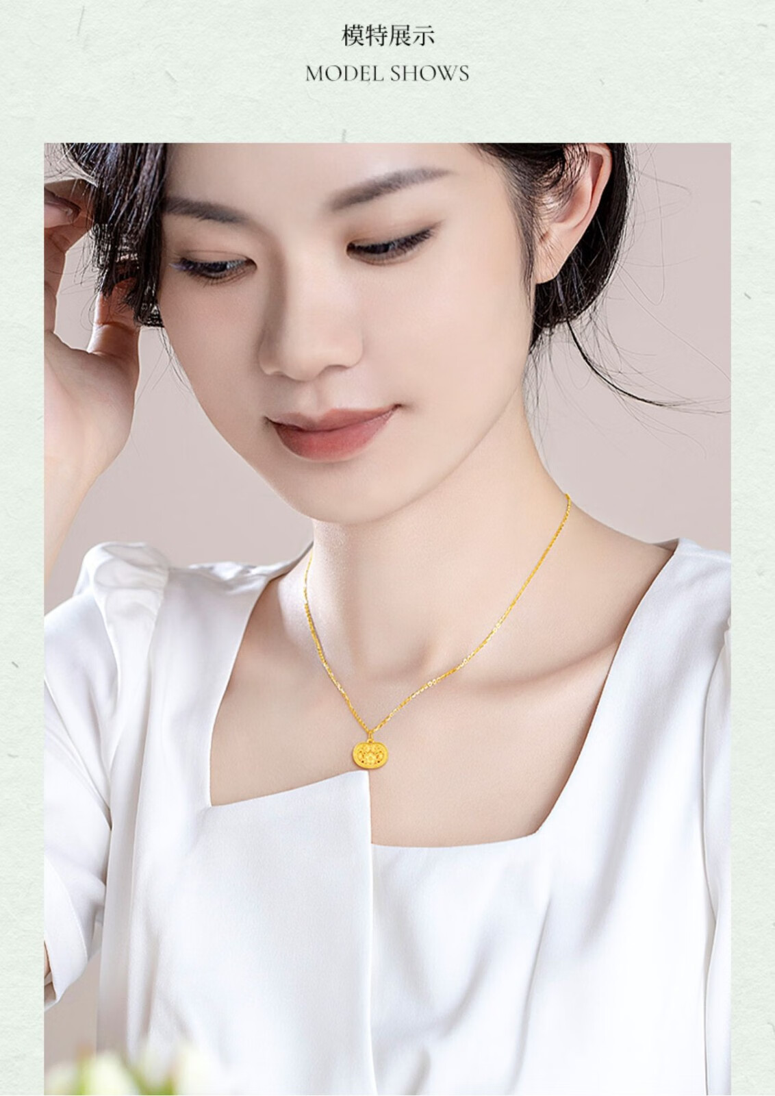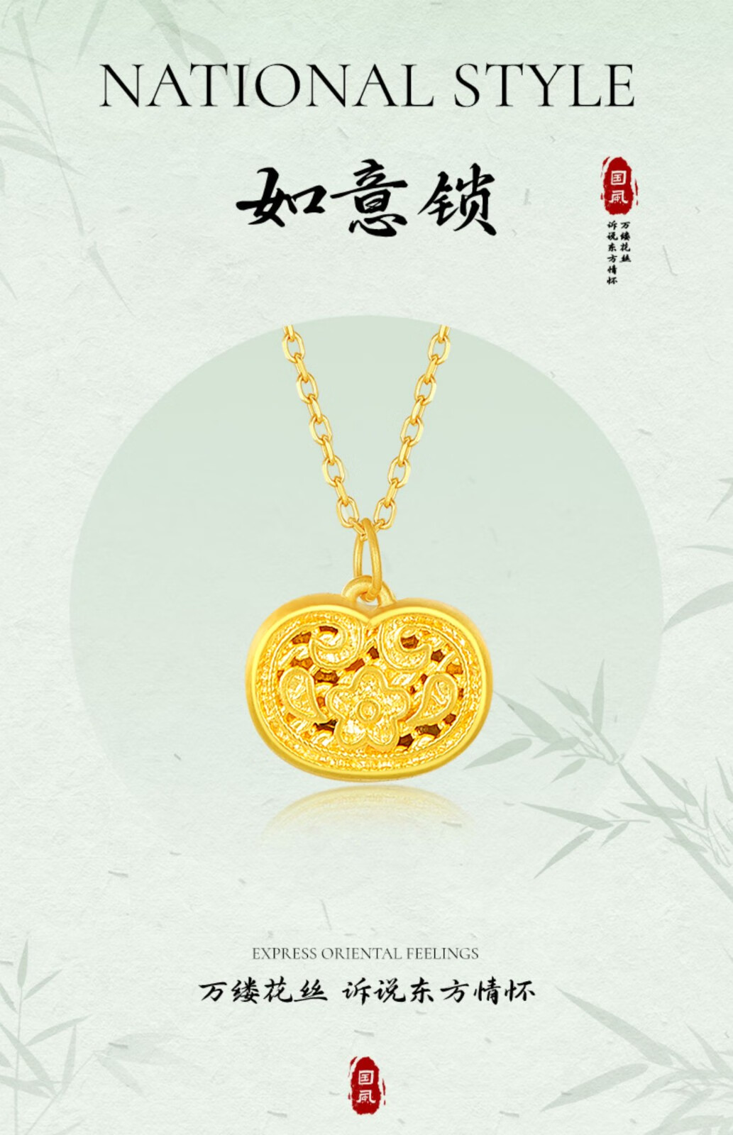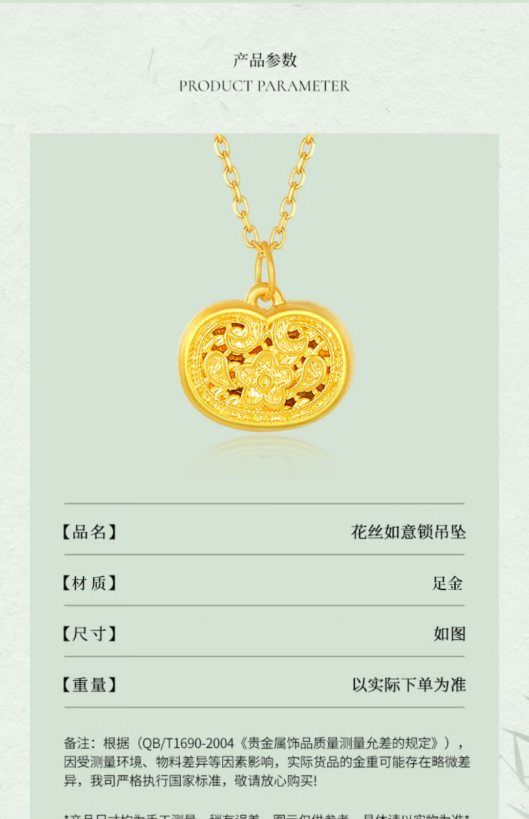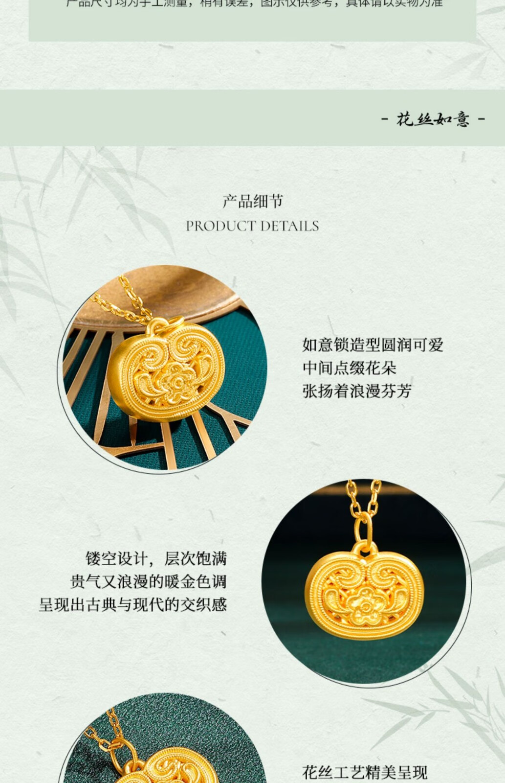 Jin Xiaoxiu Money Flower Pendant Gold 999 Ancient Filigree Pendant 5D Pure Gold Ruyi Blessing Lock Necklace Gift Small Lock Bag 0.5g, Money Flower Pendant + Alloy Chain