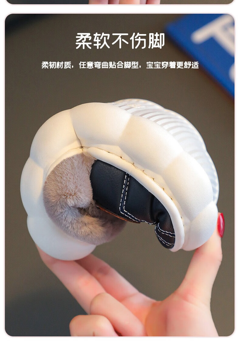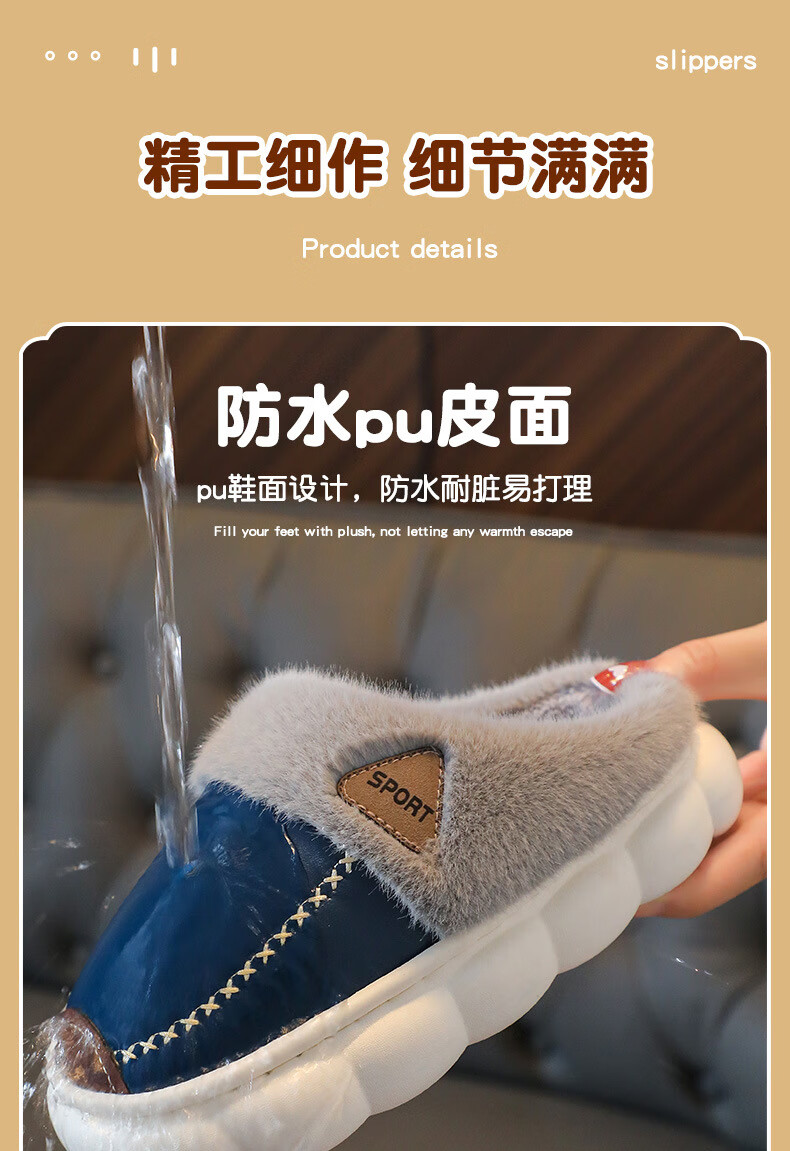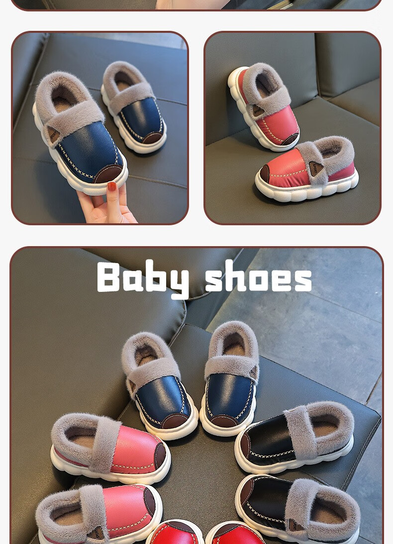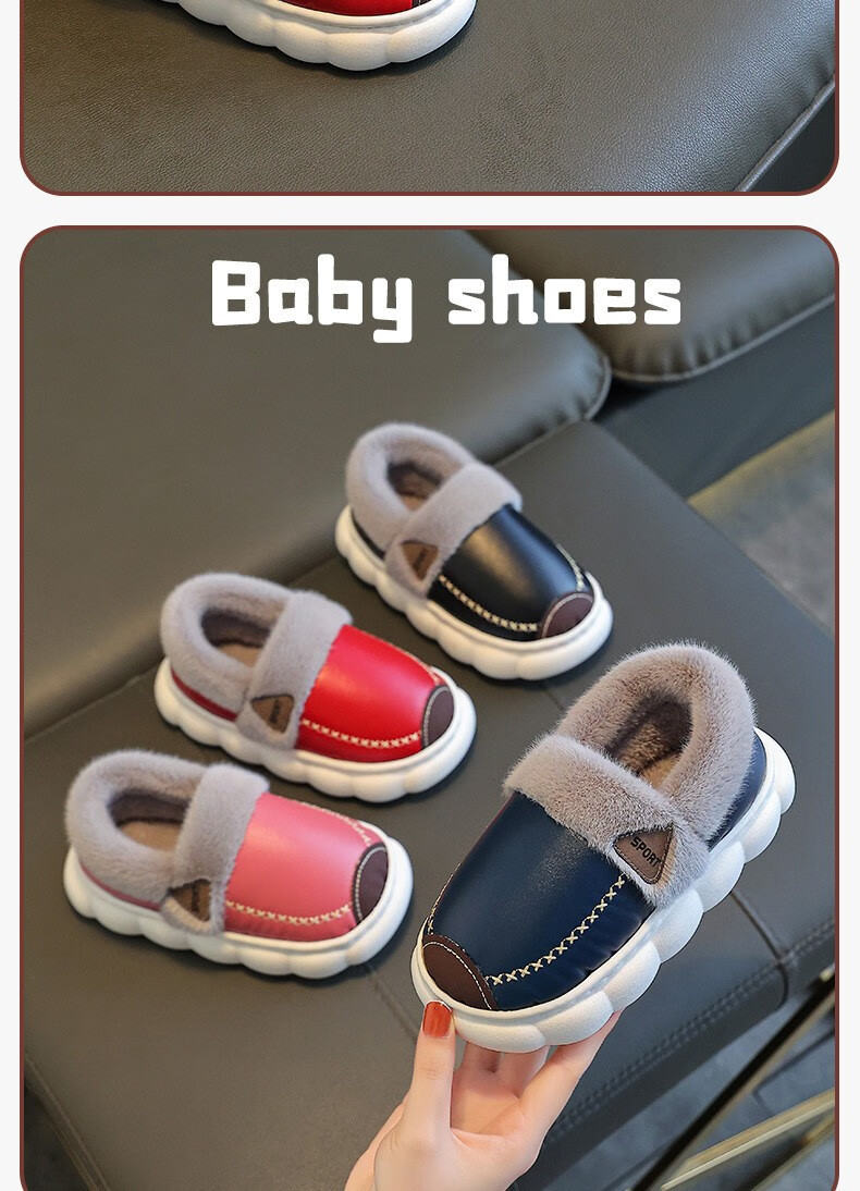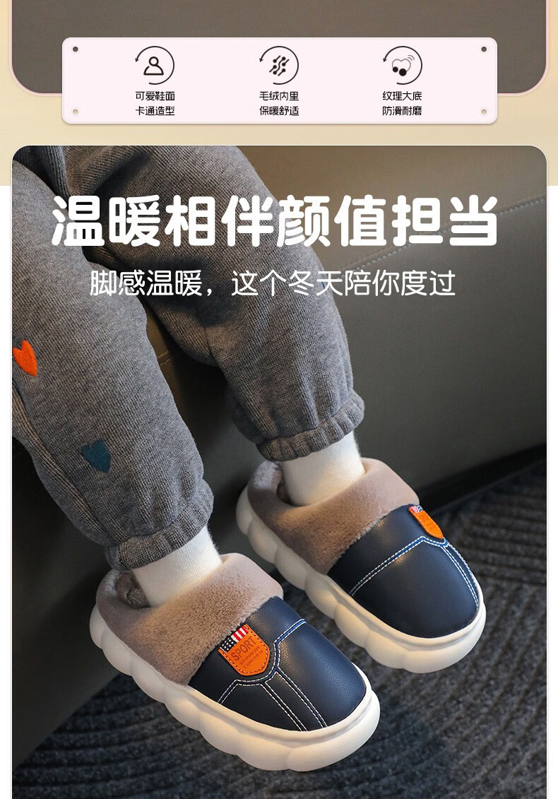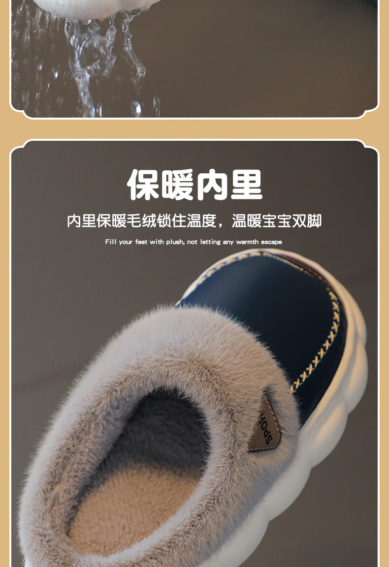 Yiai children's cotton slippers winter boys and girls pu leather waterproof soft sole non-slip parent-child indoor warm plush cotton slippers blue heel 36-37 (one size smaller) inner length 22.5