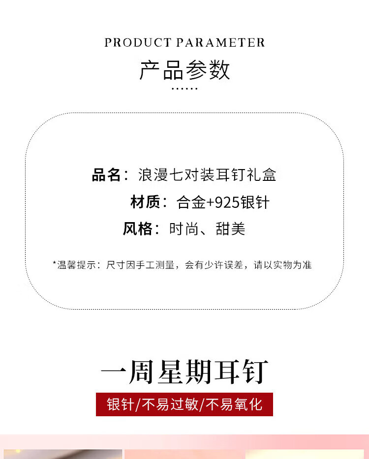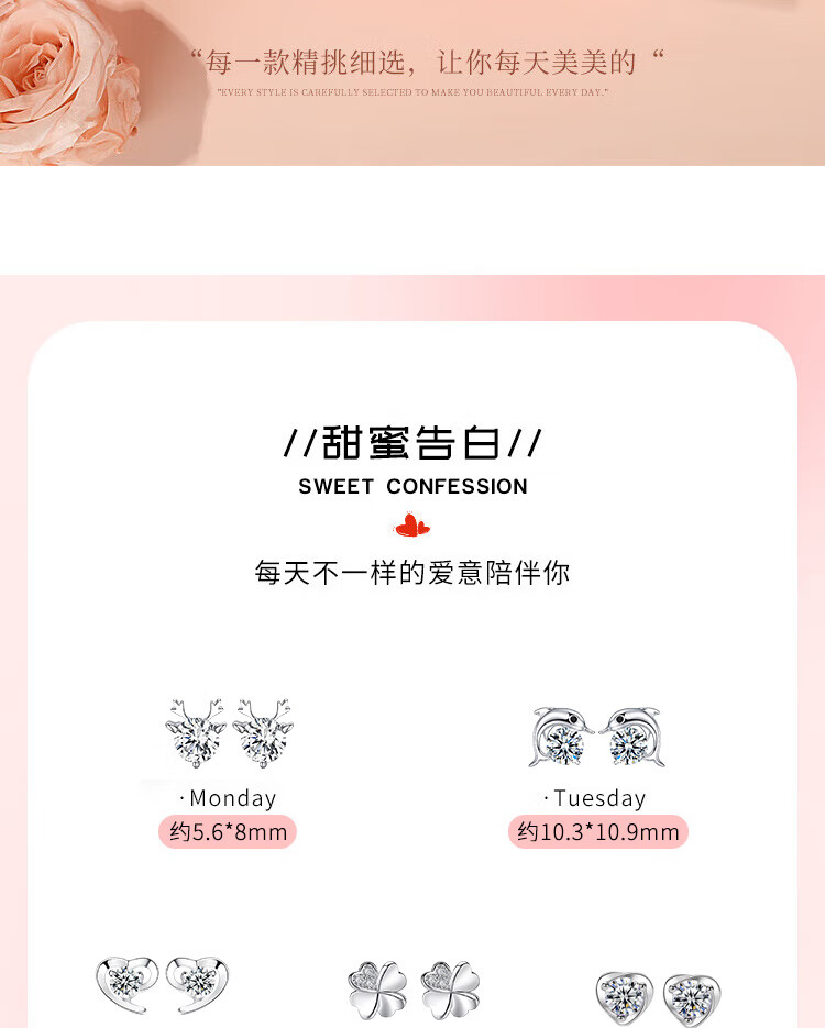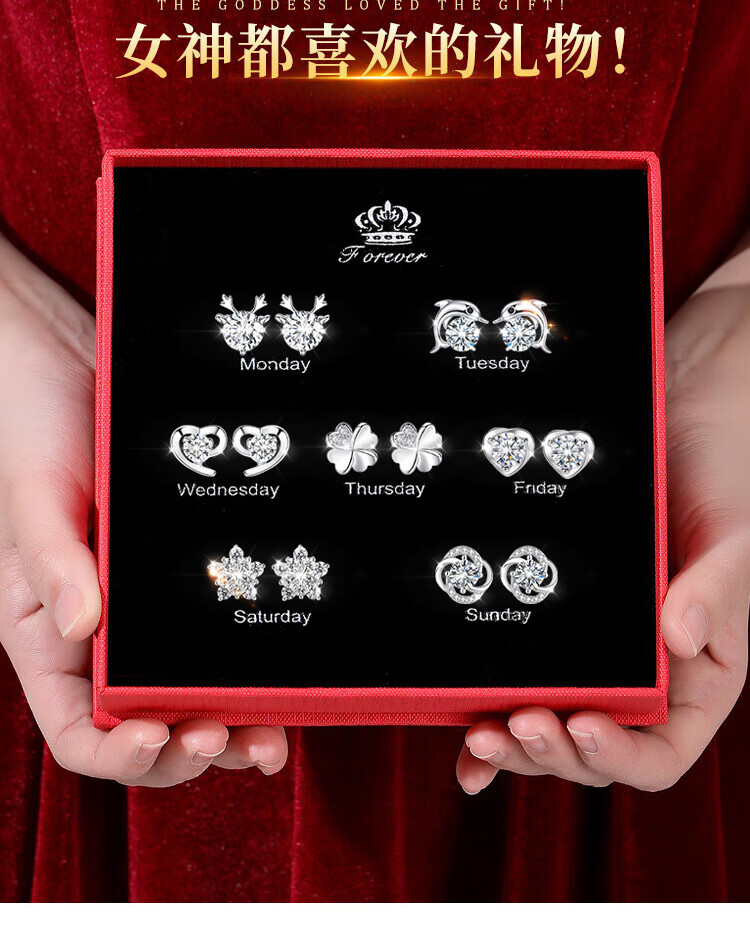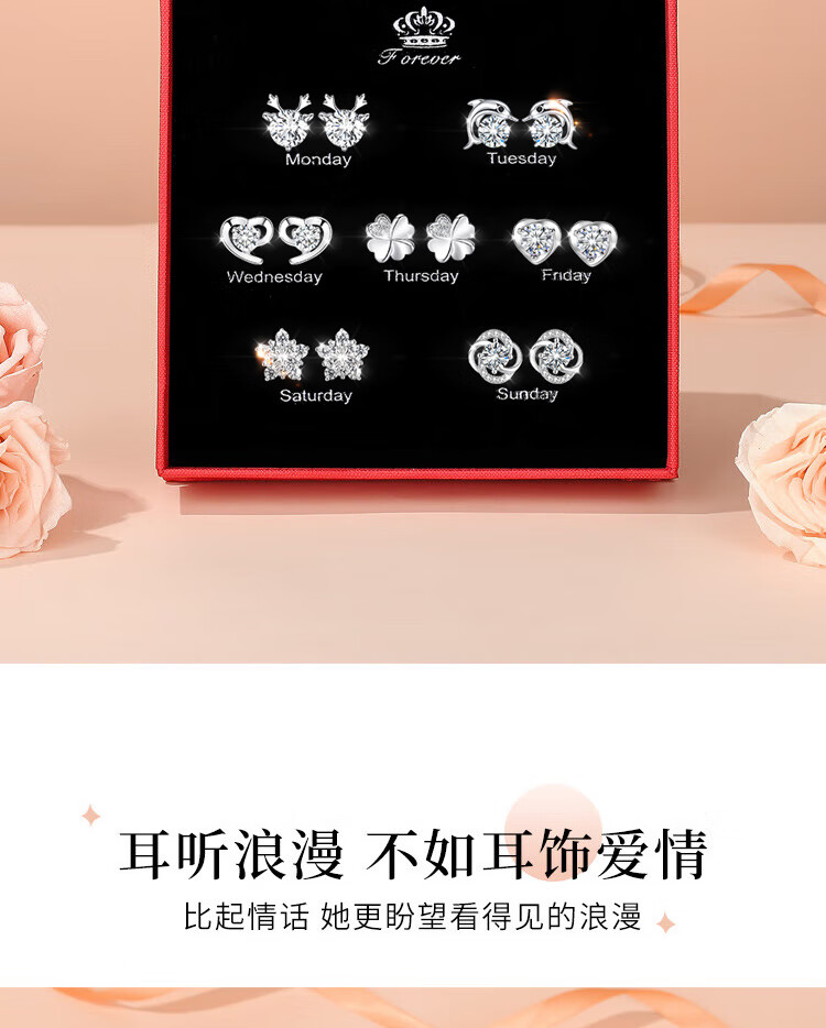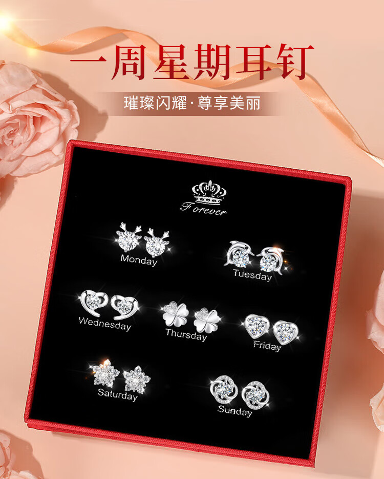 Jianlu Weekly Earrings Sterling Silver High-end Gift Box 925 Silver Earrings Earrings Girls Chinese Valentine's Day Gifts for Girlfriends 7 Styles Zhou Earrings (Silver Needles) + Exquisite Gift Box