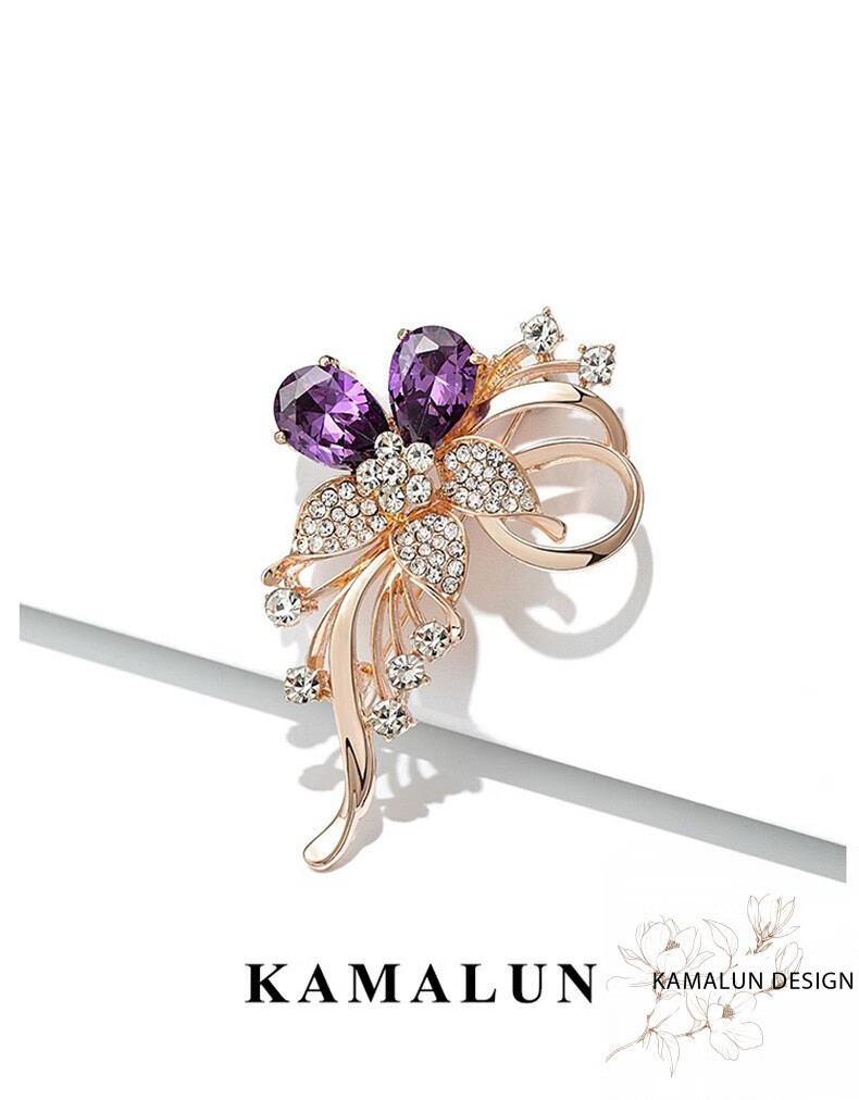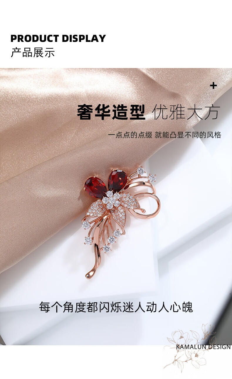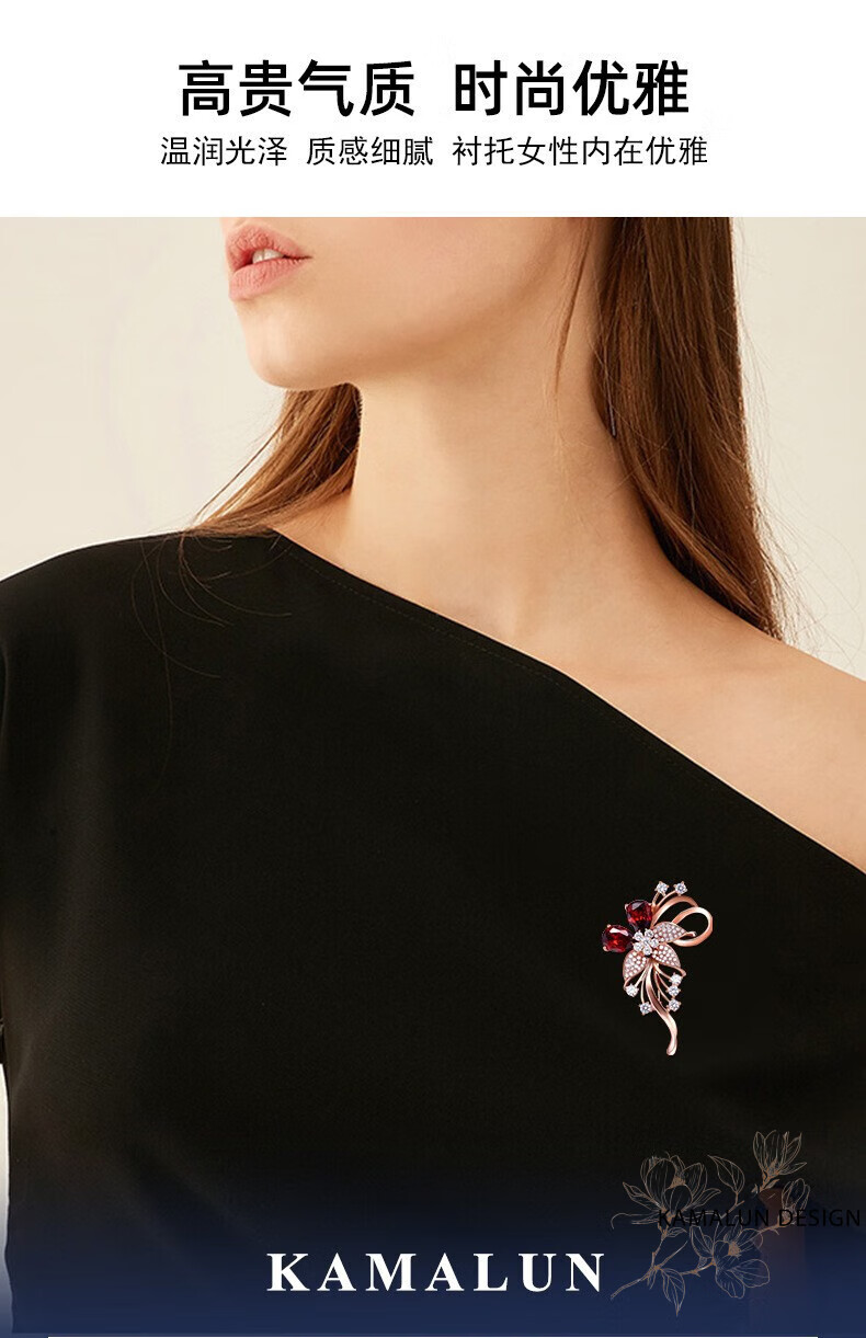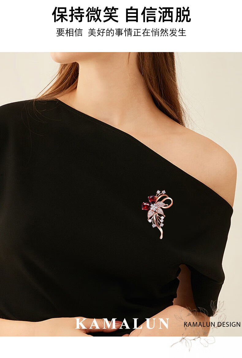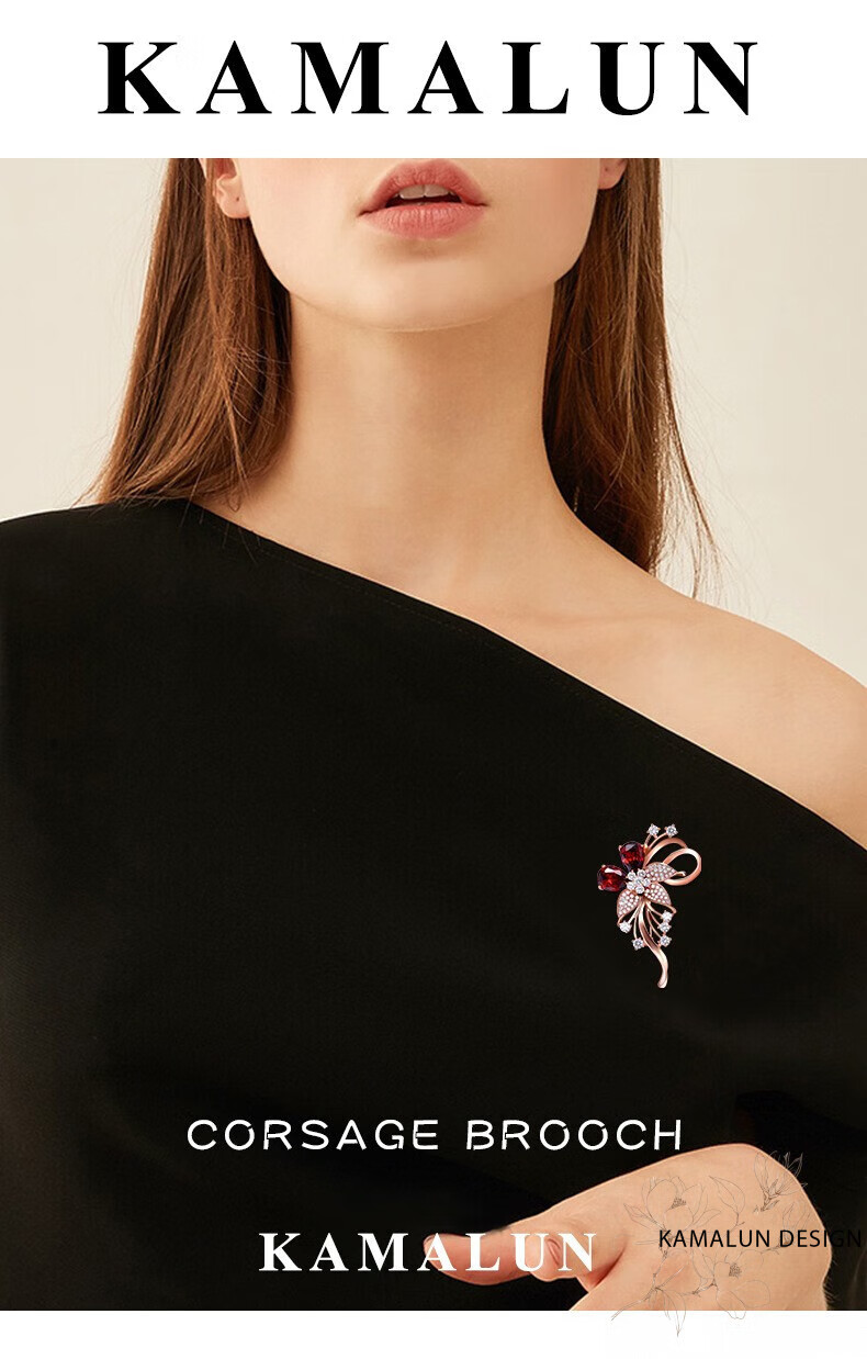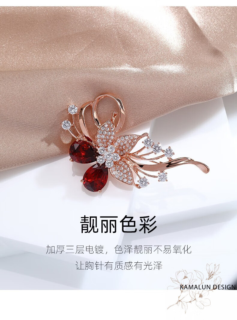 Kamalun (KAMALUN) crystal brooch, high-end women's new temperament corsage design, suit pin accessories, birthday gift for girlfriend, red crystal + brand gift box, no engraving