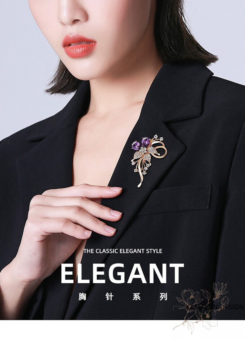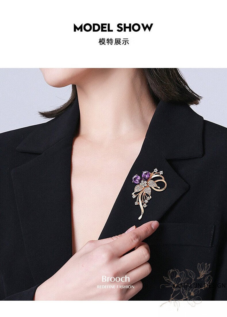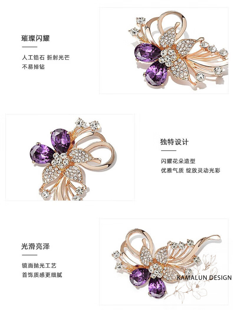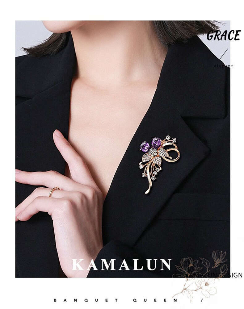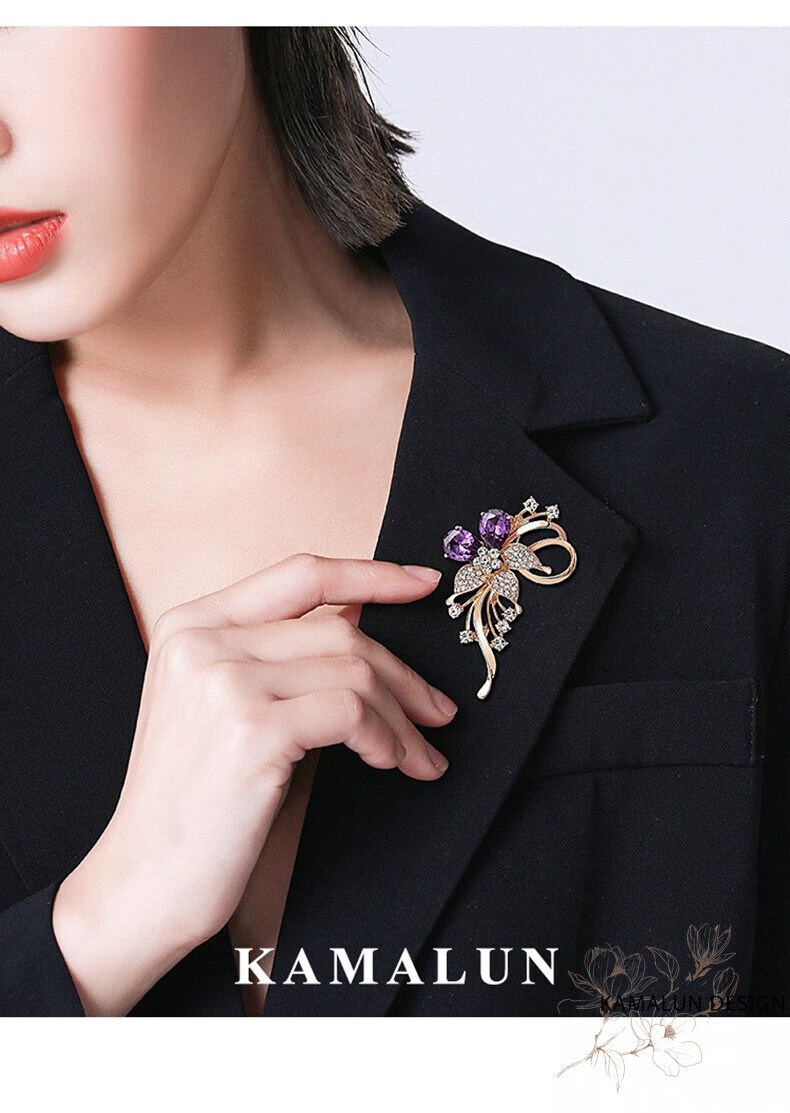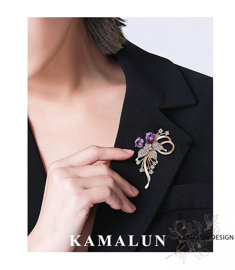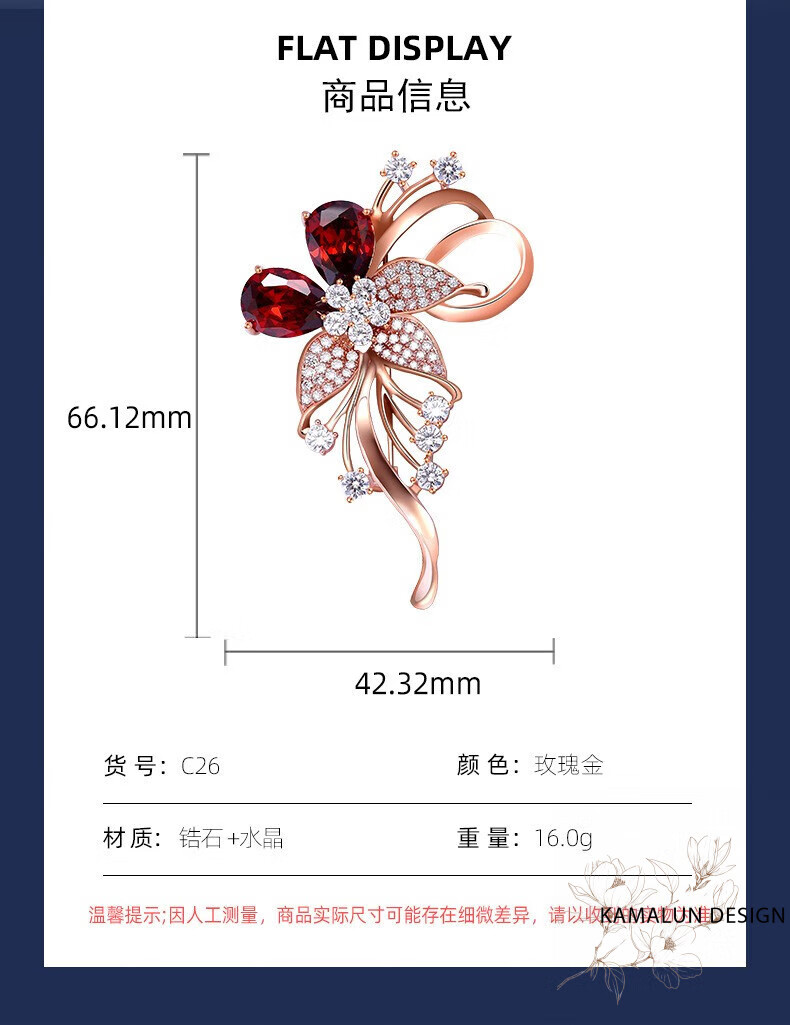 Kamalun (KAMALUN) crystal brooch, high-end women's new temperament corsage design, suit pin accessories, birthday gift for girlfriend, red crystal + brand gift box, no engraving