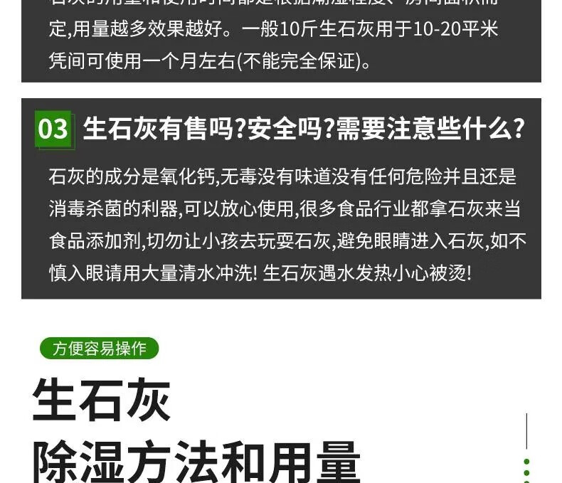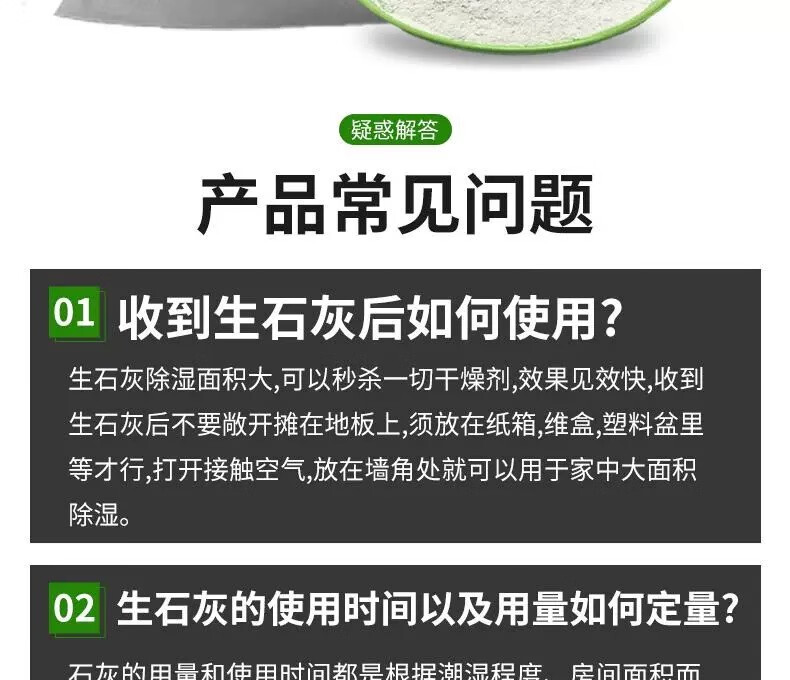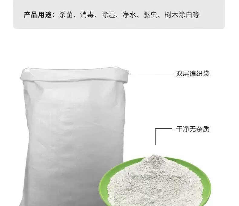 Quicklime powder 5 Jin Jin equals 0.5 kg Drying, sterilization, dehumidification, moisture-proof, mold-proof, water repellent, insect repellent, water purification, deodorization, brushing trees and walls 1 Jin Jin equals 0.5 kg Quick lime powder, trial pack, bag