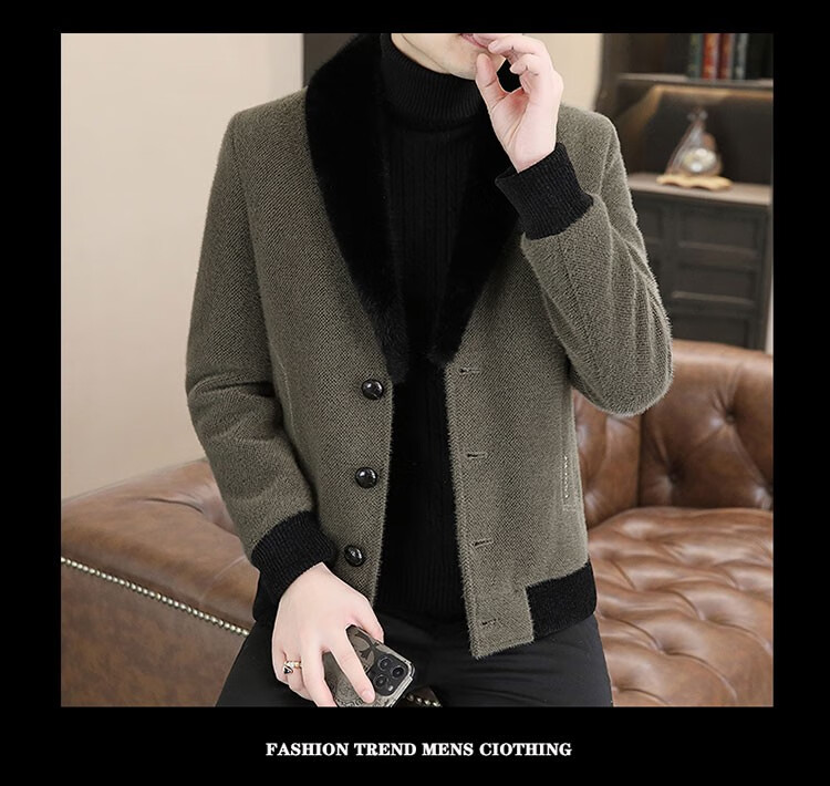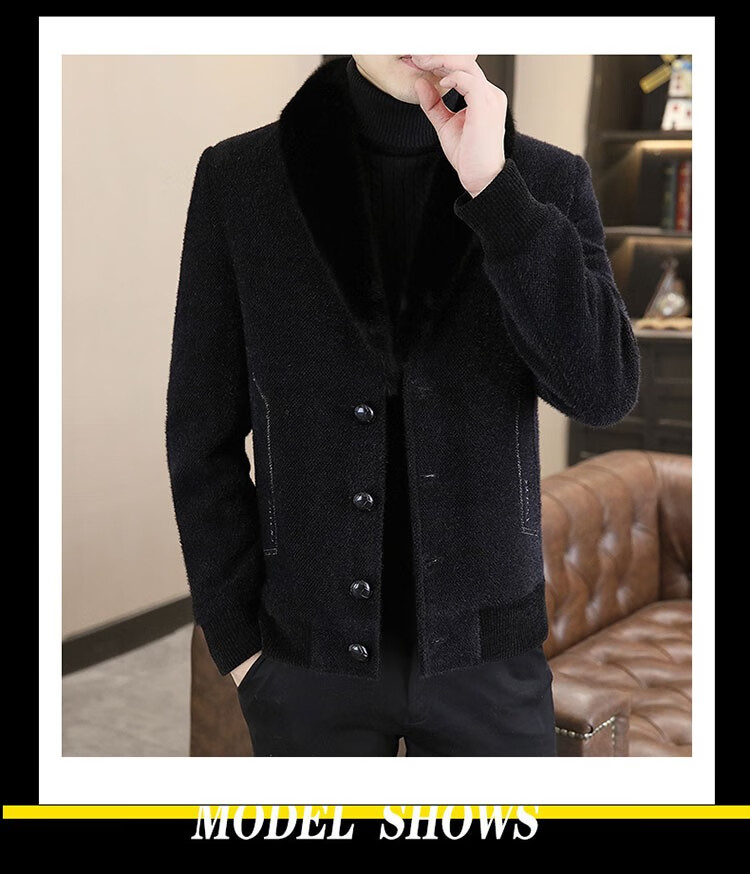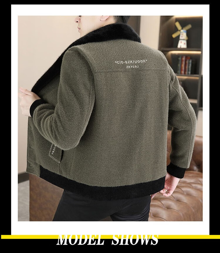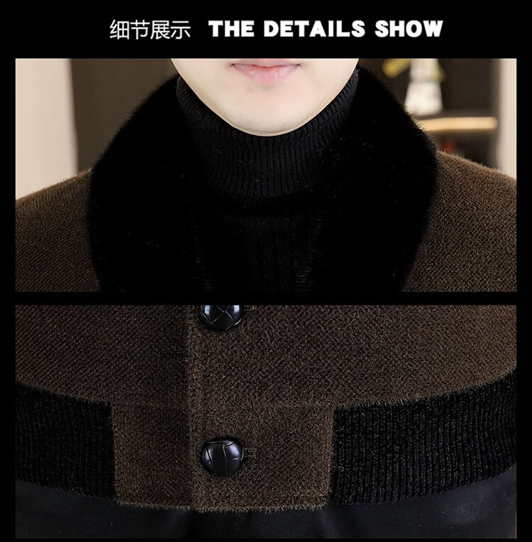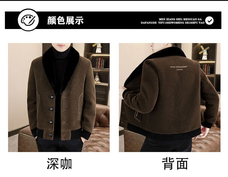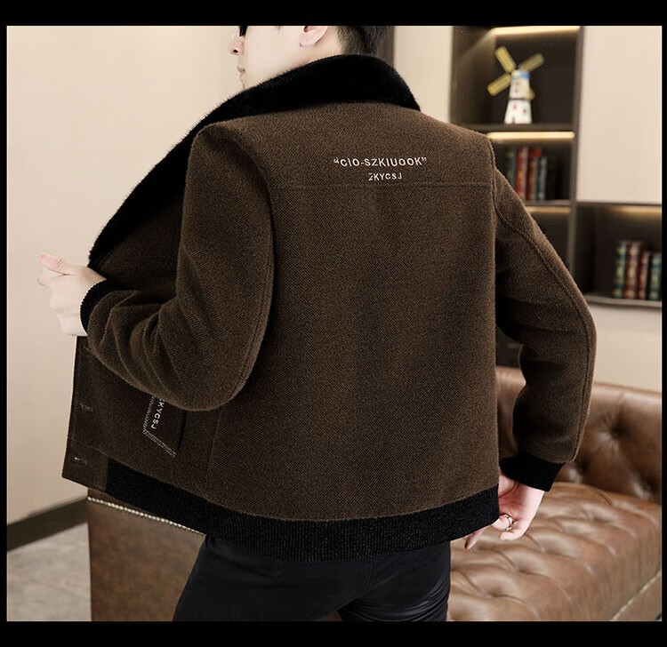 Jacket woolen coat men's youth short business casual autumn and winter velvet thickened suit collar men's woolen coat M70 brown XL recommended 120-135Jin Jin equals 0.5 kg