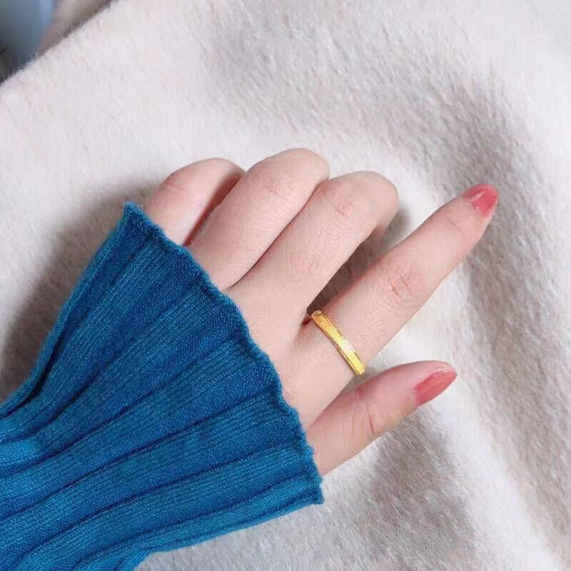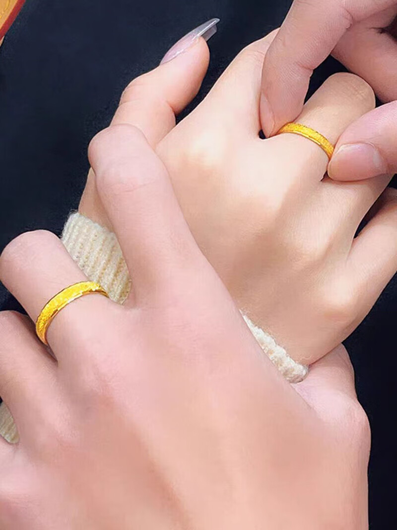 Yi Dafu Jewelry Showroom Pure Gold 999 Hollow Solid Mouth Simple Sandblasting Ring Three Lives Three Worlds Ring Ring 3D Hard Gold Couple Ring Ring Ring No. 21 About 2.9-3.0g