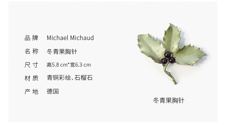 Michael Michaud German Light Luxury Jewelry Holly Fruit Jewelry Brooch Literary Retro Men's Valentine's Day Gift Holly Fruit Brooch Small (6216)