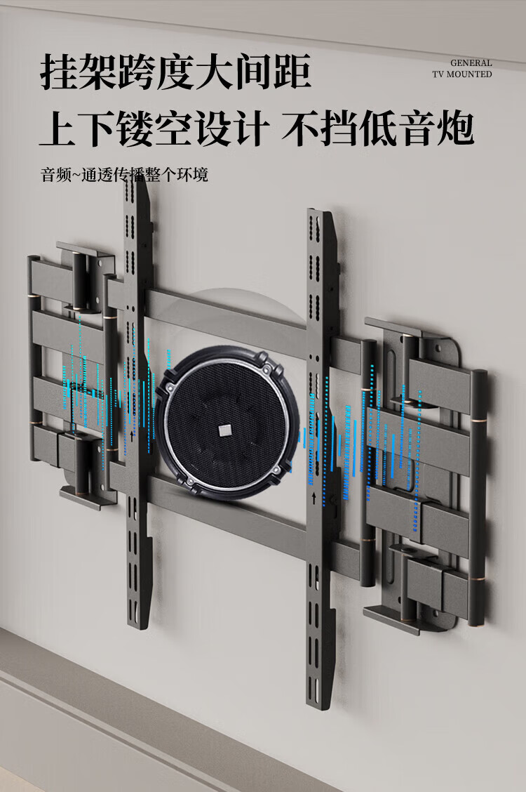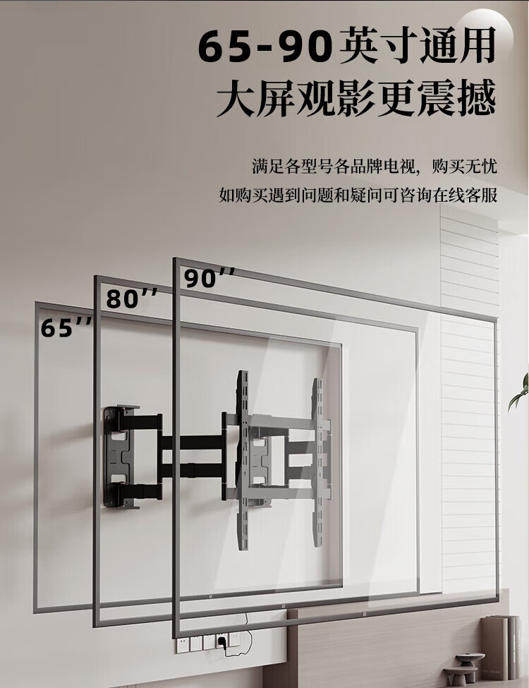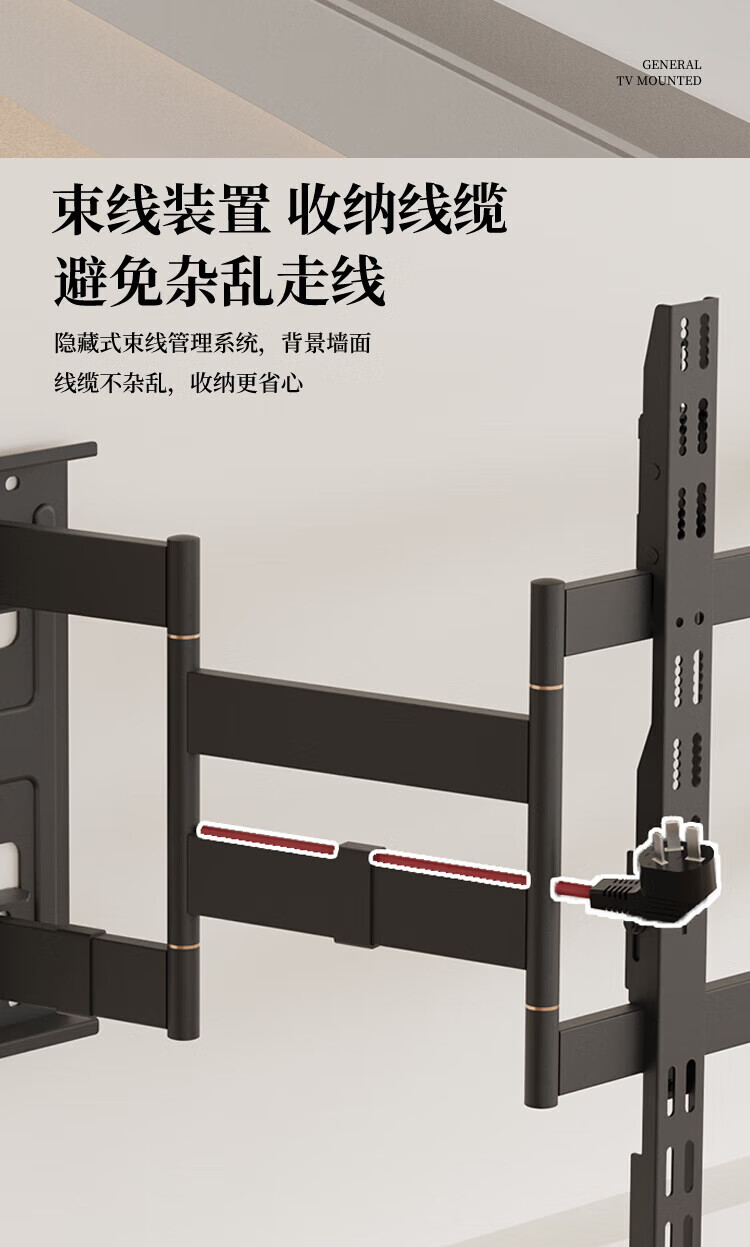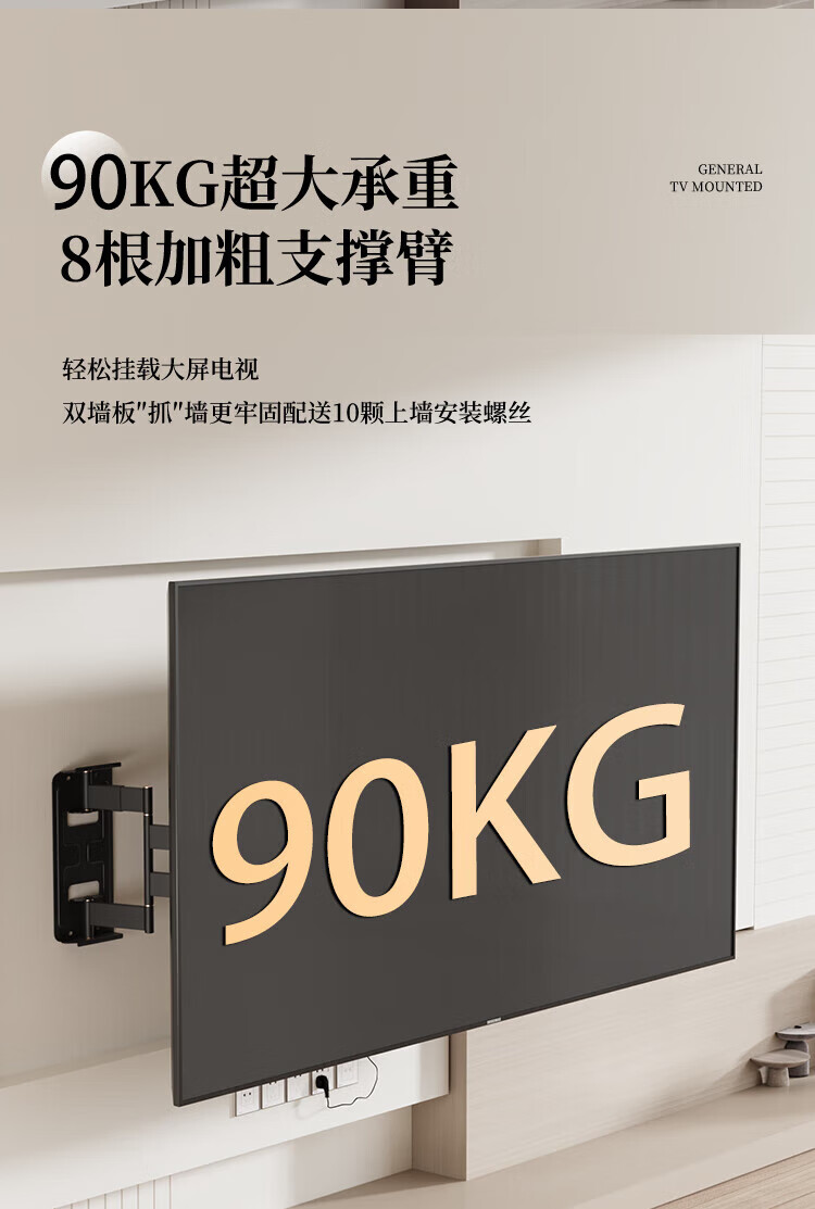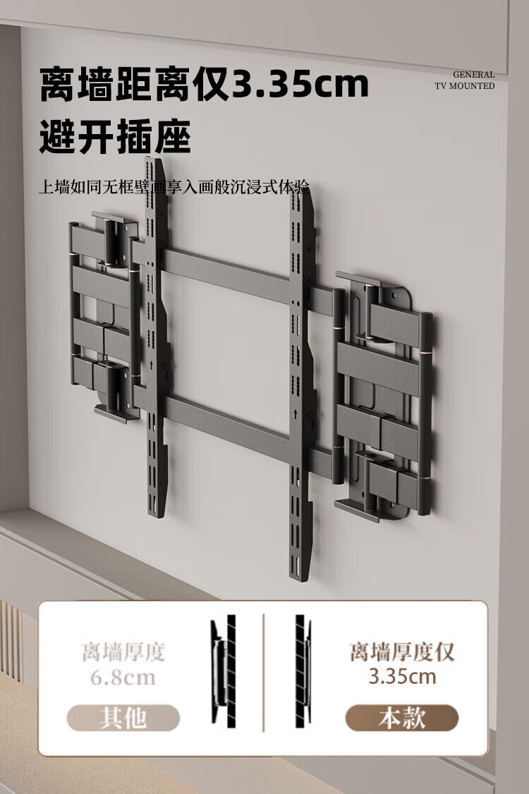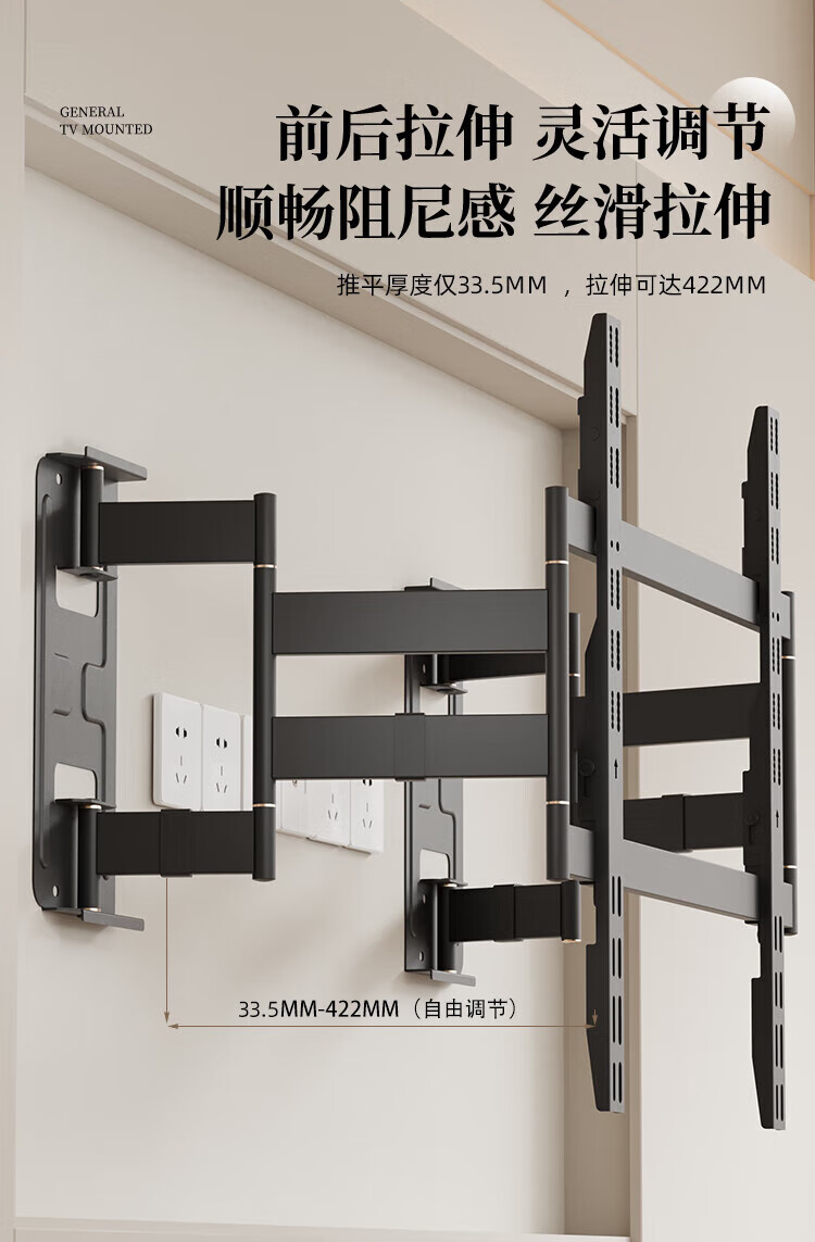 KALOC new structure does not block the socket, ultra-thin built-in double-arm telescopic TV bracket wall mount, telescopic and rotating, suitable for 100-inch Hisense 85, Xiaomi TCL NX90, ultra-thin 3.4 cm, suitable for 65-90 inches