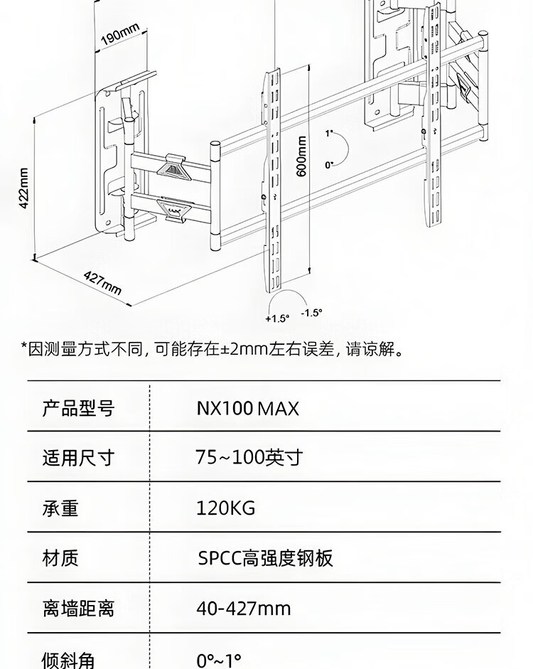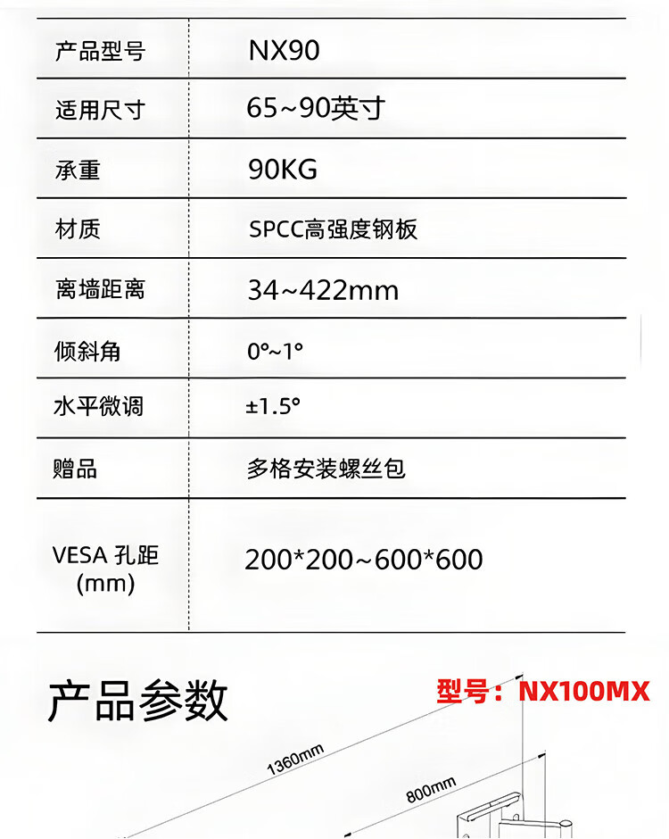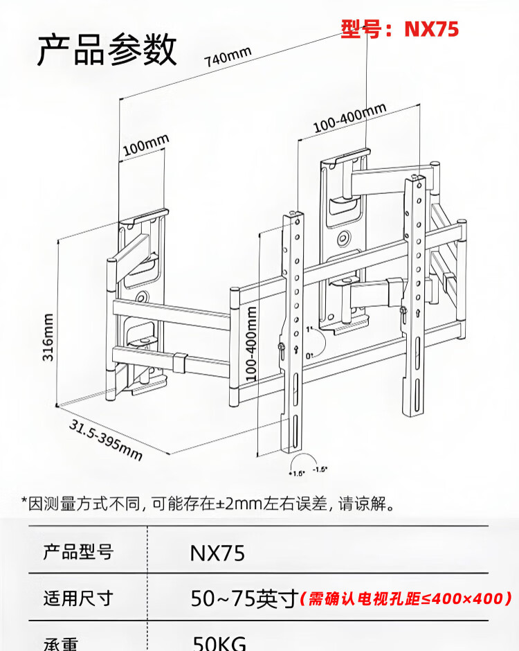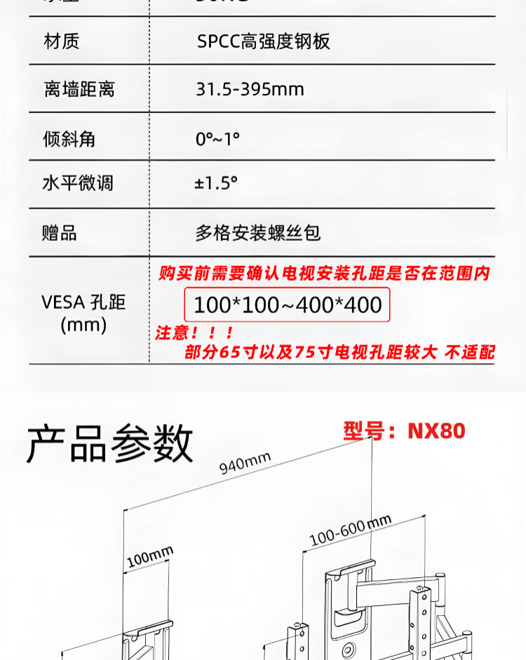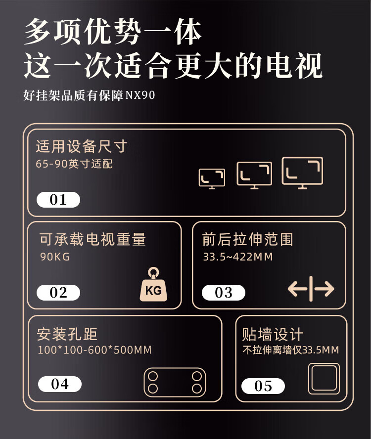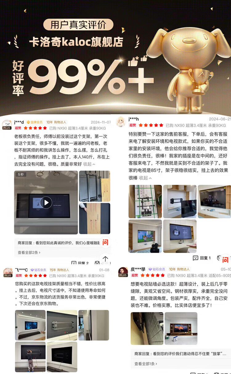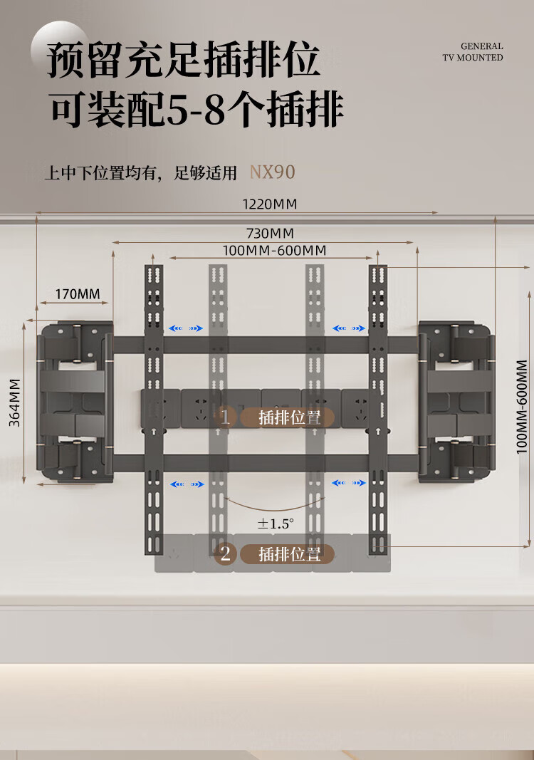 KALOC new structure does not block the socket, ultra-thin built-in double-arm telescopic TV bracket wall mount, telescopic and rotating, suitable for 100-inch Hisense 85, Xiaomi TCL NX90, ultra-thin 3.4 cm, suitable for 65-90 inches