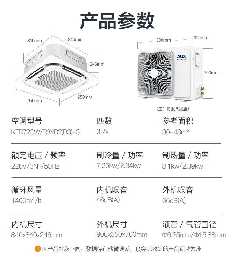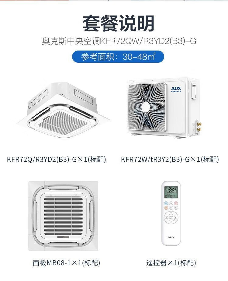 AUX large 3-horsepower ceiling machine embedded in commercial air-conditioning heating and cooling ceiling machine single cooling 5-horsepower central air-conditioning factory office patio machine second-hand 90% new eight-sided air outlet (90% new) AUX 3-horse single cooling ceiling machine-220V