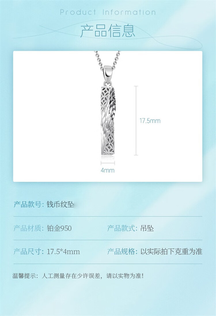 Qiyu Pt950 platinum pendant for women, hollow coin pattern pendant, spiral bar jewelry, no chain