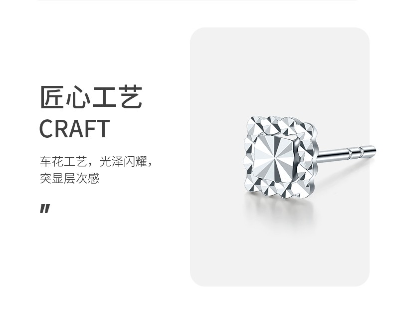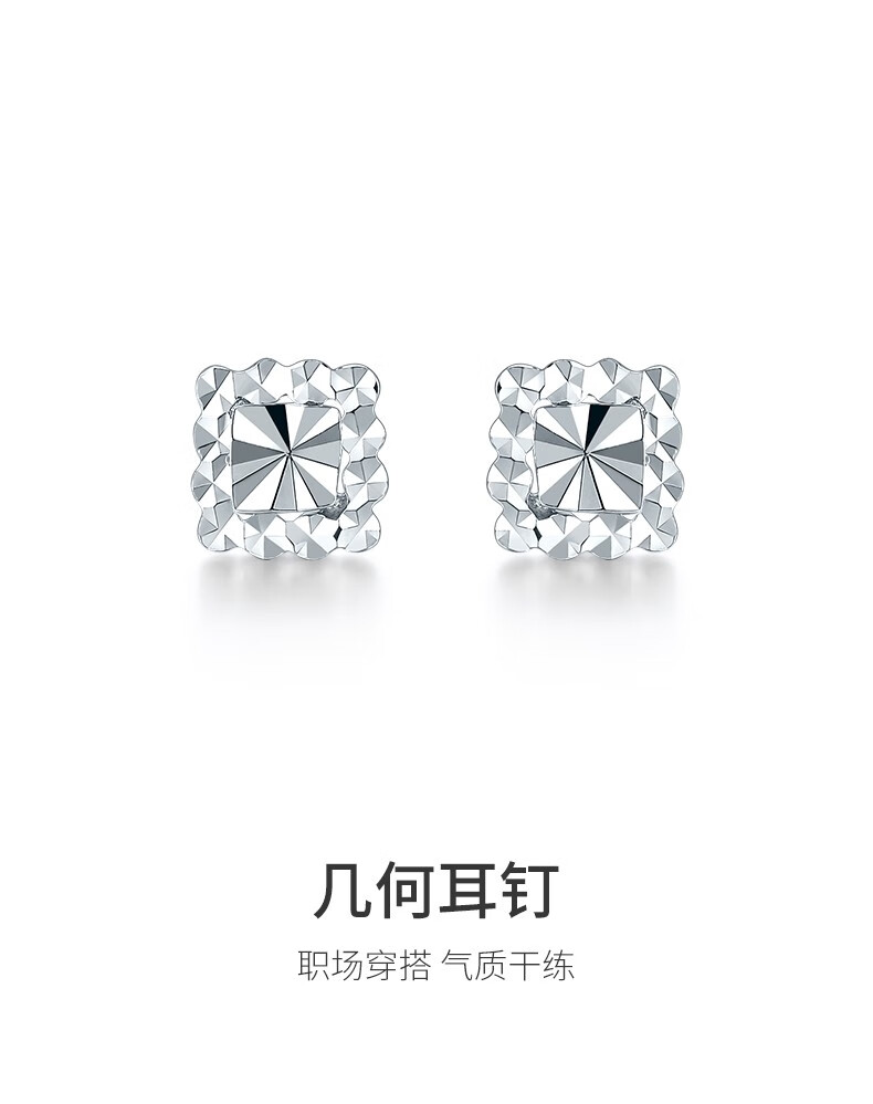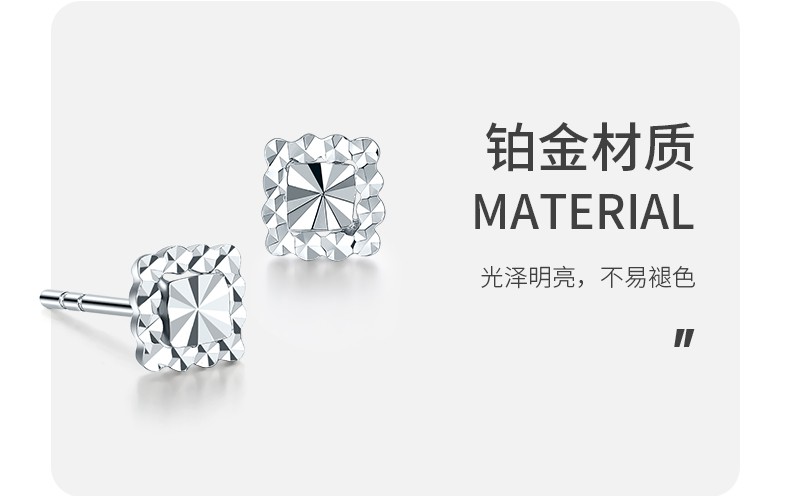 ZLF PT950 platinum stud earrings for women, sparkling and versatile geometric square earrings 1.36g