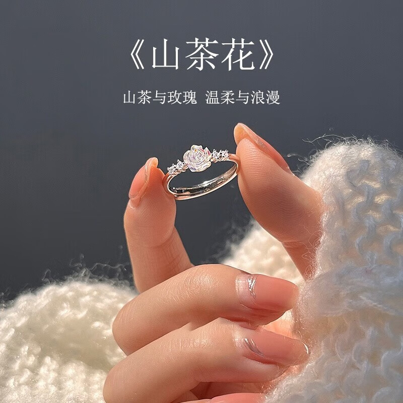 Qiuyu sterling silver ring women's Camellia S925 silver niche high-end ring girl's birthday Chinese Valentine's Day gift Camellia ring exquisite gift box