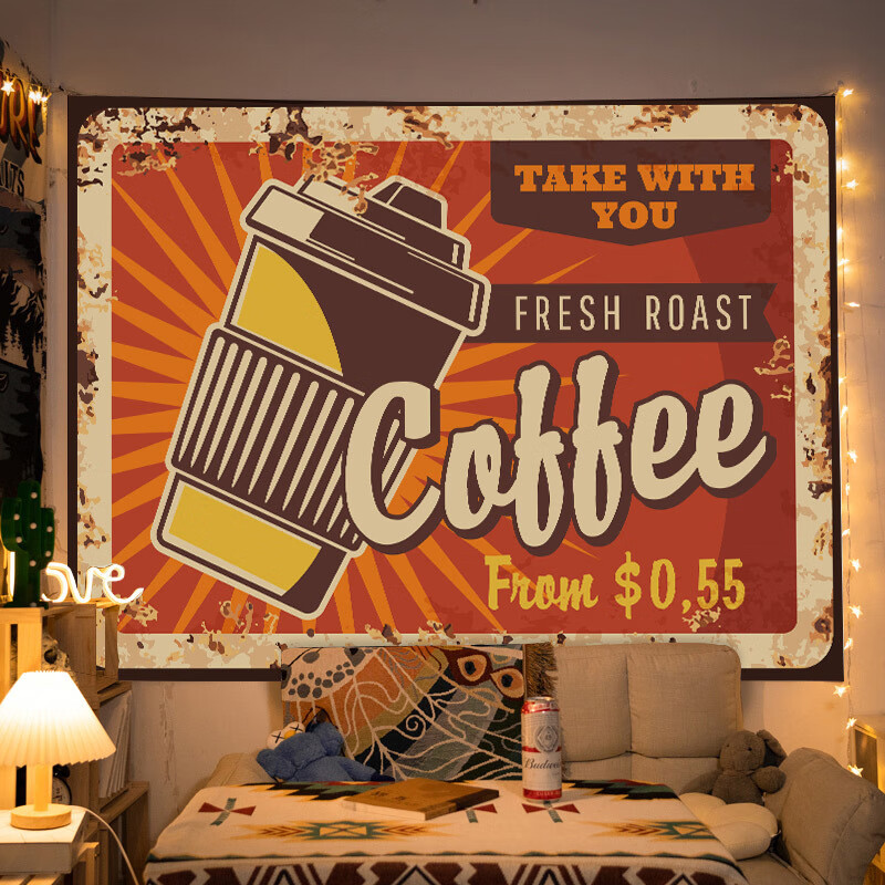 Pure tone retro American hanging cloth cafe beer decoration background cloth restaurant atmosphere matching tapestry cloth internet celebrity photo XFJ401 1 meter wide 0.7 meters high free installation package
